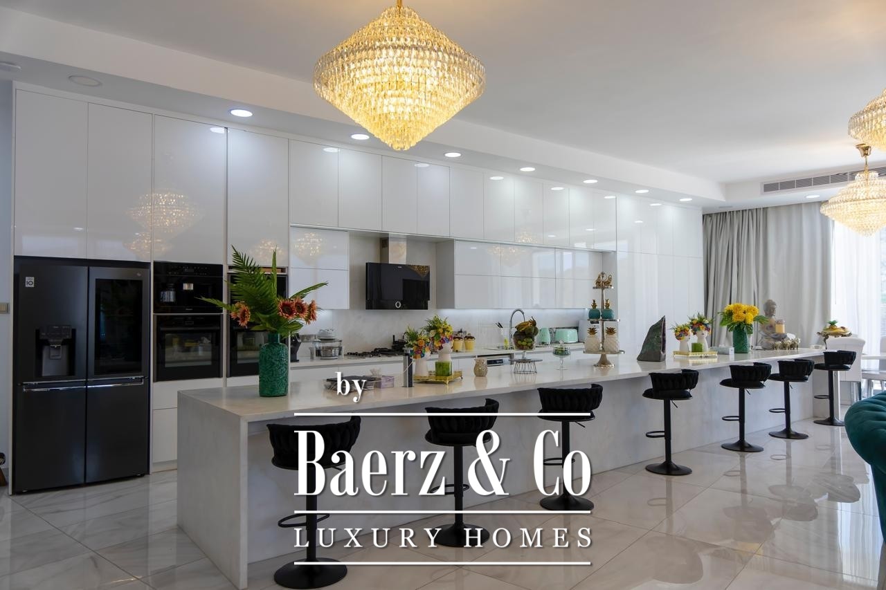 Designerka kuchnia wyposażona jest w dwa piekarniki, zarówno kuchenkę elektryczną, jak i gazową, grill oraz nowoczesne sprzęty AGD, a także prowadzi do zadaszonego kiosku zewnętrznego i drugiej kuchni, idealnych do organizowania przyjęć. Na zewnątrz willa zmienia się w prywatny resort z 53-metrowym basenem ze słoną wodą i zintegrowanym jacuzzi, otoczonym zadbanym ogrodem, owocowymi drzewami oraz prywatnym mini boiskiem do piłki nożnej.