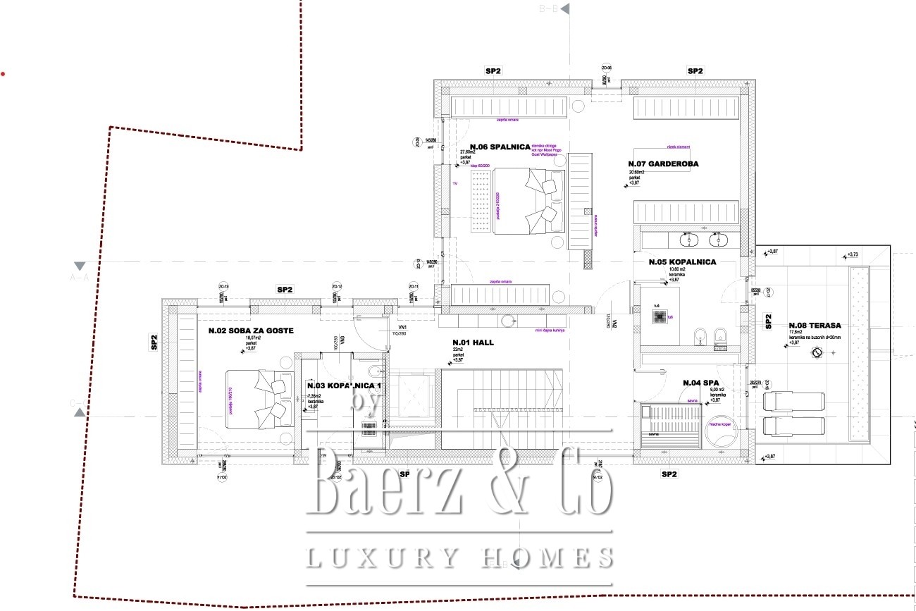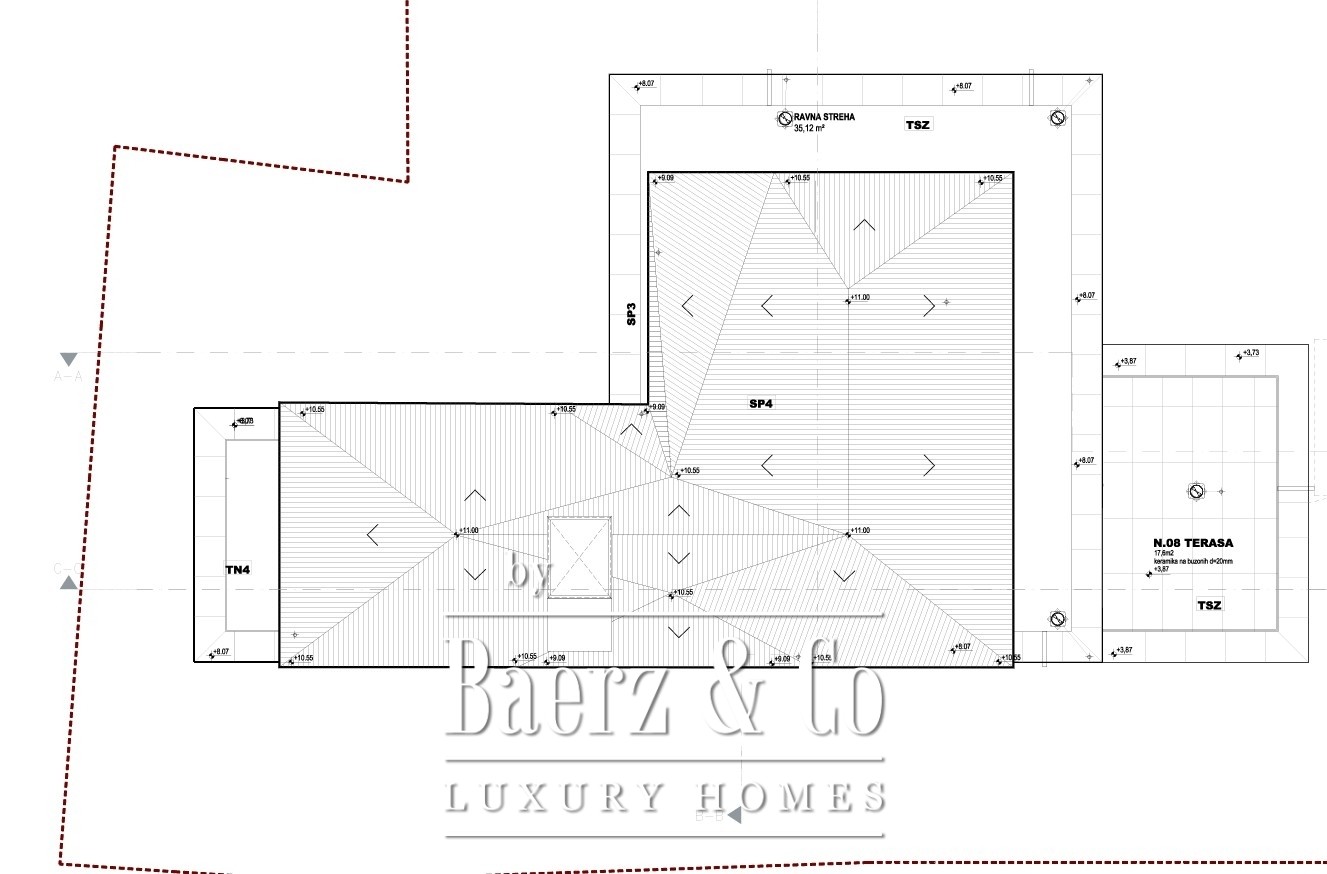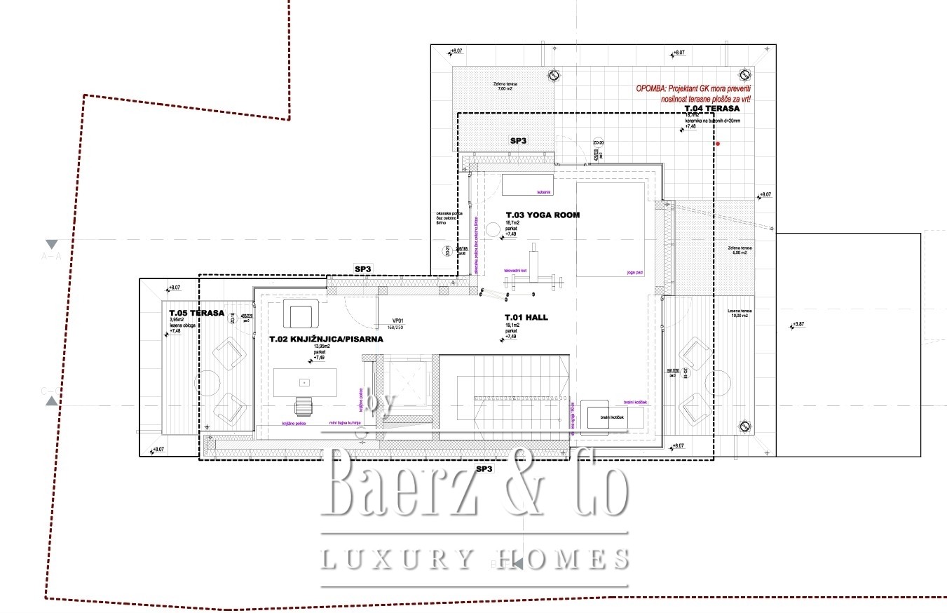 Przemyślany układ obejmuje cztery sypialnie oraz dwie łazienki, przestronne otwarte tarasy o łącznej powierzchni 84 m², pomieszczenie techniczne o powierzchni 11,5 m² oraz dedykowane pomieszczenia gospodarcze – razem 34,5 m². Lokalizacja gwarantuje bliskość wszystkich udogodnień miasta; park Tivoli, wzgórze Rožnik oraz centrum znajdują się w zasięgu kilku minut, podobnie jak szkoły, placówki zdrowotne, sklepy i restauracje. Ta willa to okazja do wyrafinowanego, doskonale doświetlonego życia w sercu Ljubljany.