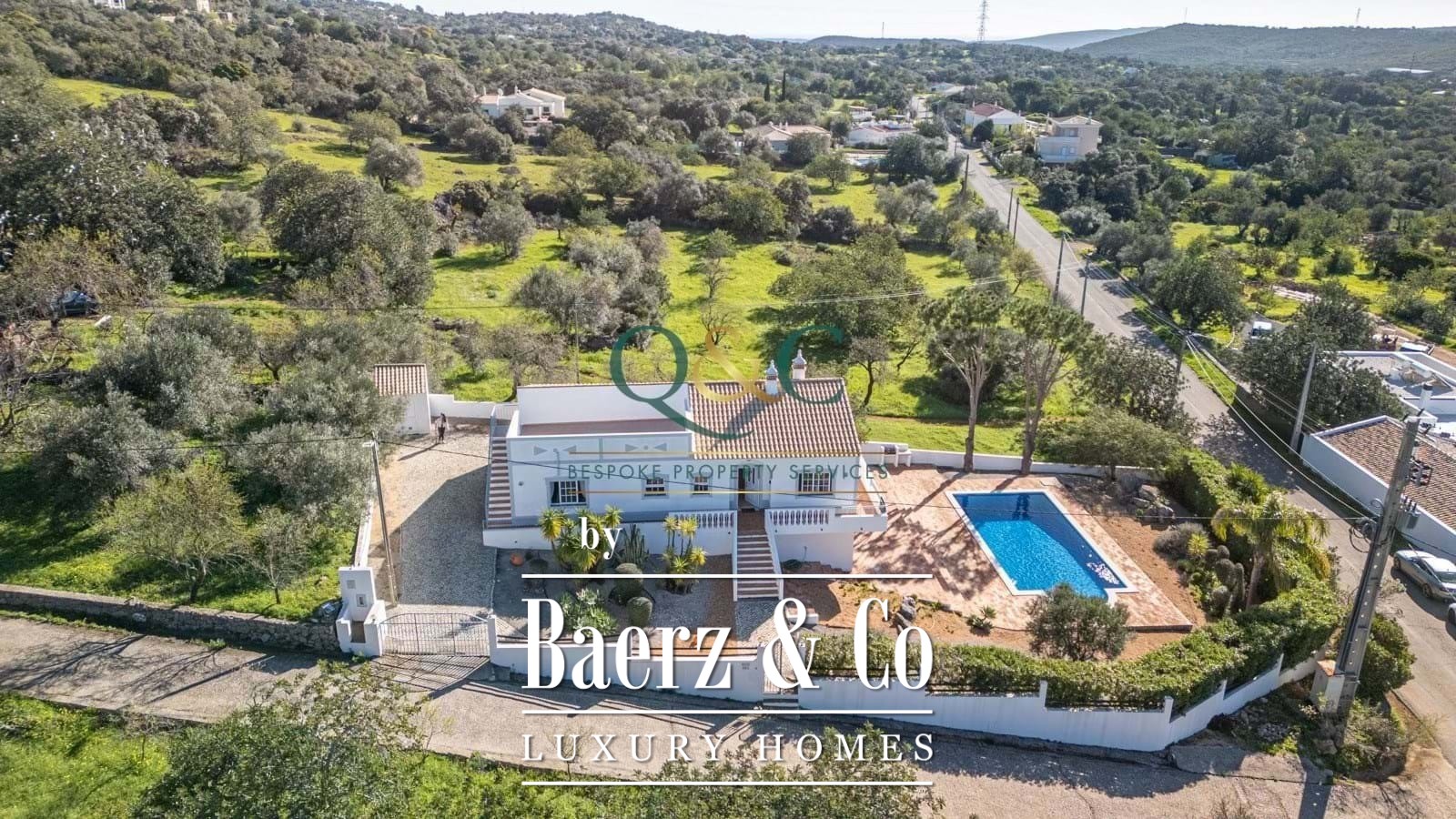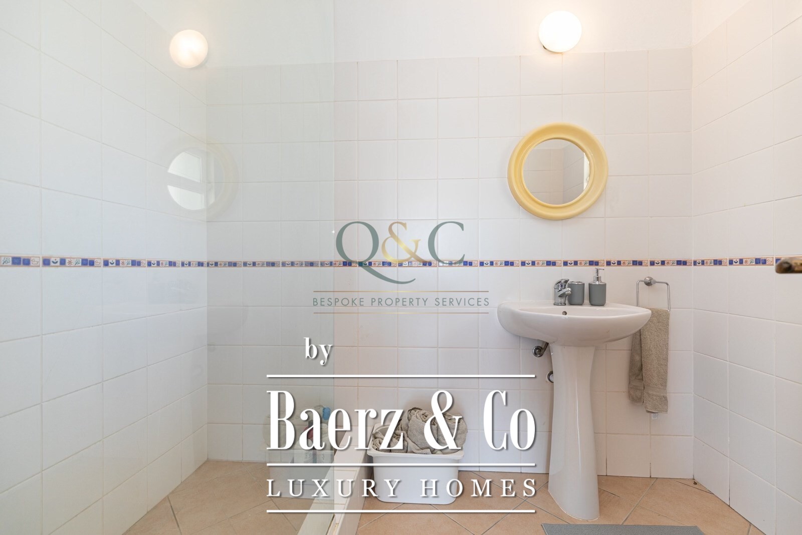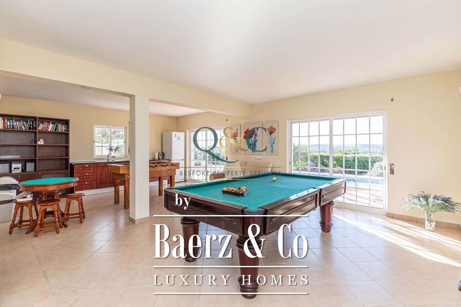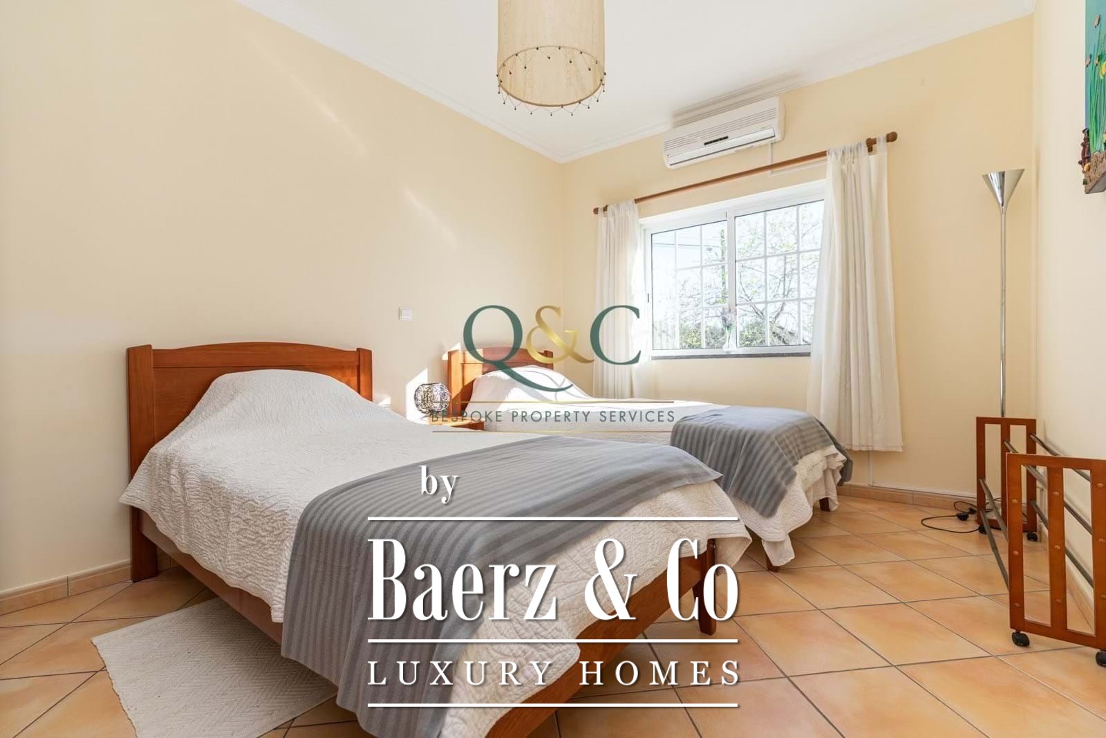 Schody prowadzą do przestronnej sali rekreacyjnej z własną kuchnią i łazienką, która może służyć jako czwarta sypialnia lub niezależne mieszkanie. Tarasy, dach z szerokim widokiem, dojrzałe ogrody i rozległy basen zapewniają przestrzeń zarówno do relaksu, jak i spotkań towarzyskich lub kameralnego odpoczynku. Do atutów należy klimatyzacja w całym domu, okna z podwójnymi szybami, grill, system nawadniania, parking na podjeździe oraz dostęp do wodociągu miejskiego. Ta willa zapewnia natychmiastowy kontakt z rytmem życia regionu Algarve przy jednoczesnej bliskości wszelkich miejskich udogodnień.
