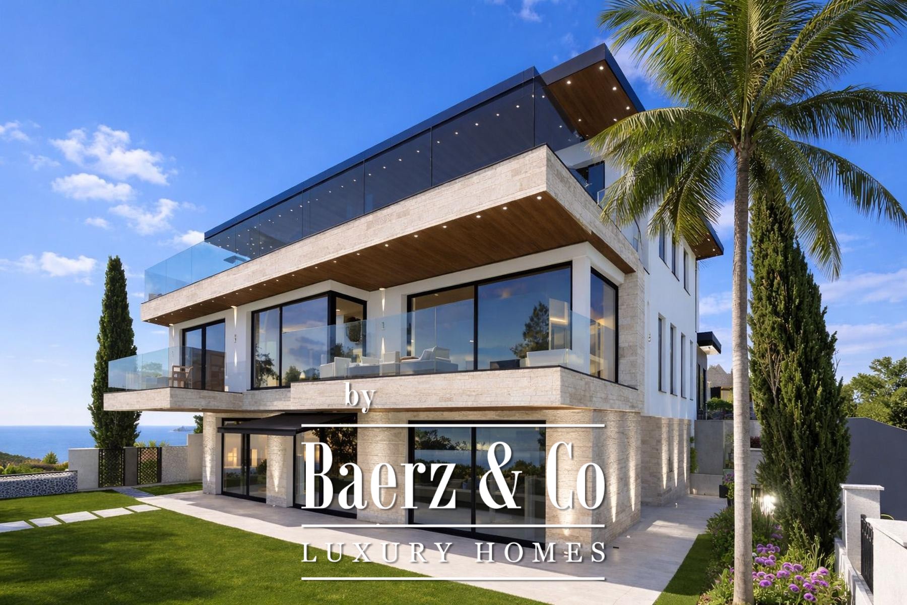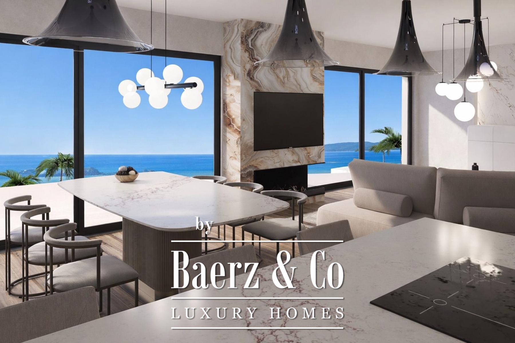 Górne piętro stanowi prywatną przestrzeń mieszkalną, oferując komfort i poczucie niezależności właściwe wolnostojącemu domowi. Przeszklone ściany wypełniają wnętrza naturalnym światłem i otwierają szeroki widok na Zatokę Kvarnerską, a otwarty układ płynnie łączy kuchnię, jadalnię i część dzienną. Przesuwne drzwi prowadzą z salonu na częściowo zadaszony taras o powierzchni 60 m², gdzie panoramiczny widok na morze i otaczającą zieleń tworzy spokojną enklawę.