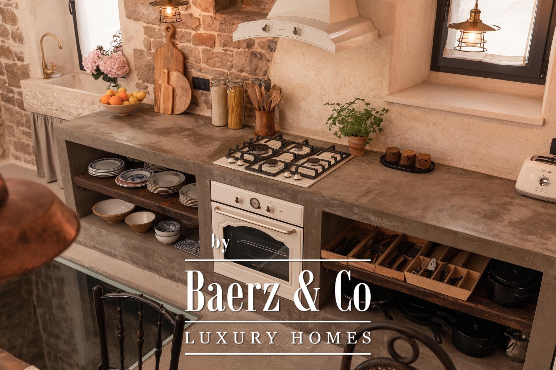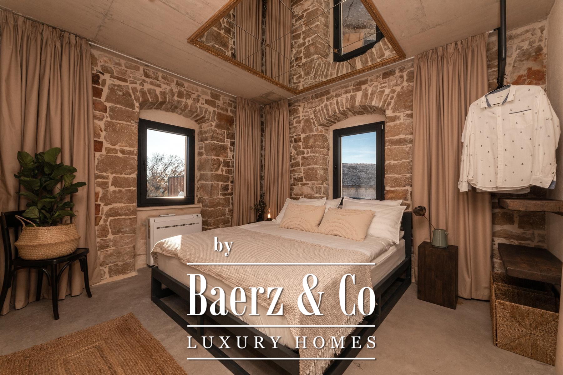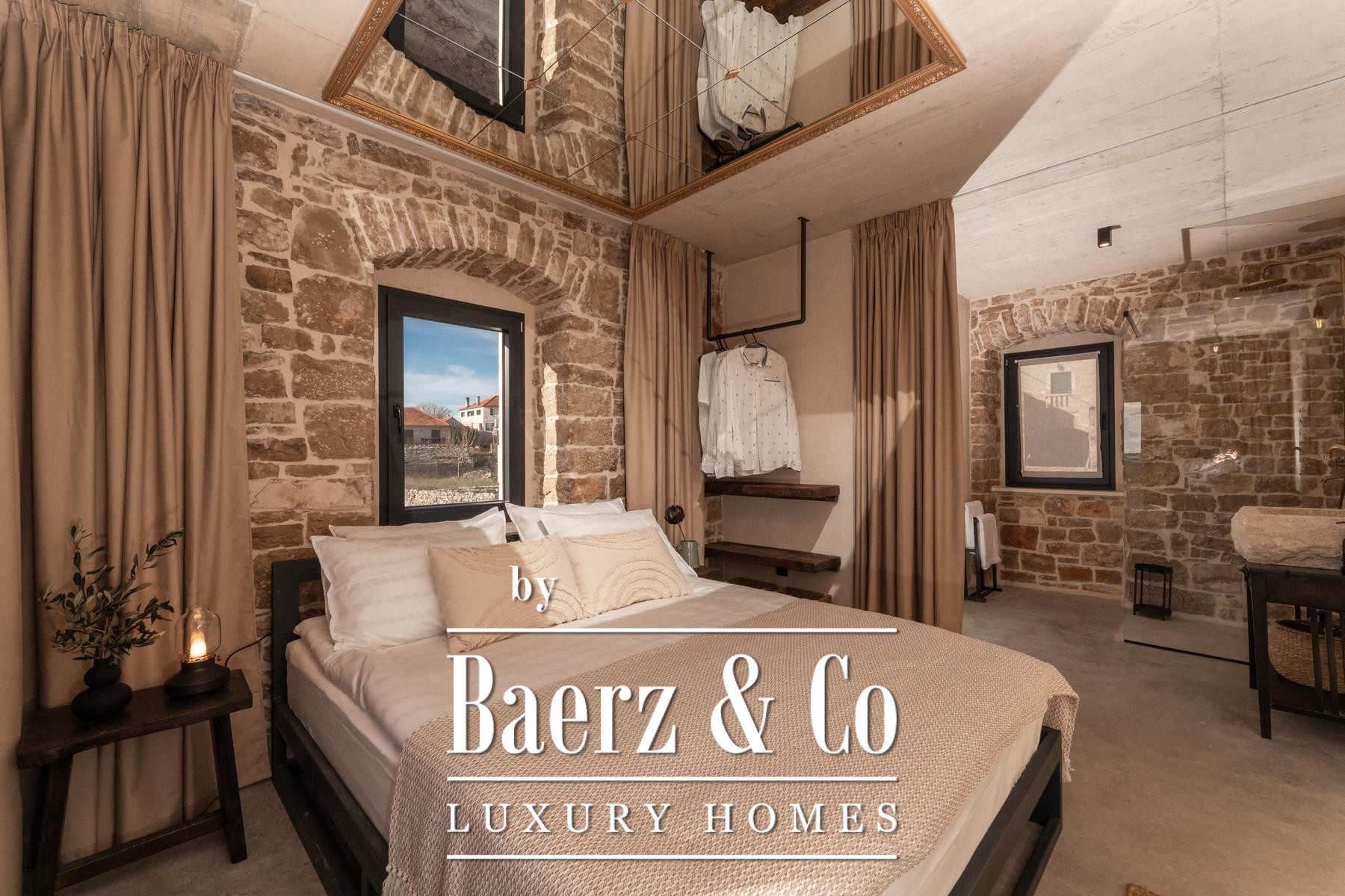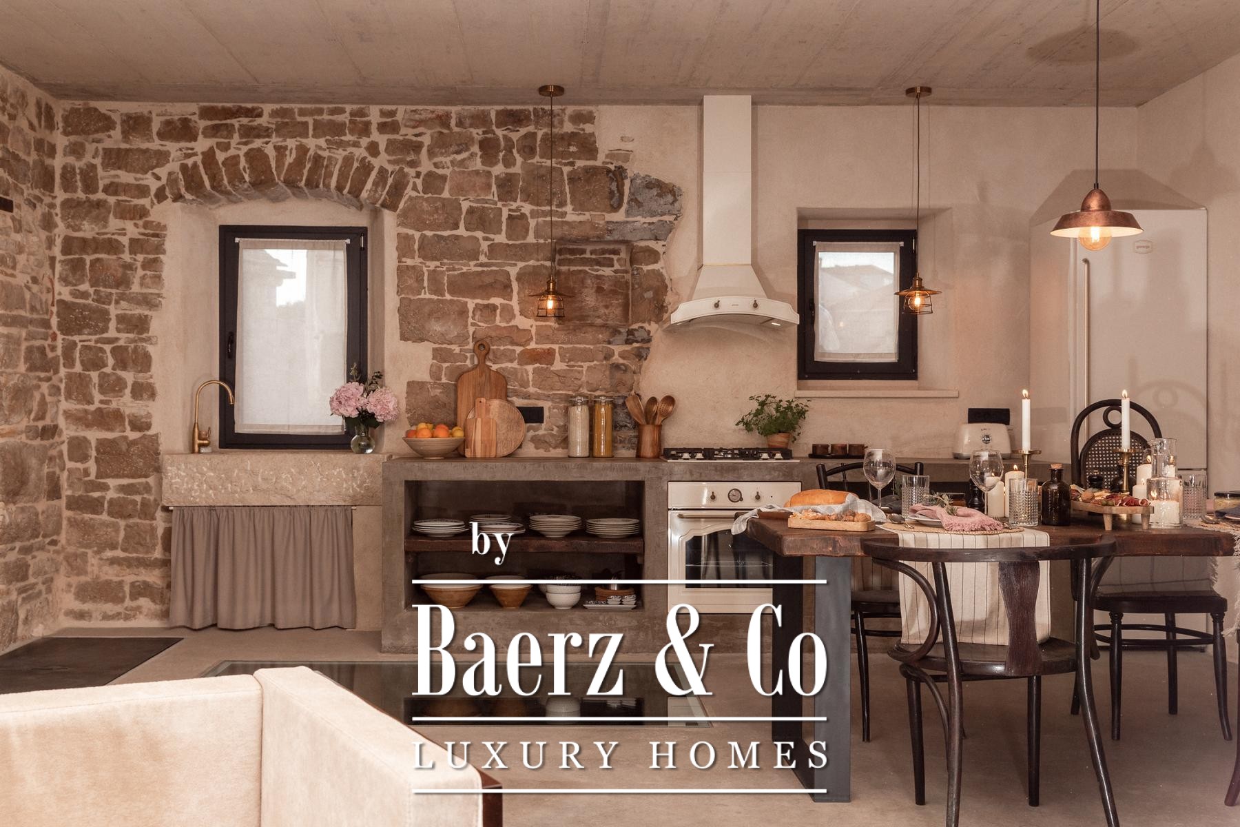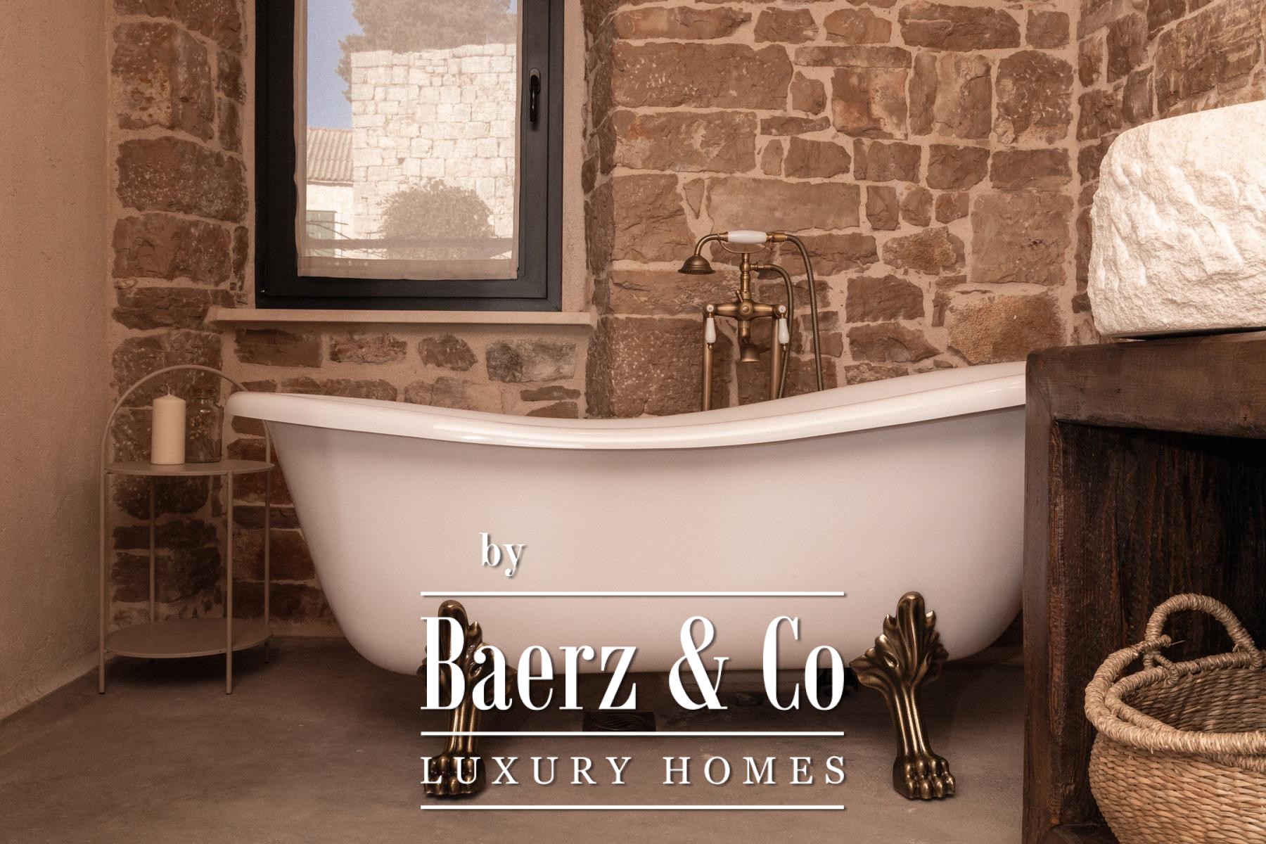 Stone house Brač Pučišća to nowe, współczesne spojrzenie na historyczną rezydencję dalmatyńską, przekształconą w wysmakowaną przestrzeń pełną nowoczesnego komfortu i dyskretnego luksusu. Pieczołowicie odrestaurowana nieruchomość rozciąga się na 122 m², rozmieszczonych na trzech kondygnacjach, na działce o powierzchni 581 m². Parter, gdzie niegdyś mieściły się piwnice na oliwę i wino, a później kuźnia, obecnie obejmuje nowoczesną kuchnię, salon, pomieszczenie gospodarcze, toaletę dla gości oraz bar kawowo-winny, płynnie łącząc lokalną tradycję z praktyczną elegancją.