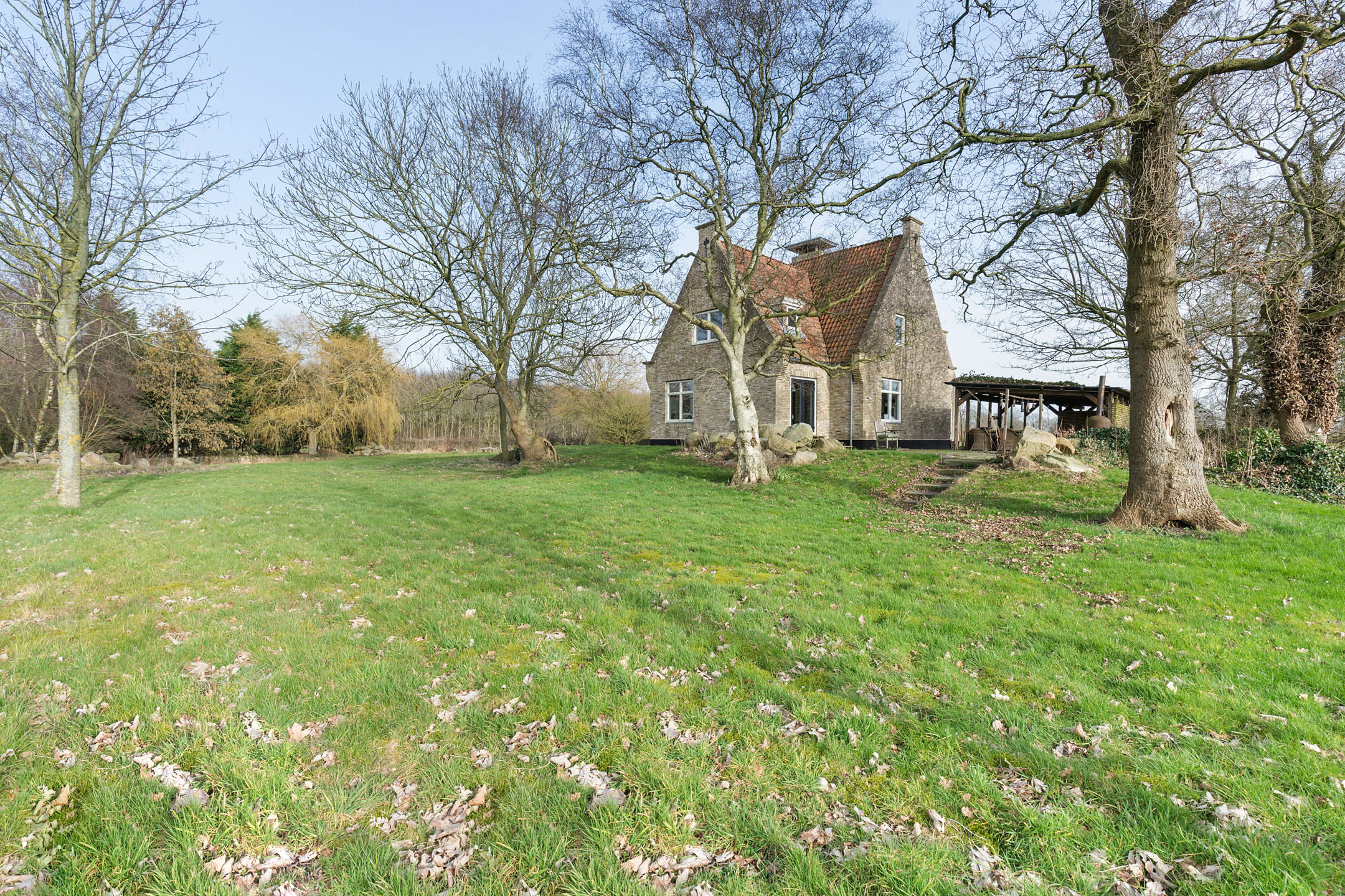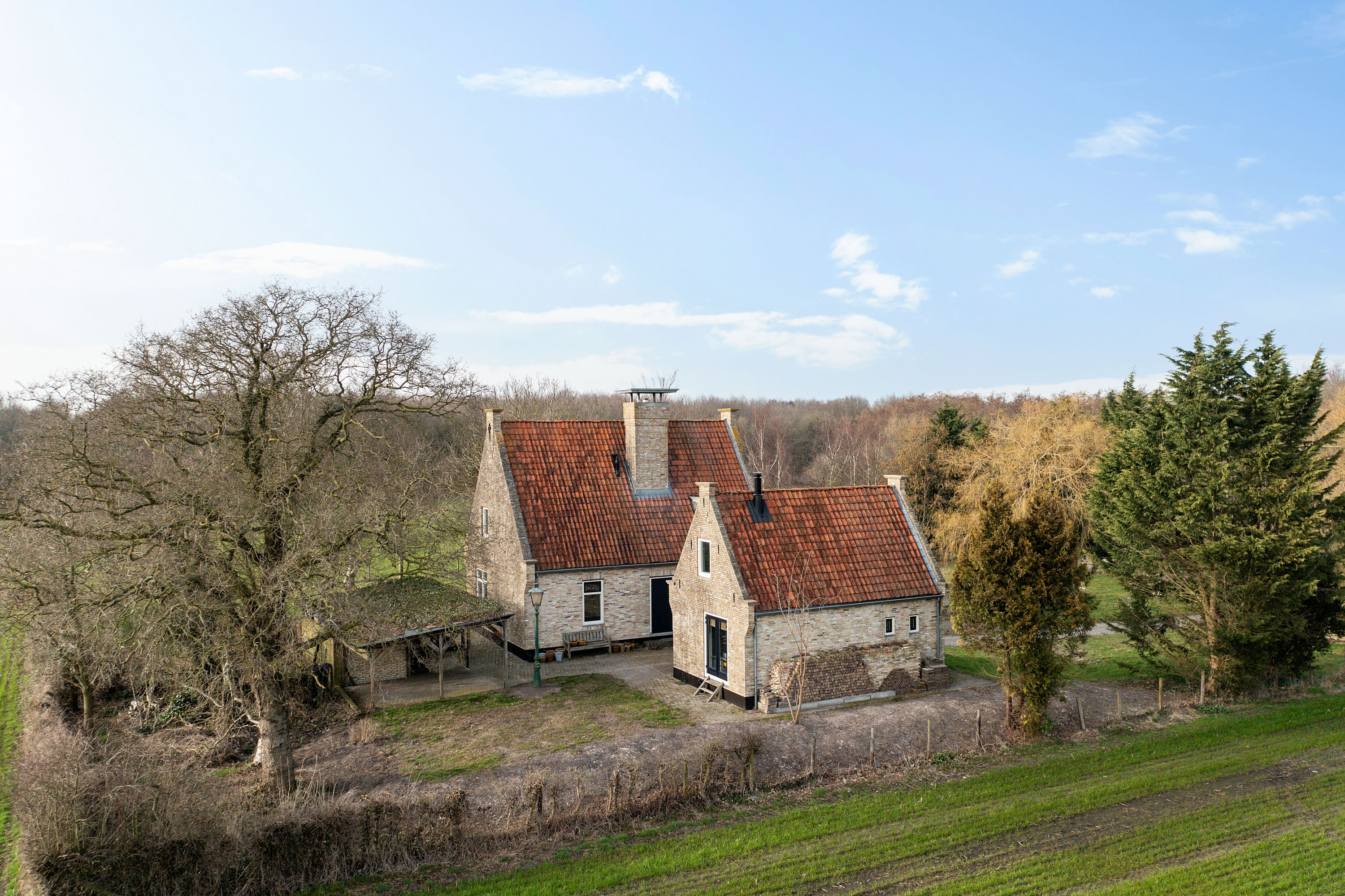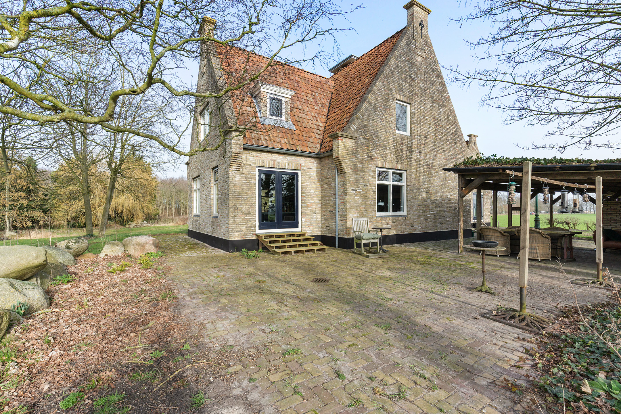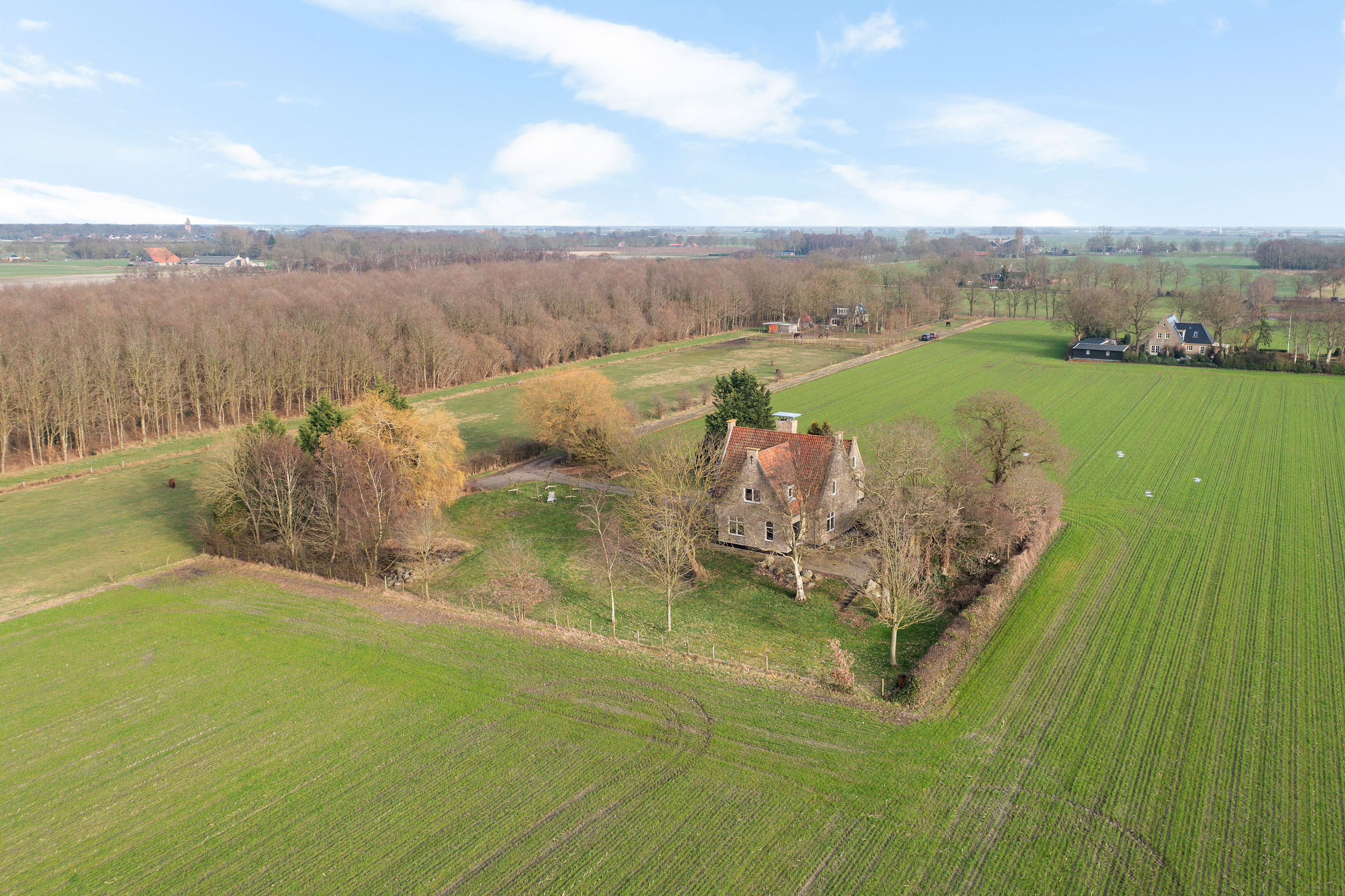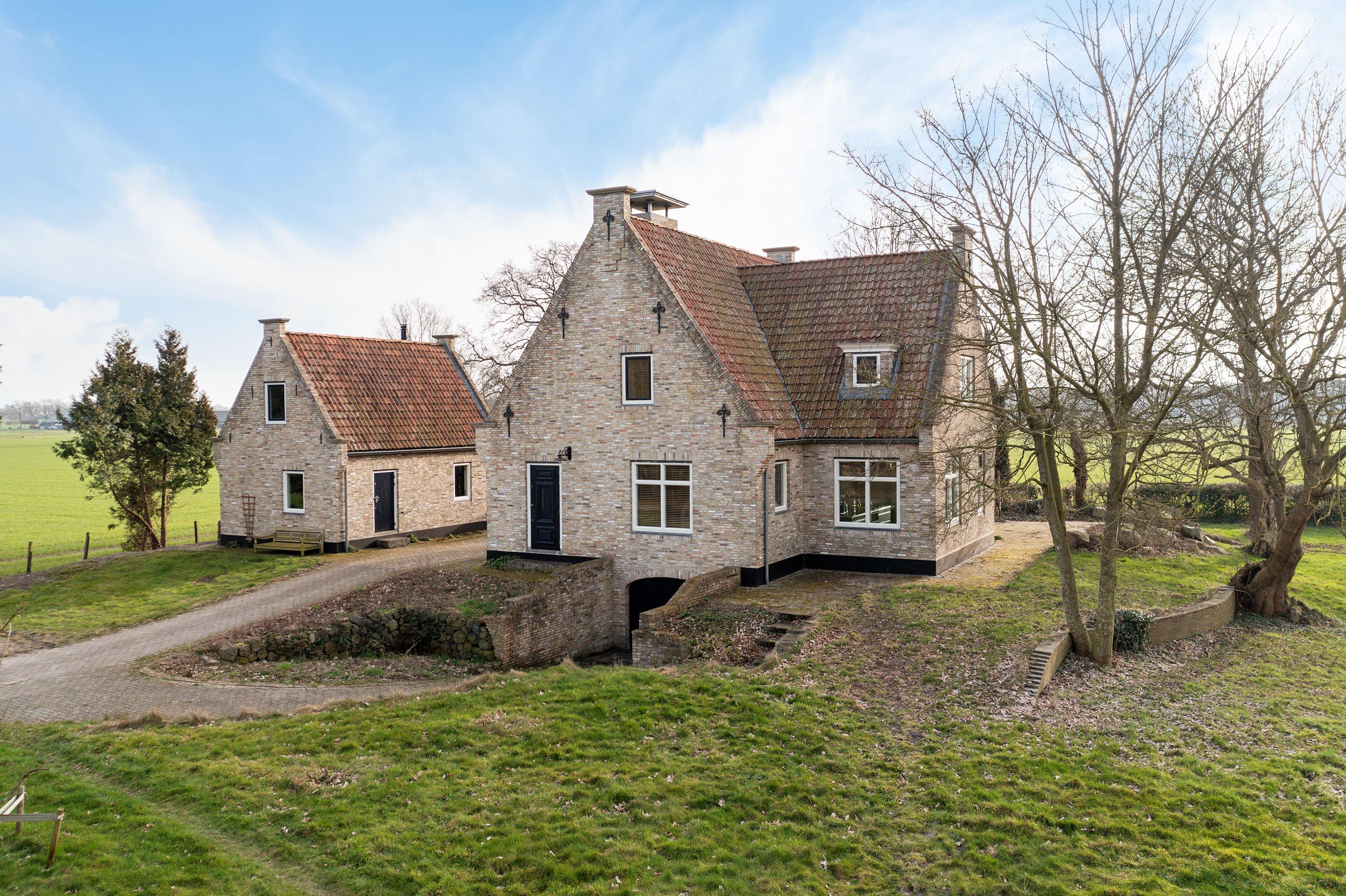 Willa została wzniesiona w charakterystycznym fryzyjskim stylu, z żółtej cegły i elewacyjnych cegieł Appelbloesem, drewnianymi ramami okien i rynnami z cynku. Przestronny salon otwiera się na zewnątrz dzięki panoramicznym widokom na krajobraz Gaasterlandu z niemal każdego okna; belki stropowe, podłogi z twardego drewna i elegancki kominek z piecem na drewno tworzą wyrafinowaną atmosferę. Nowoczesna kuchnia, wyposażona w dużą wyspę kuchenną i zabudowane sprzęty, prowadzi na taras wychodzący na południowy zachód, idealny do podziwiania widoków od świtu do zmierzchu.