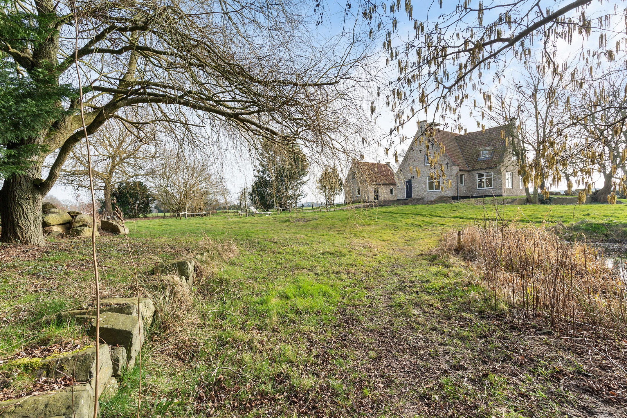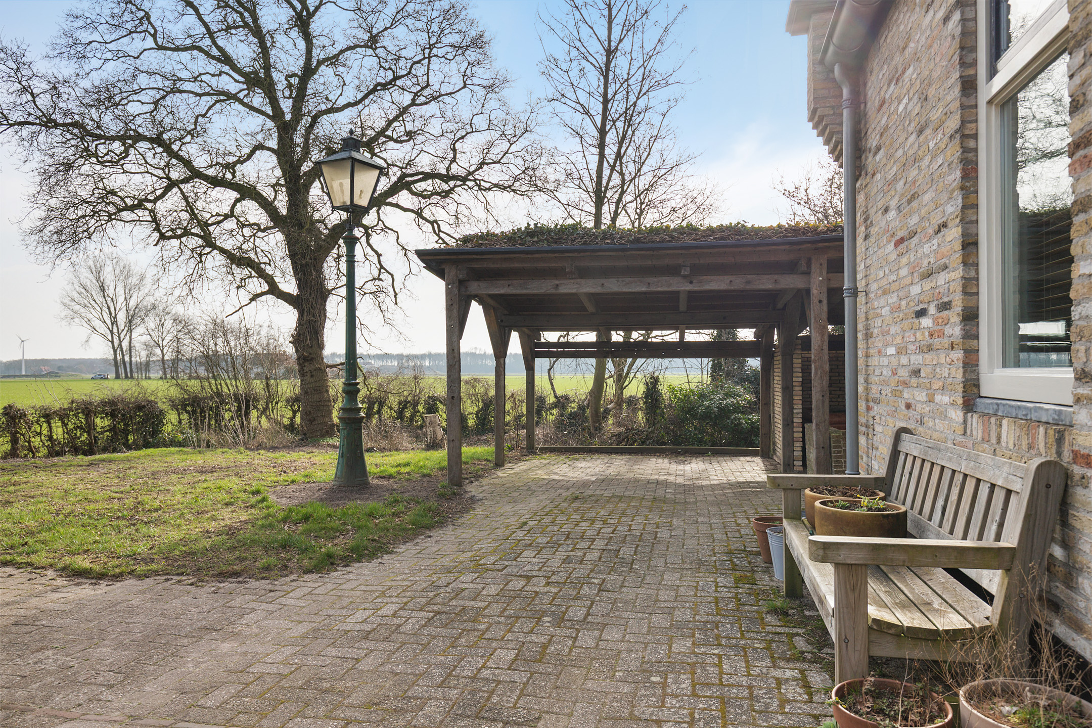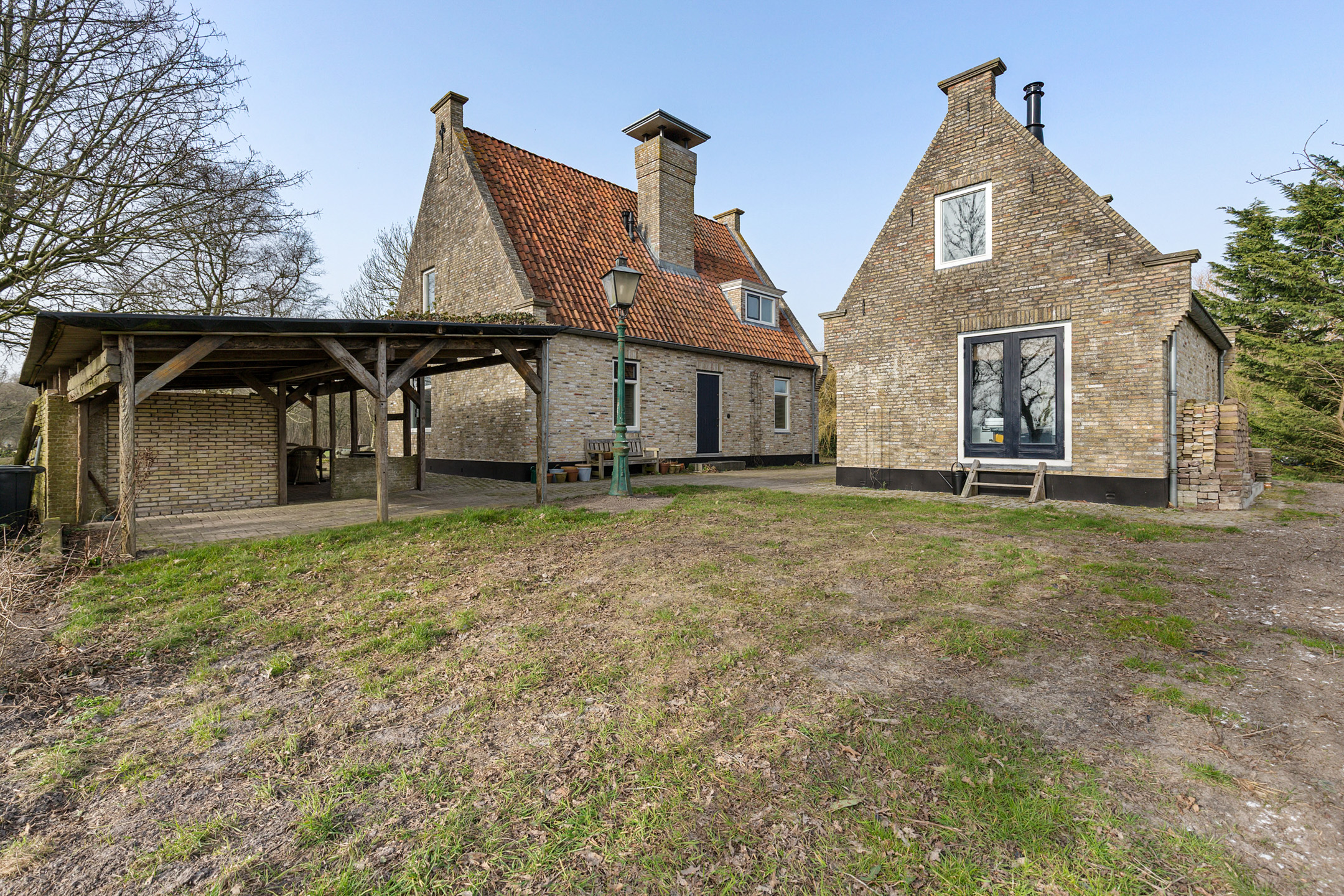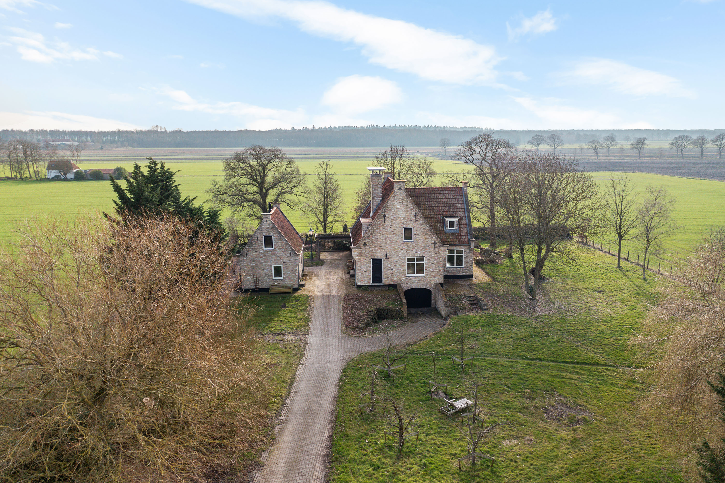 Willa została wzniesiona w charakterystycznym fryzyjskim stylu, z żółtej cegły i elewacyjnych cegieł Appelbloesem, drewnianymi ramami okien i rynnami z cynku. Przestronny salon otwiera się na zewnątrz dzięki panoramicznym widokom na krajobraz Gaasterlandu z niemal każdego okna; belki stropowe, podłogi z twardego drewna i elegancki kominek z piecem na drewno tworzą wyrafinowaną atmosferę. Nowoczesna kuchnia, wyposażona w dużą wyspę kuchenną i zabudowane sprzęty, prowadzi na taras wychodzący na południowy zachód, idealny do podziwiania widoków od świtu do zmierzchu.