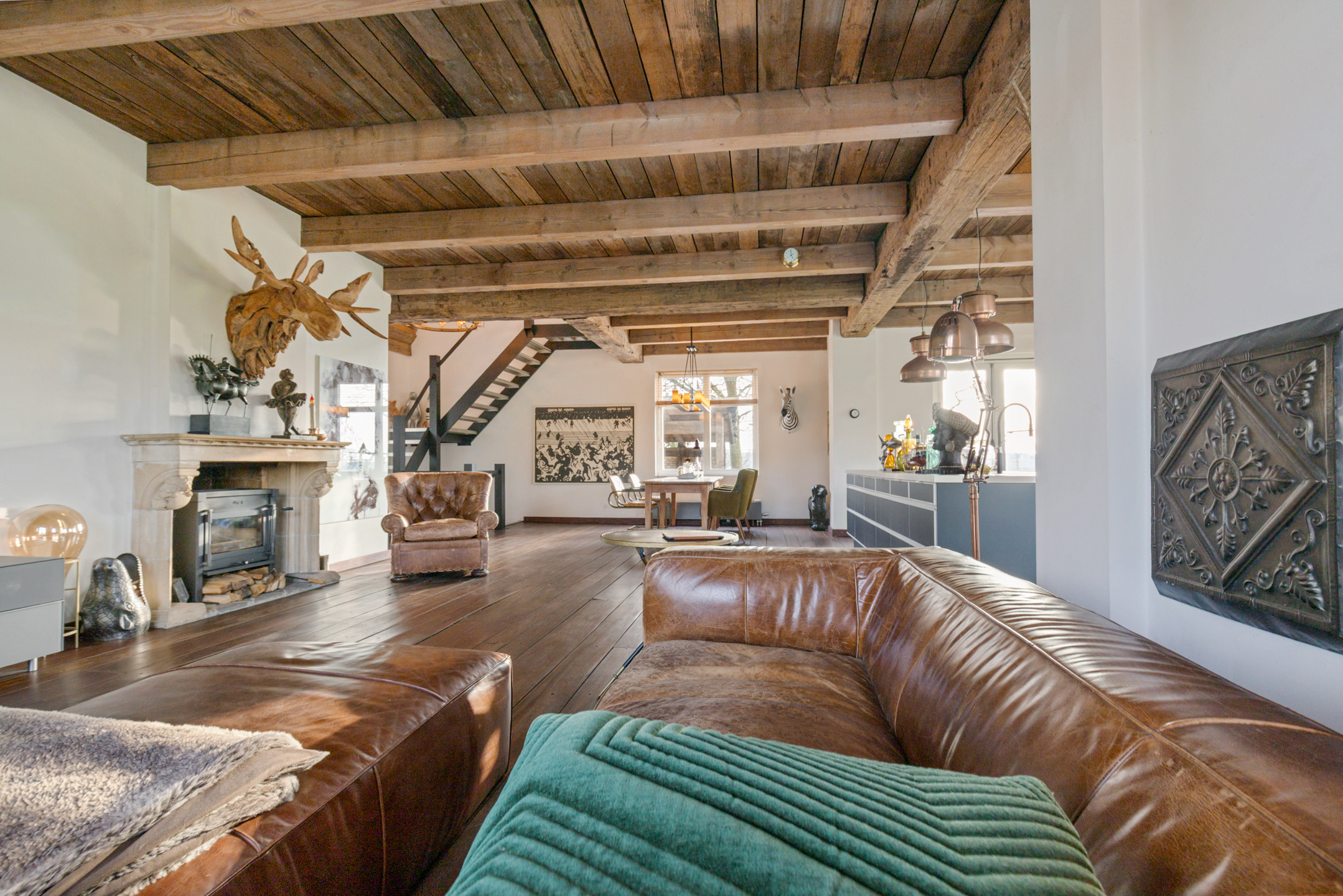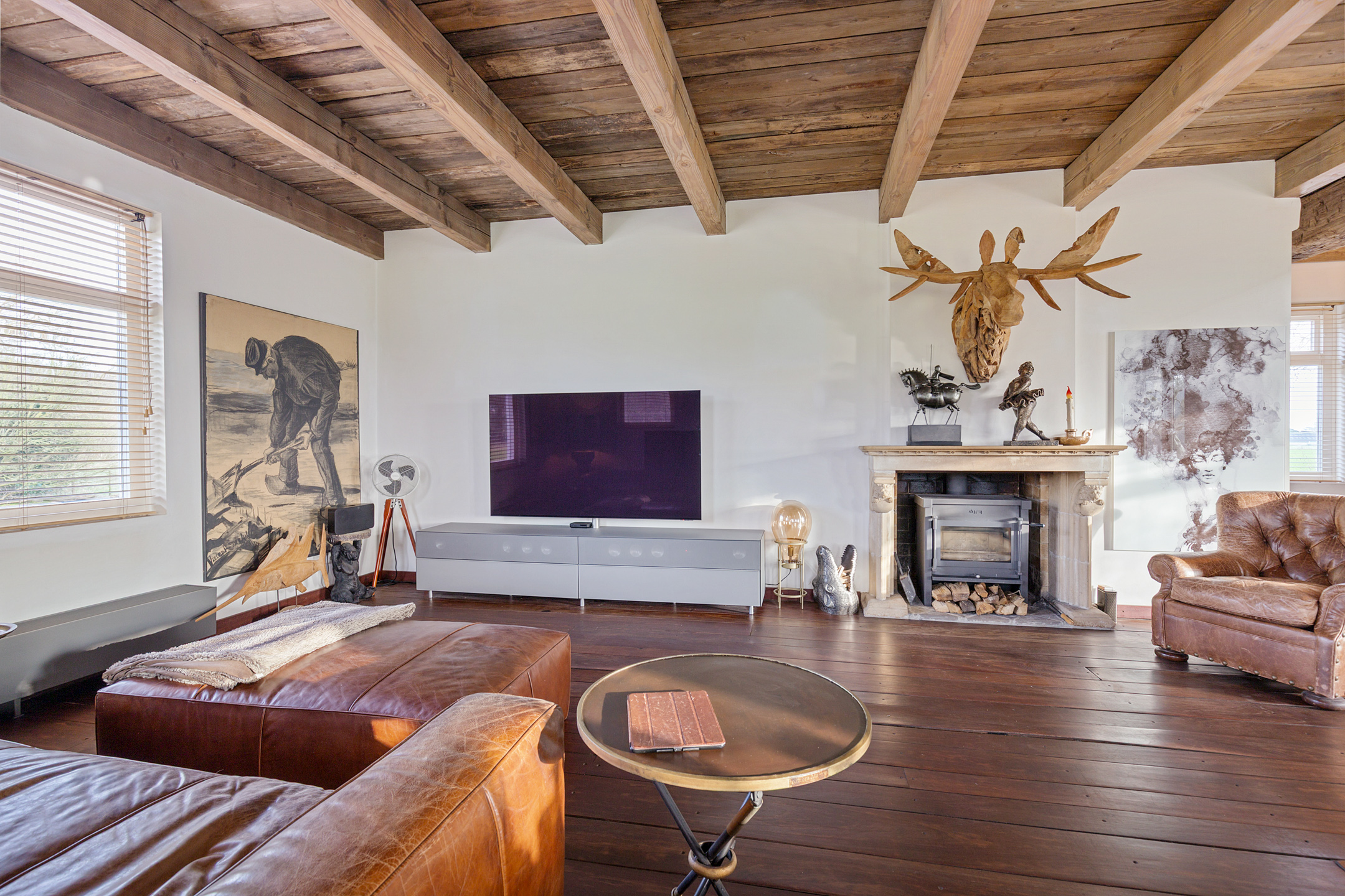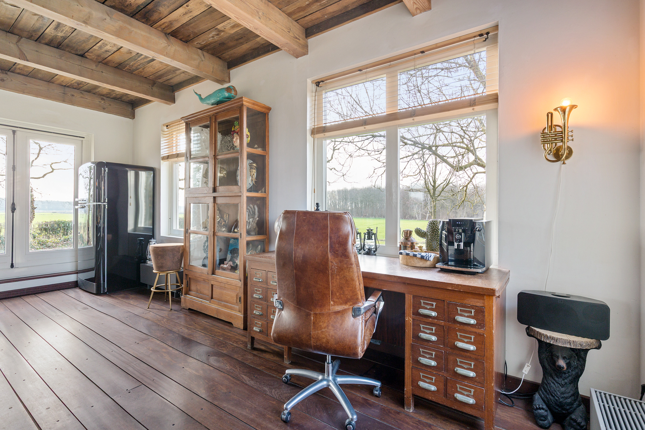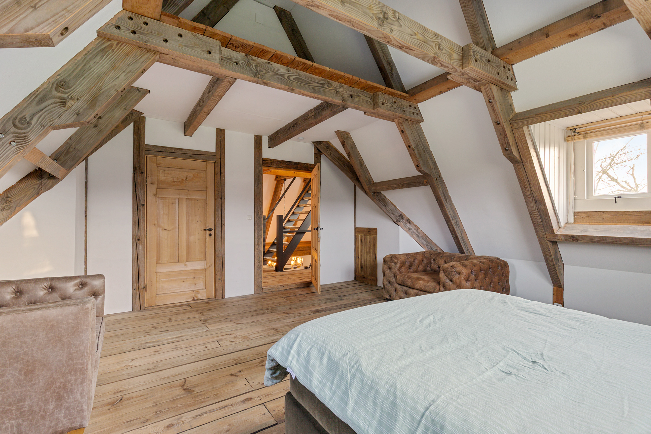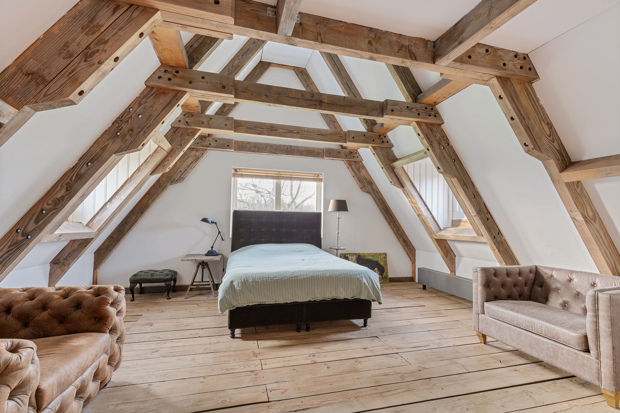 Willa została wzniesiona w charakterystycznym fryzyjskim stylu, z żółtej cegły i elewacyjnych cegieł Appelbloesem, drewnianymi ramami okien i rynnami z cynku. Przestronny salon otwiera się na zewnątrz dzięki panoramicznym widokom na krajobraz Gaasterlandu z niemal każdego okna; belki stropowe, podłogi z twardego drewna i elegancki kominek z piecem na drewno tworzą wyrafinowaną atmosferę. Nowoczesna kuchnia, wyposażona w dużą wyspę kuchenną i zabudowane sprzęty, prowadzi na taras wychodzący na południowy zachód, idealny do podziwiania widoków od świtu do zmierzchu.