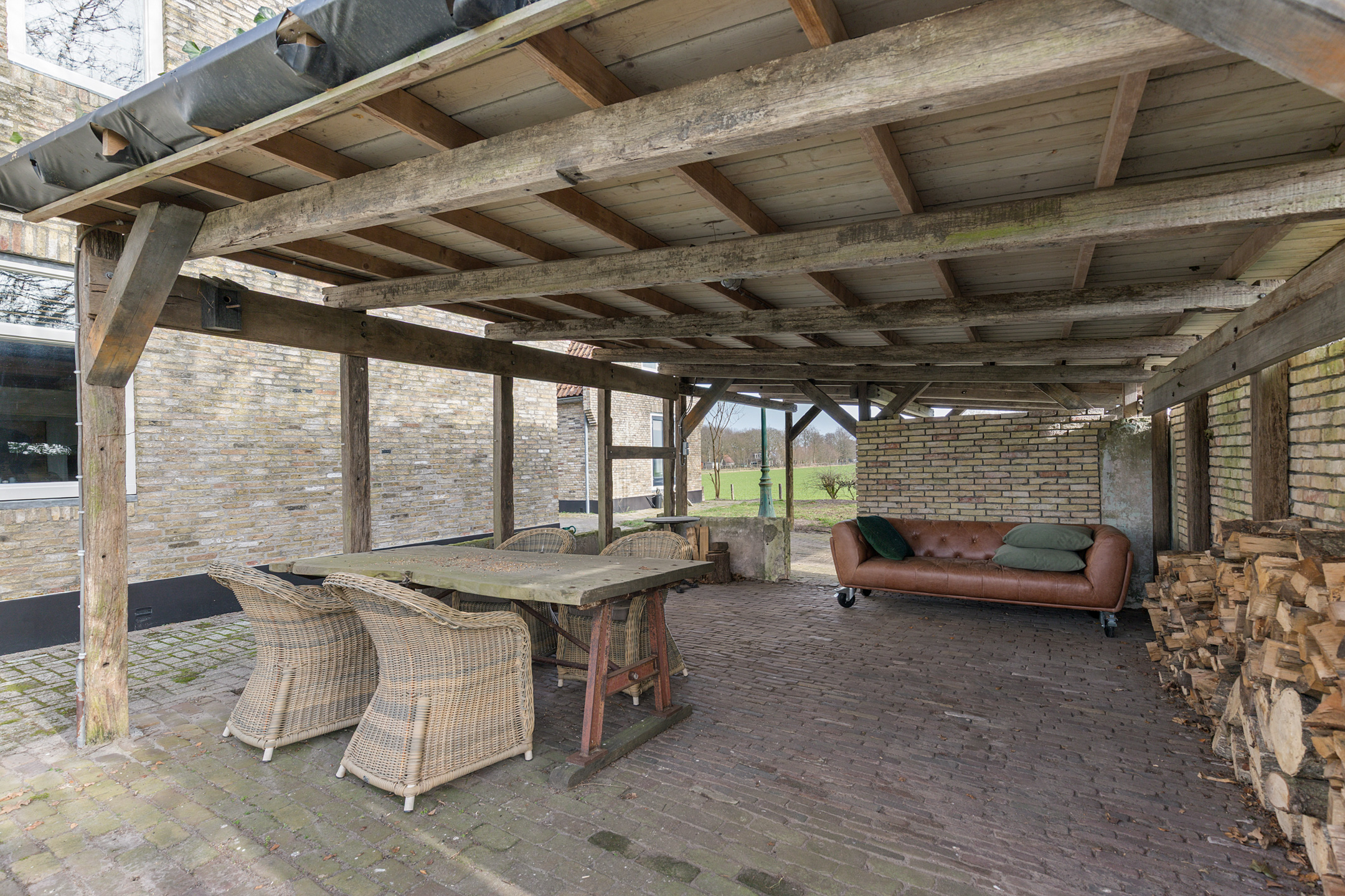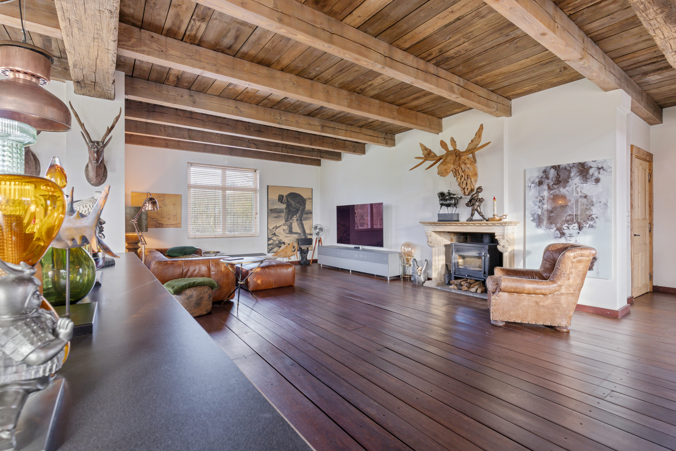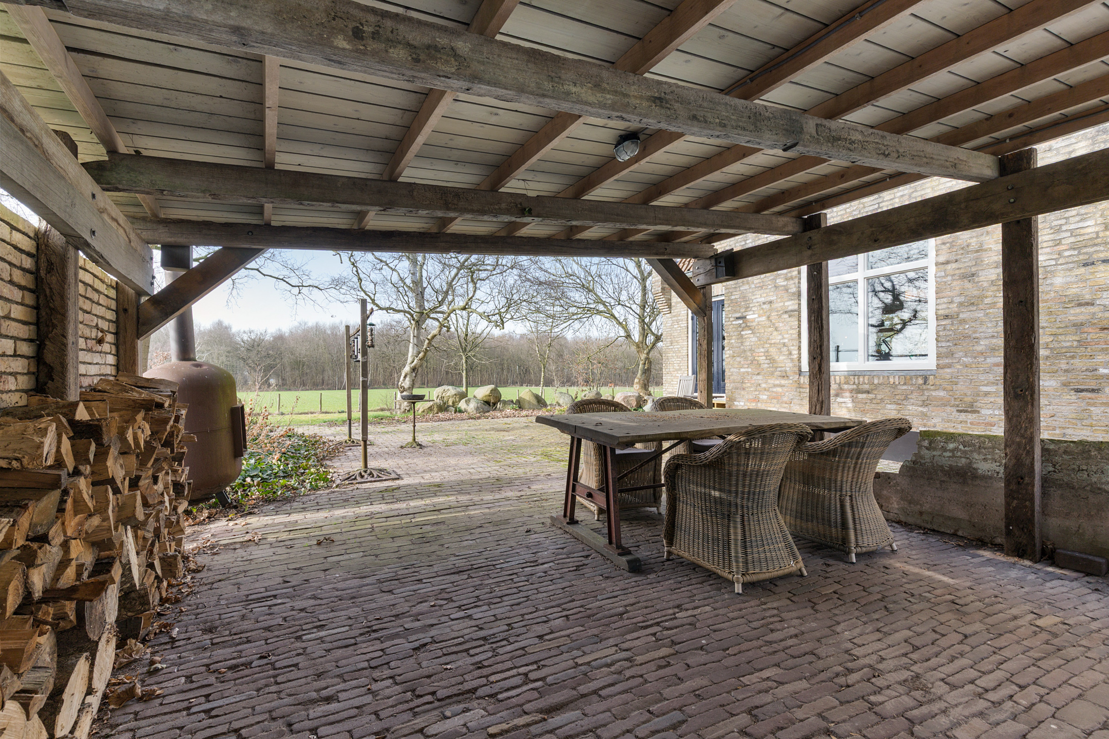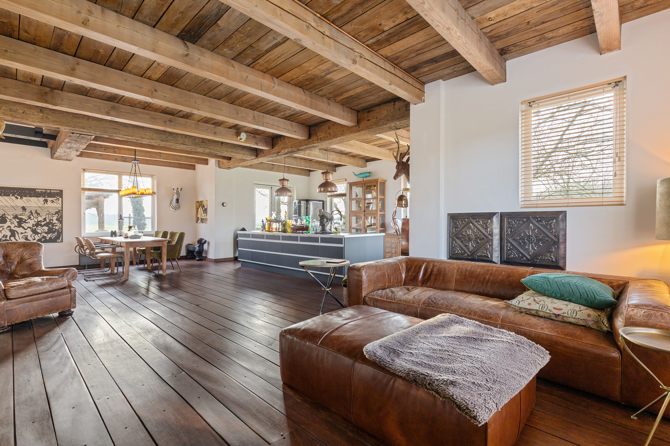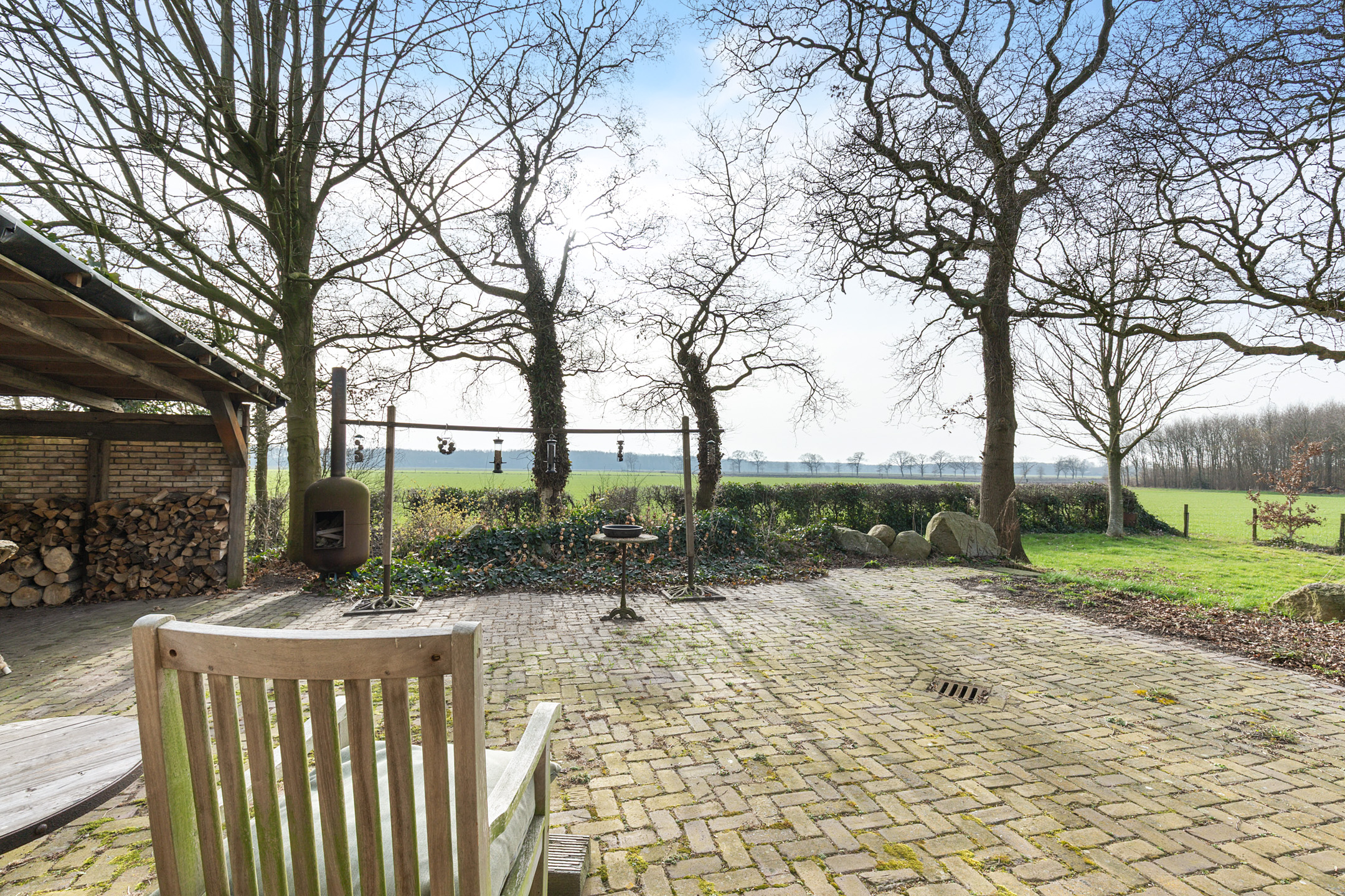 Willa została wzniesiona w charakterystycznym fryzyjskim stylu, z żółtej cegły i elewacyjnych cegieł Appelbloesem, drewnianymi ramami okien i rynnami z cynku. Przestronny salon otwiera się na zewnątrz dzięki panoramicznym widokom na krajobraz Gaasterlandu z niemal każdego okna; belki stropowe, podłogi z twardego drewna i elegancki kominek z piecem na drewno tworzą wyrafinowaną atmosferę. Nowoczesna kuchnia, wyposażona w dużą wyspę kuchenną i zabudowane sprzęty, prowadzi na taras wychodzący na południowy zachód, idealny do podziwiania widoków od świtu do zmierzchu.