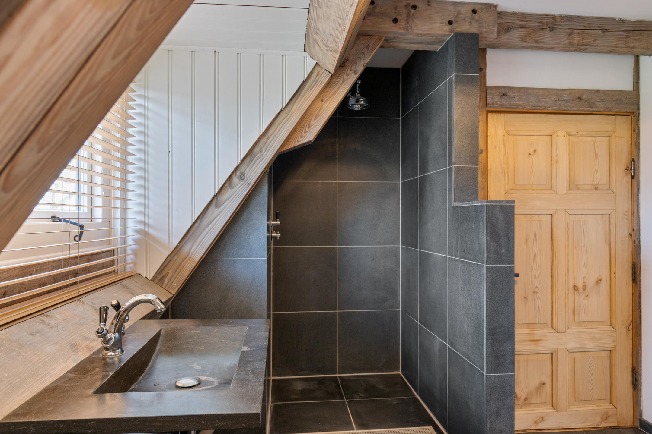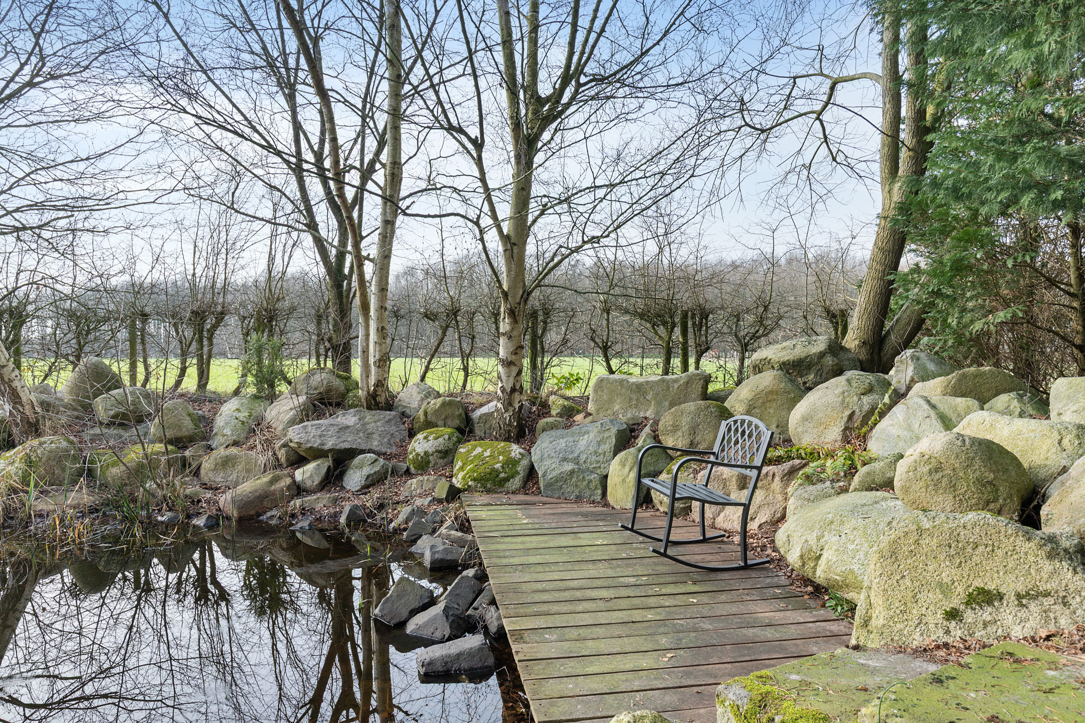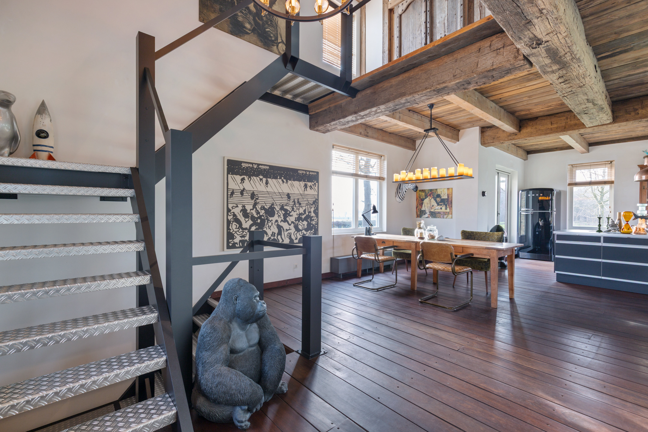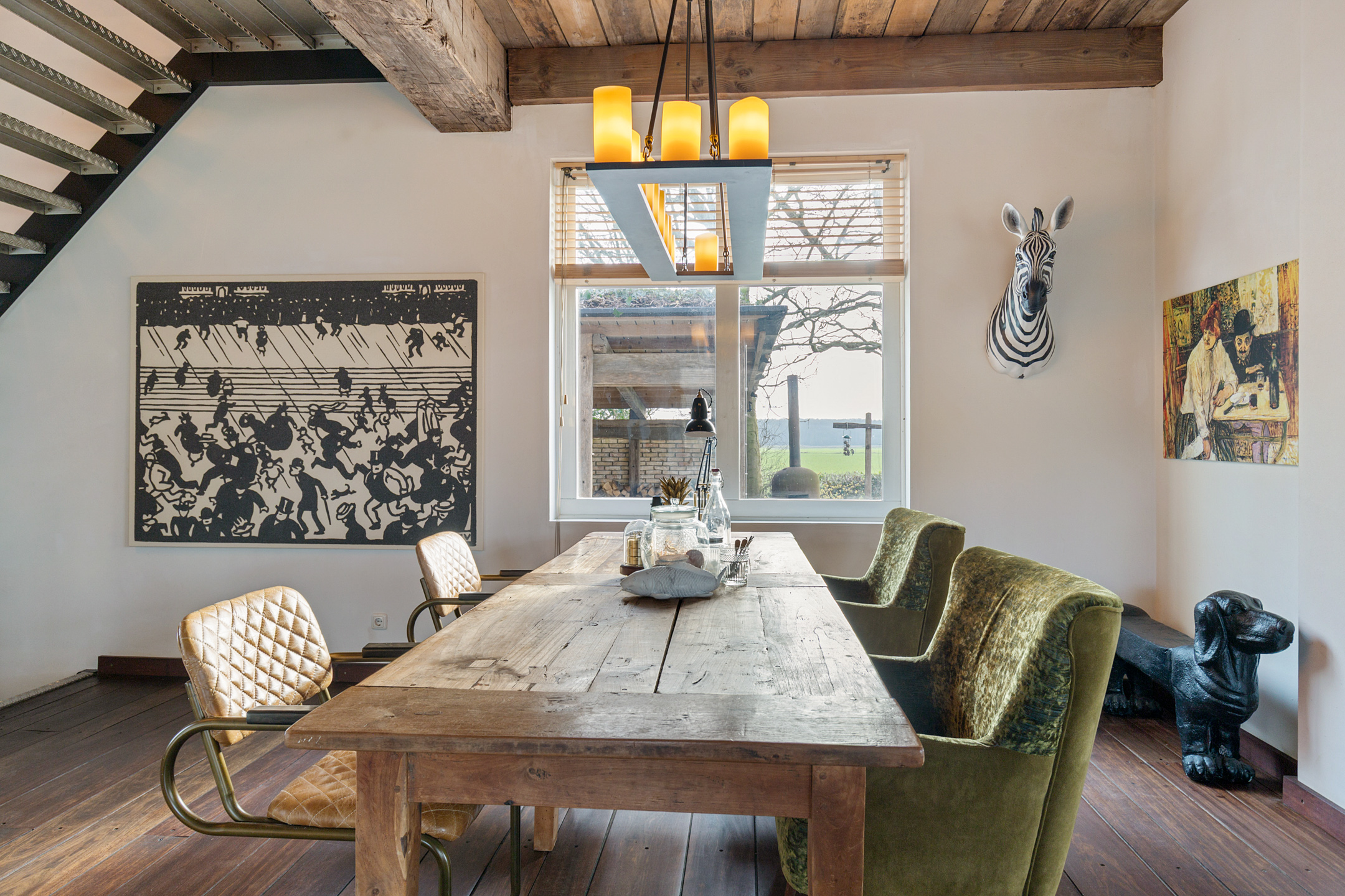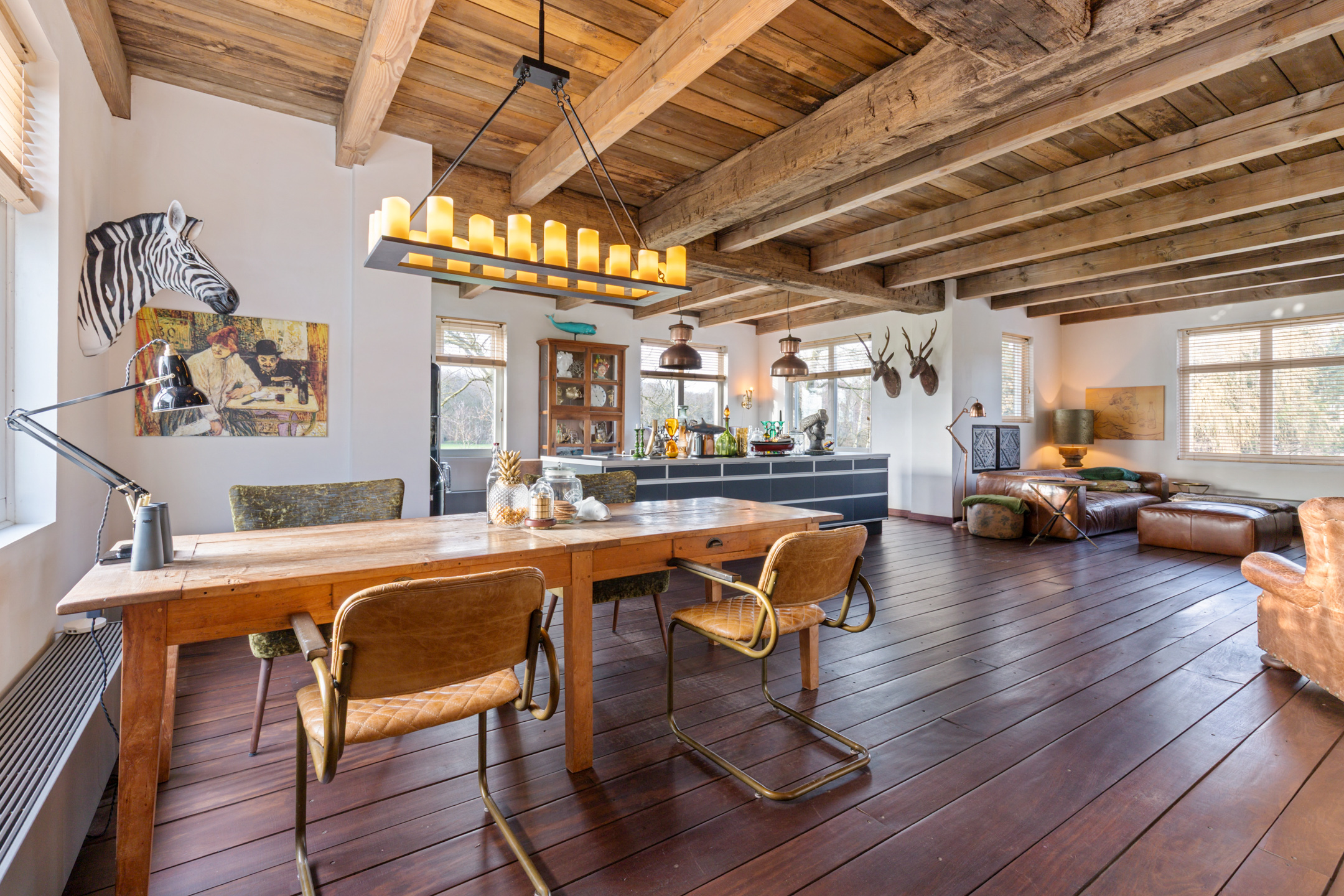 Willa została wzniesiona w charakterystycznym fryzyjskim stylu, z żółtej cegły i elewacyjnych cegieł Appelbloesem, drewnianymi ramami okien i rynnami z cynku. Przestronny salon otwiera się na zewnątrz dzięki panoramicznym widokom na krajobraz Gaasterlandu z niemal każdego okna; belki stropowe, podłogi z twardego drewna i elegancki kominek z piecem na drewno tworzą wyrafinowaną atmosferę. Nowoczesna kuchnia, wyposażona w dużą wyspę kuchenną i zabudowane sprzęty, prowadzi na taras wychodzący na południowy zachód, idealny do podziwiania widoków od świtu do zmierzchu.