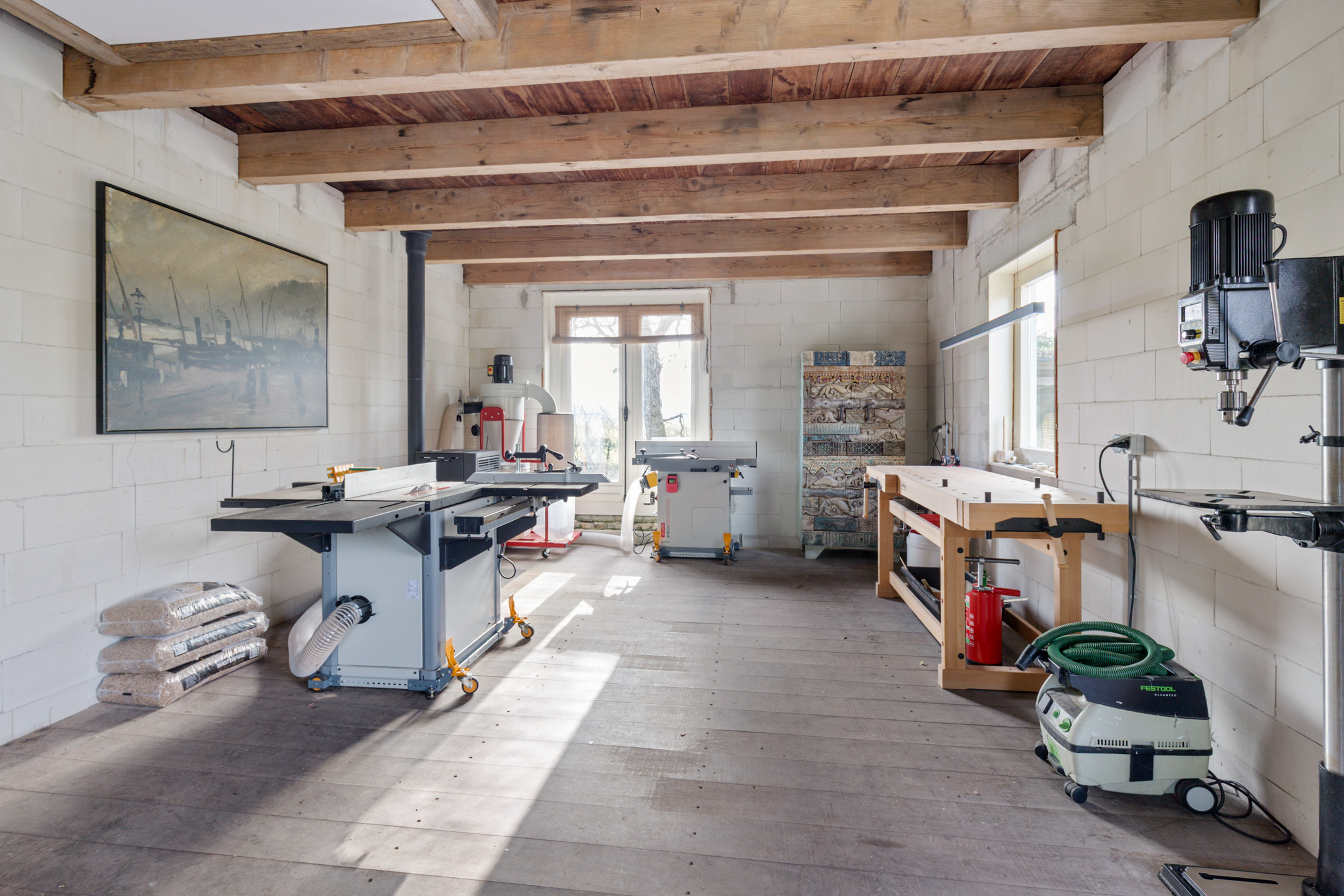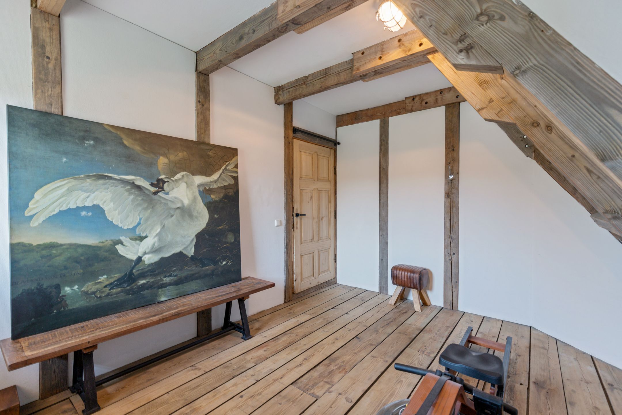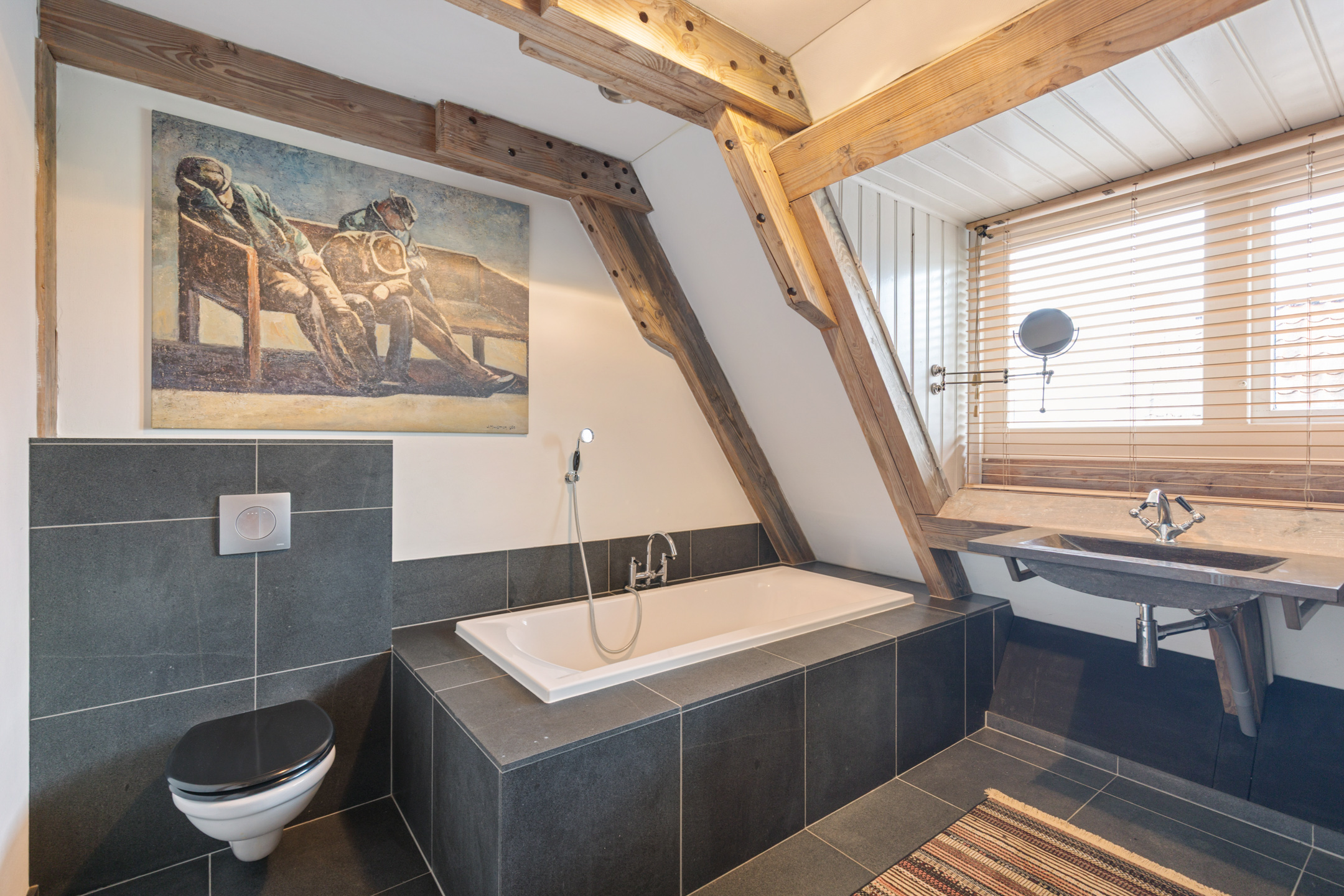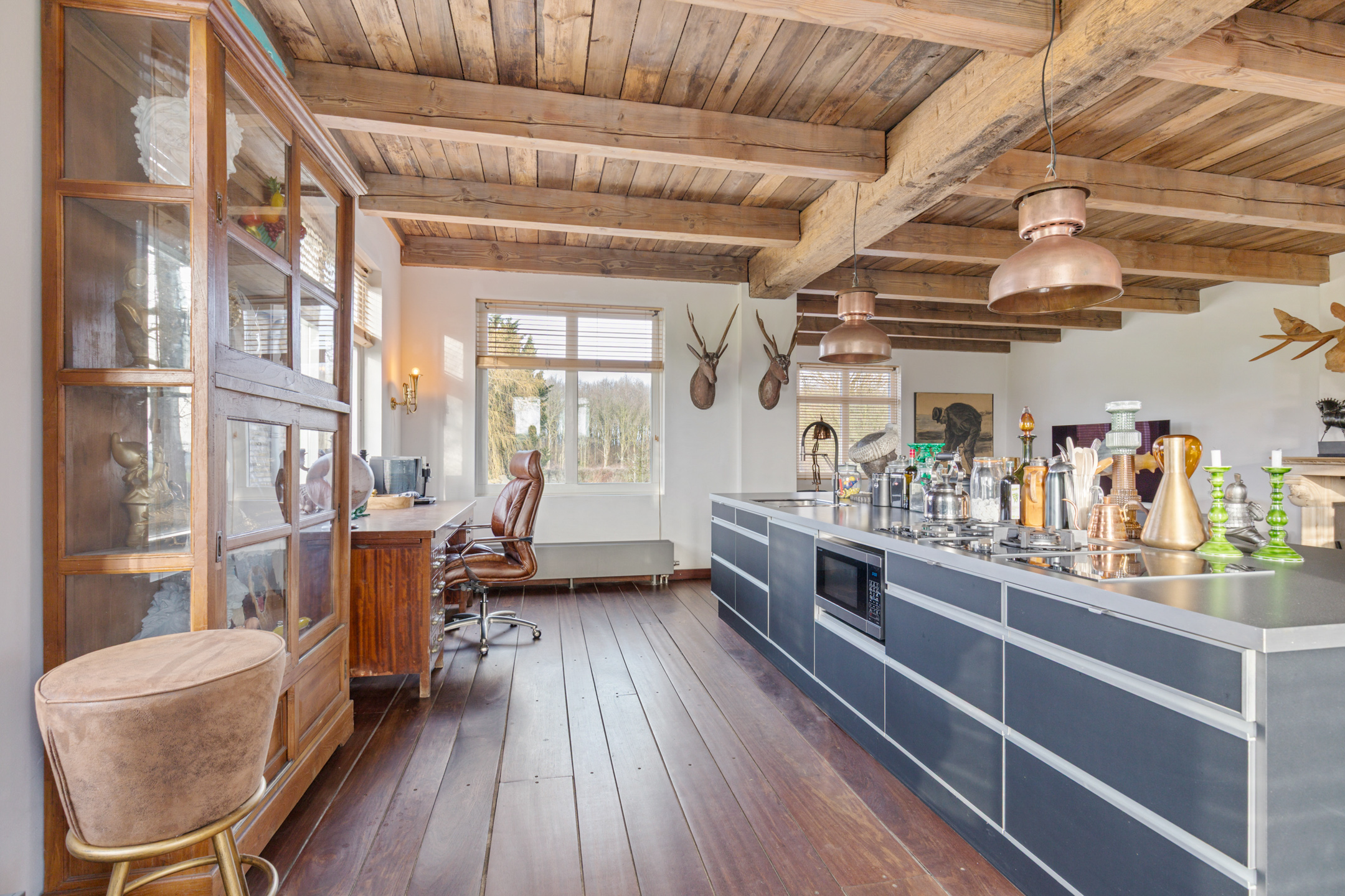 Willa została wzniesiona w charakterystycznym fryzyjskim stylu, z żółtej cegły i elewacyjnych cegieł Appelbloesem, drewnianymi ramami okien i rynnami z cynku. Przestronny salon otwiera się na zewnątrz dzięki panoramicznym widokom na krajobraz Gaasterlandu z niemal każdego okna; belki stropowe, podłogi z twardego drewna i elegancki kominek z piecem na drewno tworzą wyrafinowaną atmosferę. Nowoczesna kuchnia, wyposażona w dużą wyspę kuchenną i zabudowane sprzęty, prowadzi na taras wychodzący na południowy zachód, idealny do podziwiania widoków od świtu do zmierzchu.