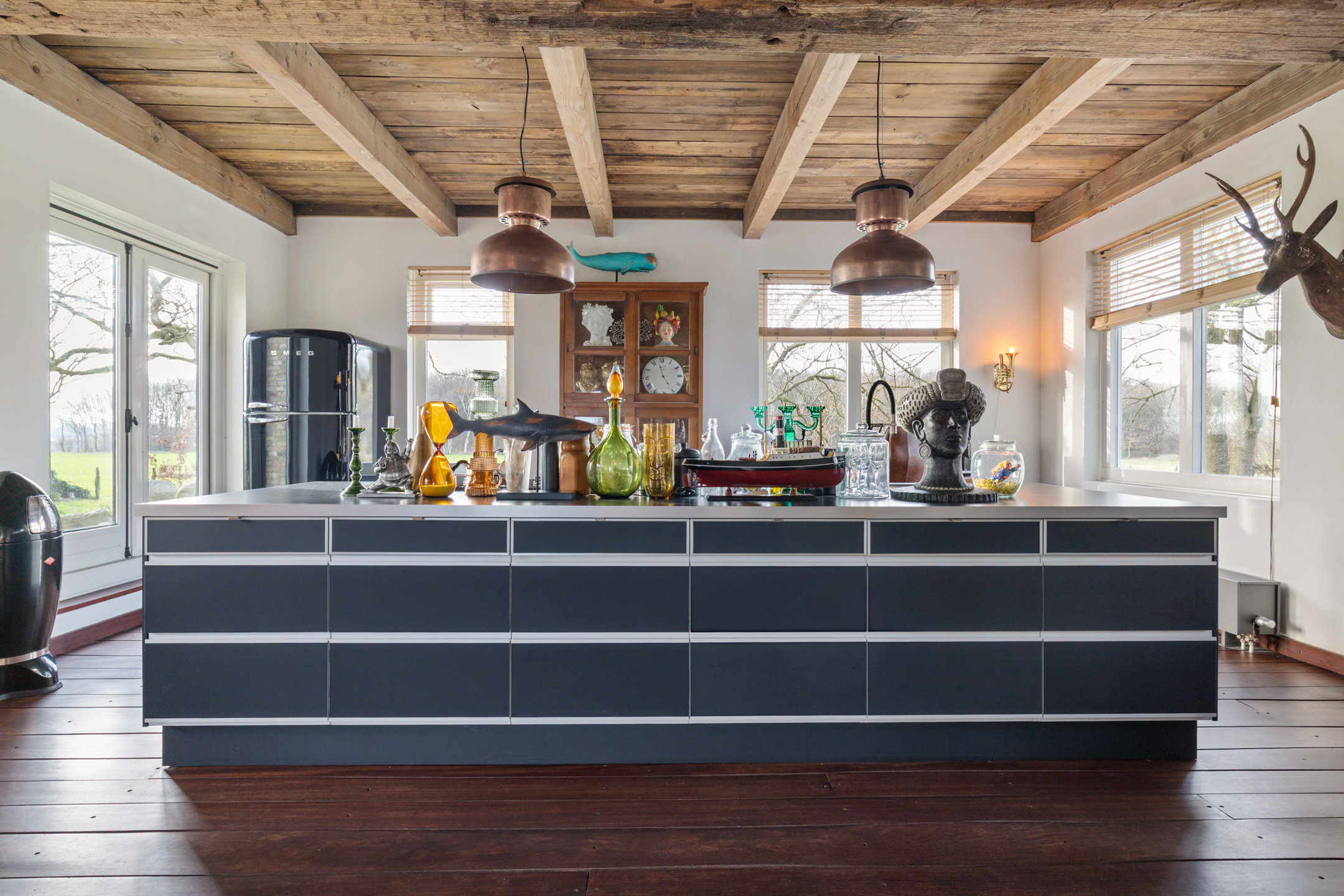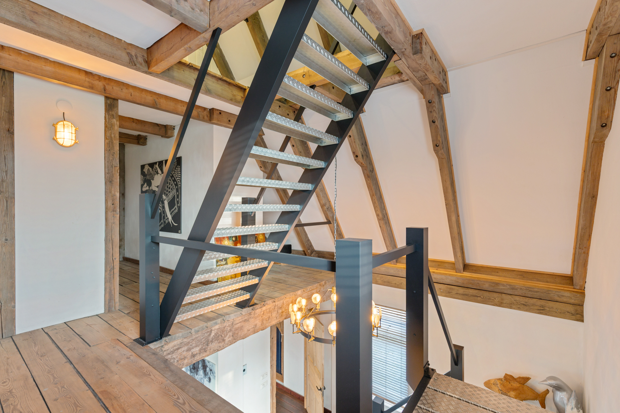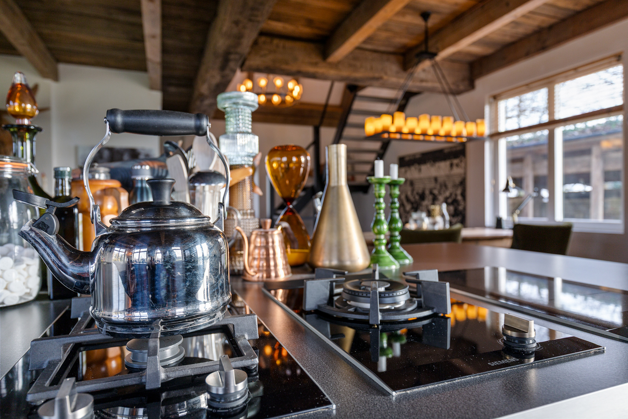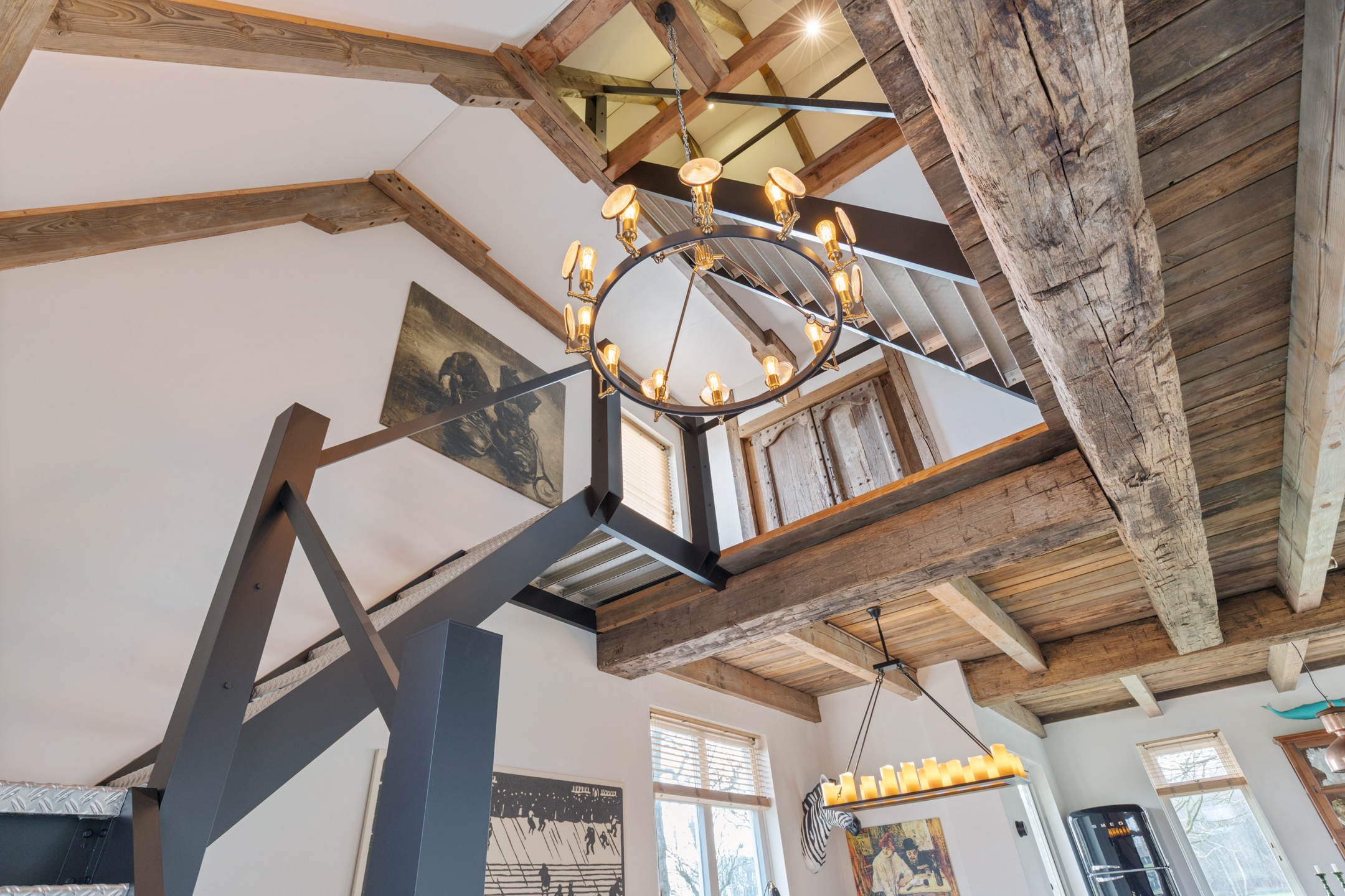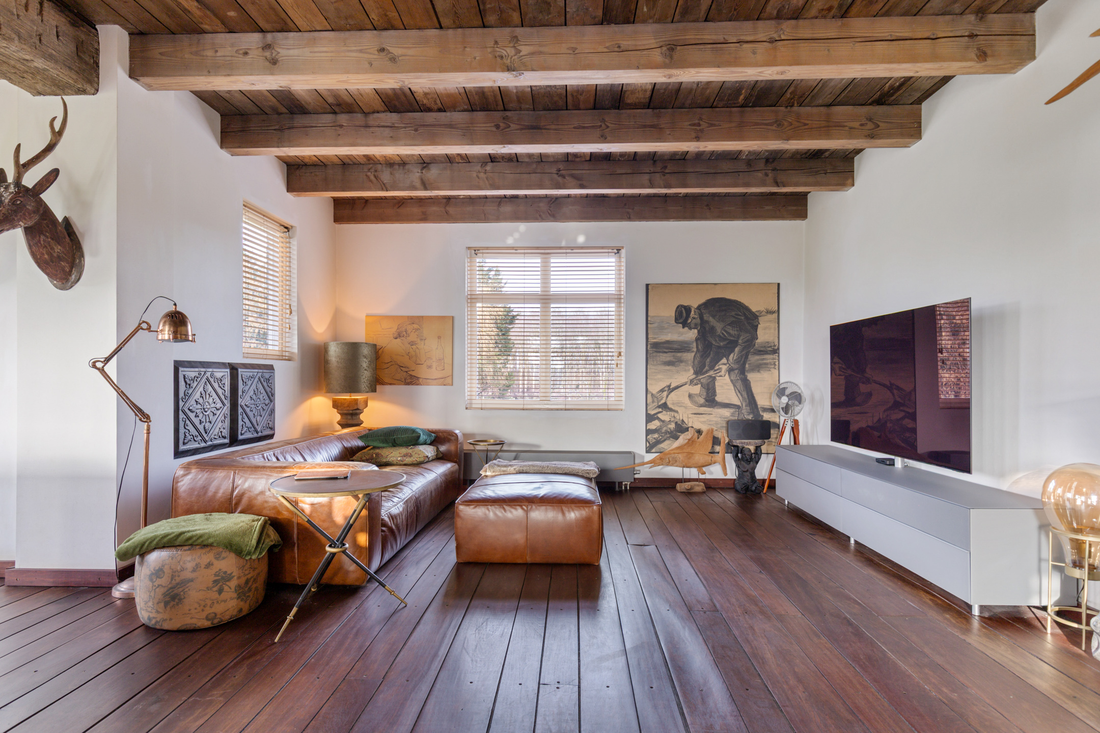 Willa została wzniesiona w charakterystycznym fryzyjskim stylu, z żółtej cegły i elewacyjnych cegieł Appelbloesem, drewnianymi ramami okien i rynnami z cynku. Przestronny salon otwiera się na zewnątrz dzięki panoramicznym widokom na krajobraz Gaasterlandu z niemal każdego okna; belki stropowe, podłogi z twardego drewna i elegancki kominek z piecem na drewno tworzą wyrafinowaną atmosferę. Nowoczesna kuchnia, wyposażona w dużą wyspę kuchenną i zabudowane sprzęty, prowadzi na taras wychodzący na południowy zachód, idealny do podziwiania widoków od świtu do zmierzchu.