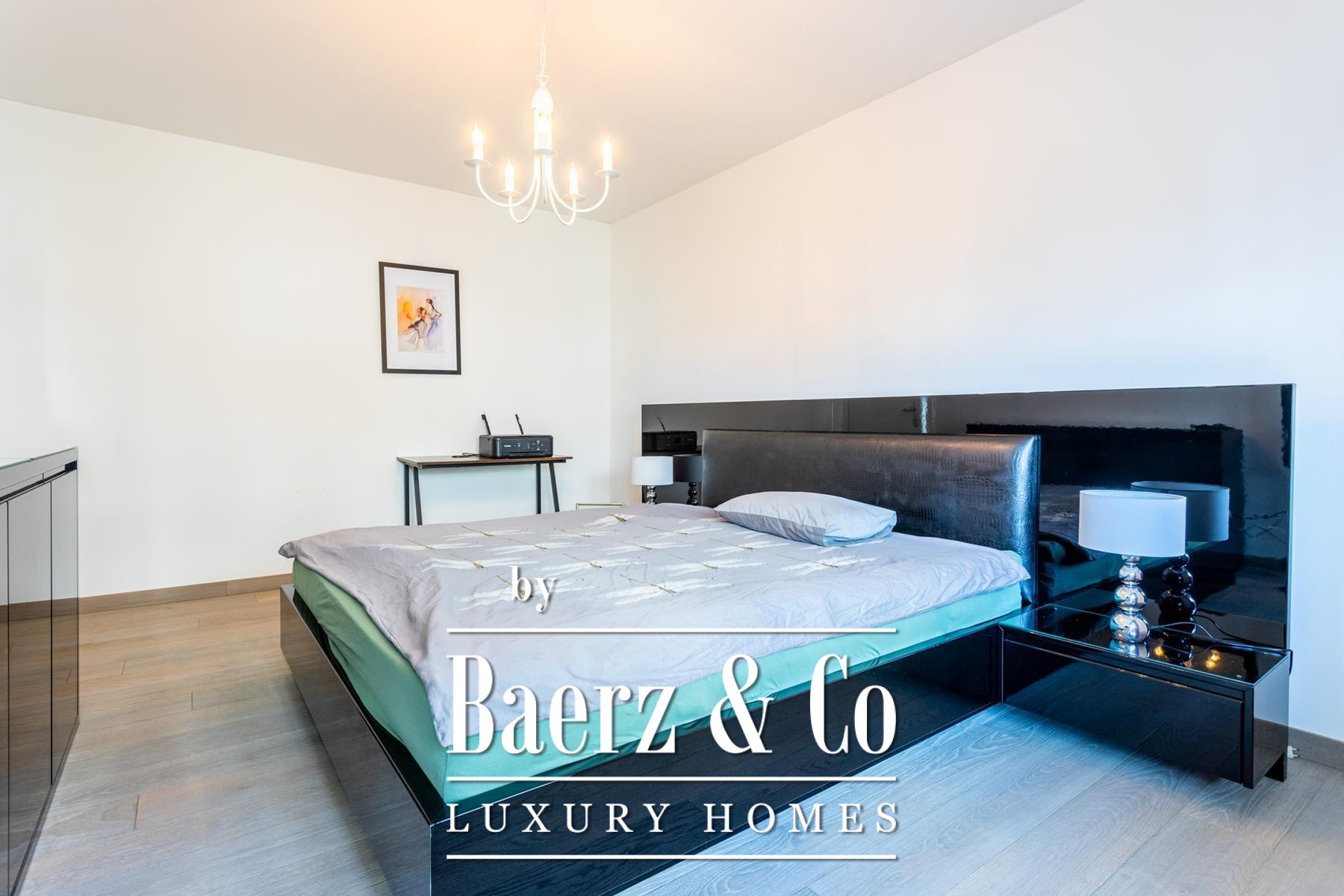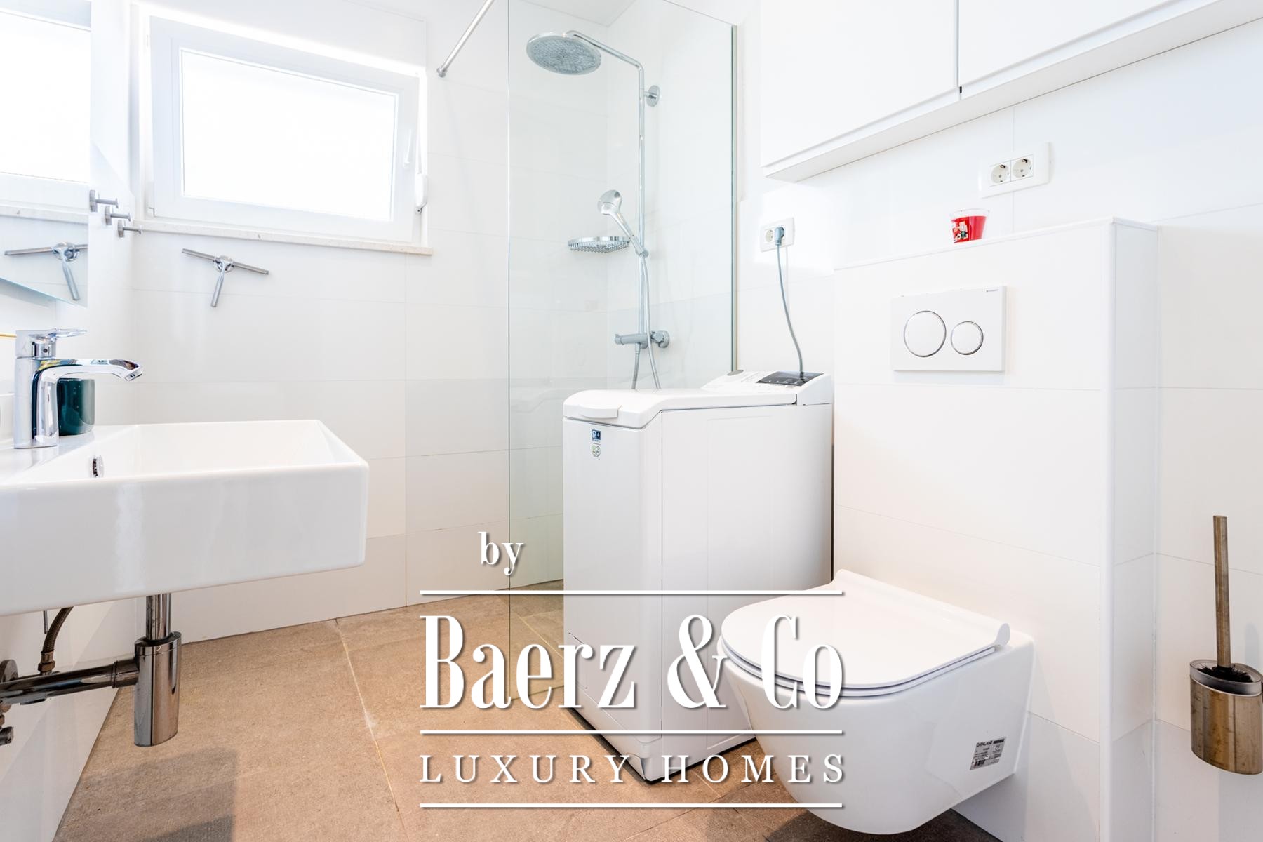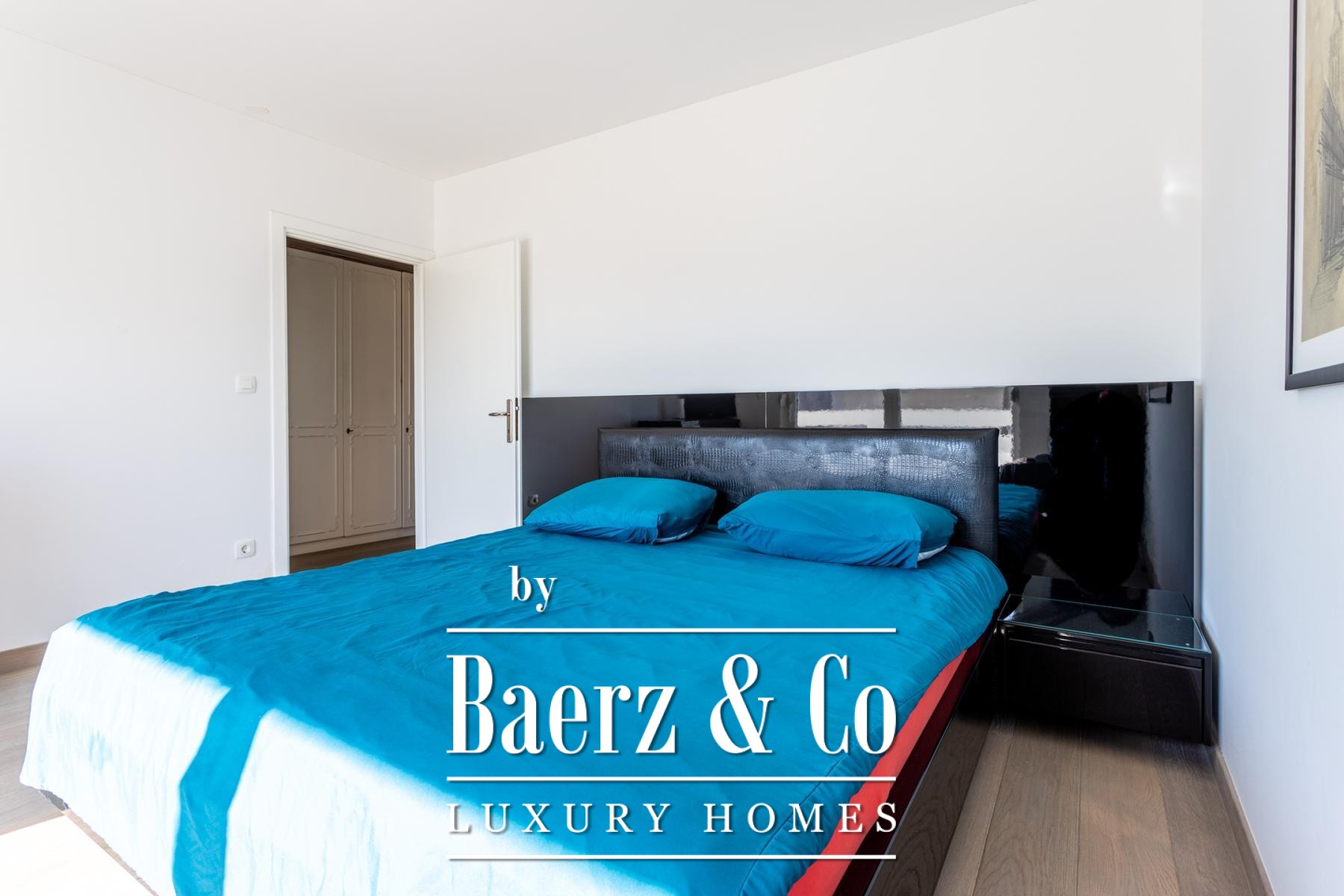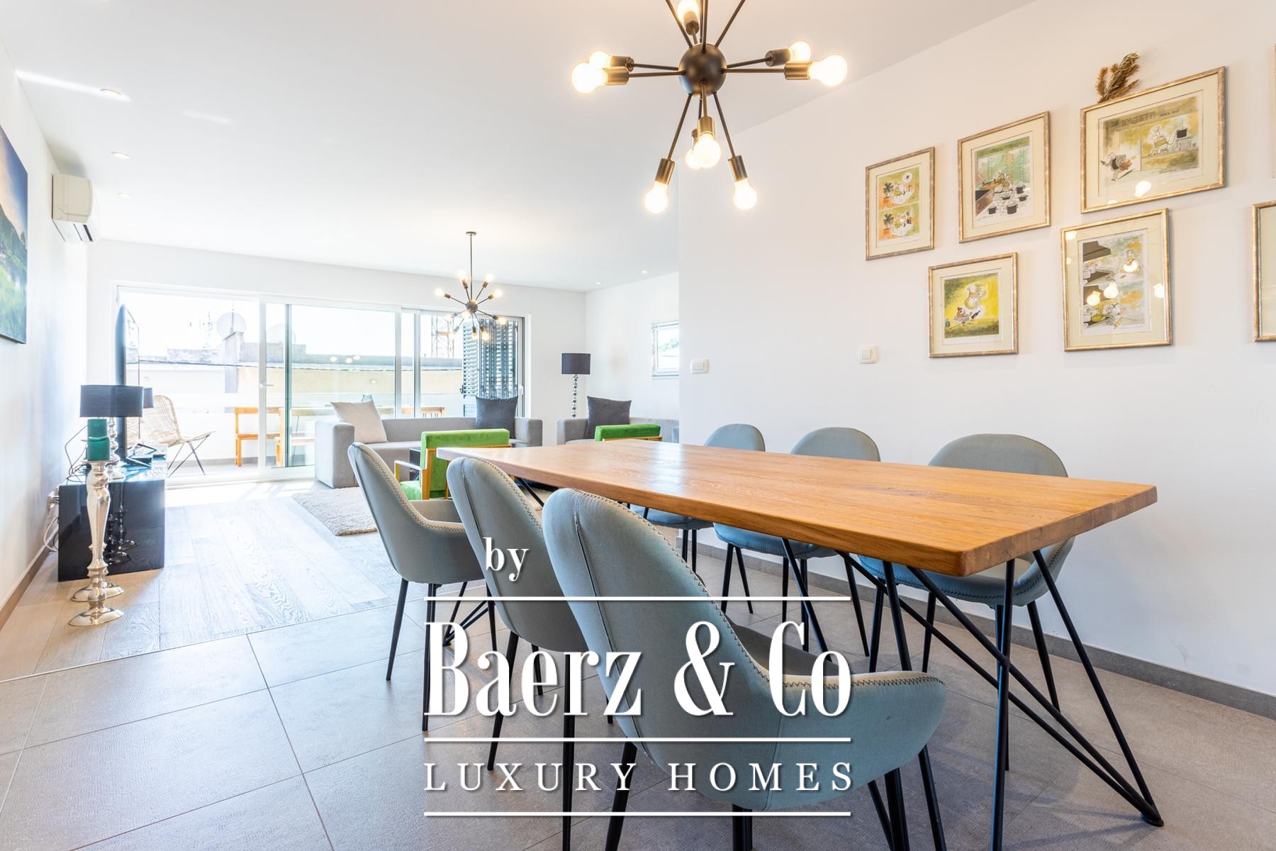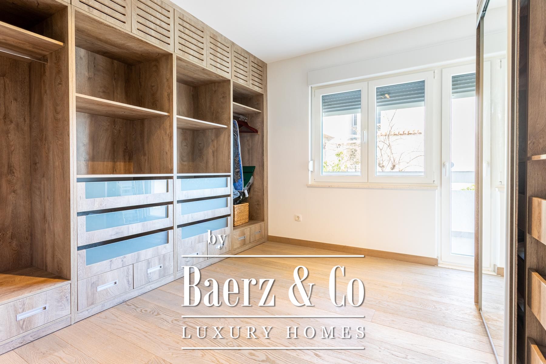 Wnętrze, w pełni odnowione i stylowo wykończone, wyróżnia się ponadczasową jakością i przemyślanym designem. Przestronne balkony oraz tarasy o łącznej powierzchni 50 m² od strony wschodniej i południowej zapewniają dużo naturalnego światła oraz częściowy widok na morze. Otwarta strefa dzienna płynnie łączy kuchnię, wyposażoną w urządzenia Miele i Bosch, jadalnię i salon, wszystkie z bezpośrednim wyjściem na taras, co sprzyja komfortowemu połączeniu życia wewnątrz i na zewnątrz.