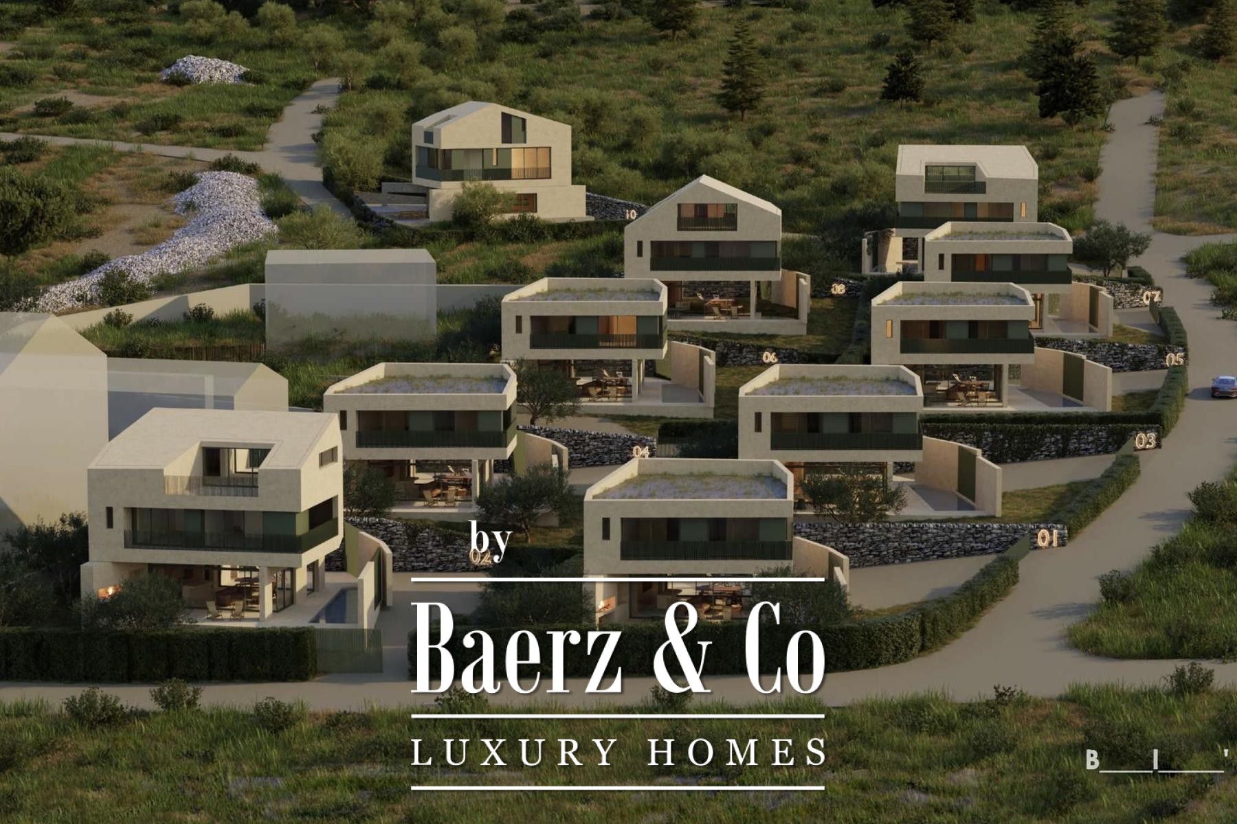Działka o powierzchni 286 m² została zaaranżowana jako śródziemnomorskie miejsce wypoczynku z zadbanym ogrodem, miejscem do grillowania, basenem i przestronnymi tarasami. Zewnętrzny parking zlokalizowany jest na obrzeżach zagospodarowanego terenu. Willa znajduje się zaledwie 220 metrów od morza w cichym miejscu, idealnym na prywatną rezydencję lub inwestycję w luksusowe zakwaterowanie turystyczne. Planowany termin zakończenia inwestycji to koniec 2027 roku. Dodatkowym atutem jest zwolnienie kupujących z podatku od czynności cywilnoprawnych ze względu na strukturę własności.