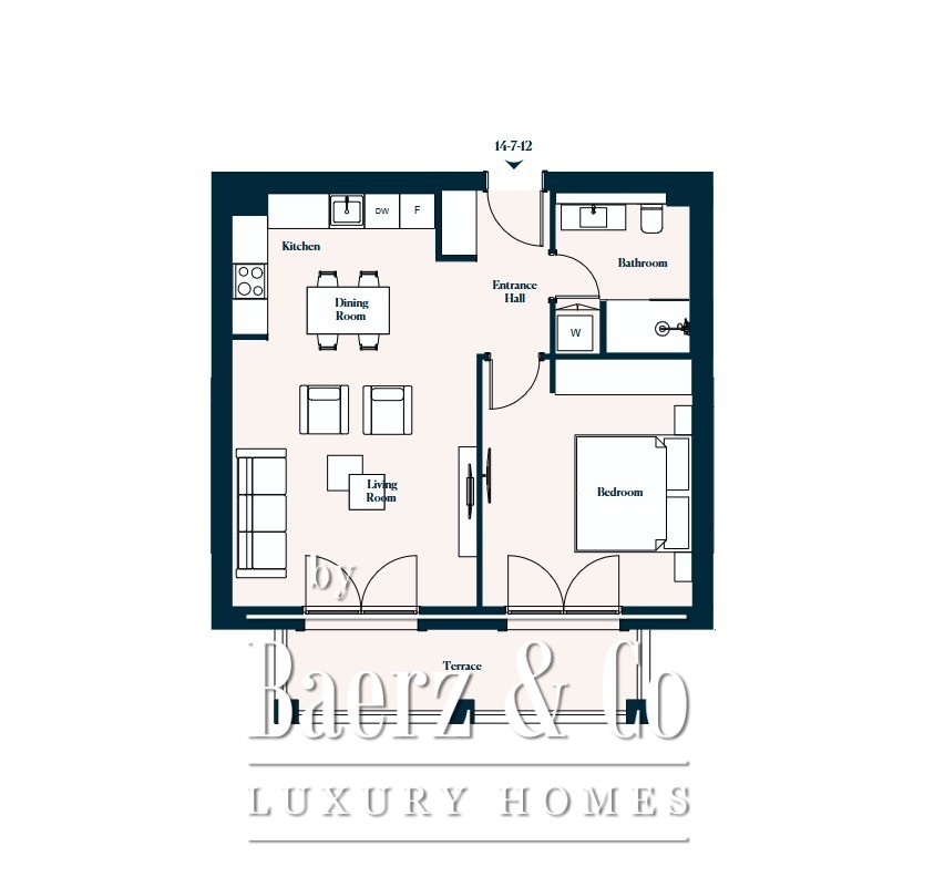 Apartament składa się ze strefy dziennej z kuchnią i jadalnią, jednej sypialni, łazienki oraz tarasu z częściowym widokiem na morze. Planowane zakończenie inwestycji przypada na grudzień 2027 roku; połączenie współczesnego designu z funkcjonalnym rozkładem pozwala na wygodę zarówno podczas wypoczynku, jak i codziennego życia.