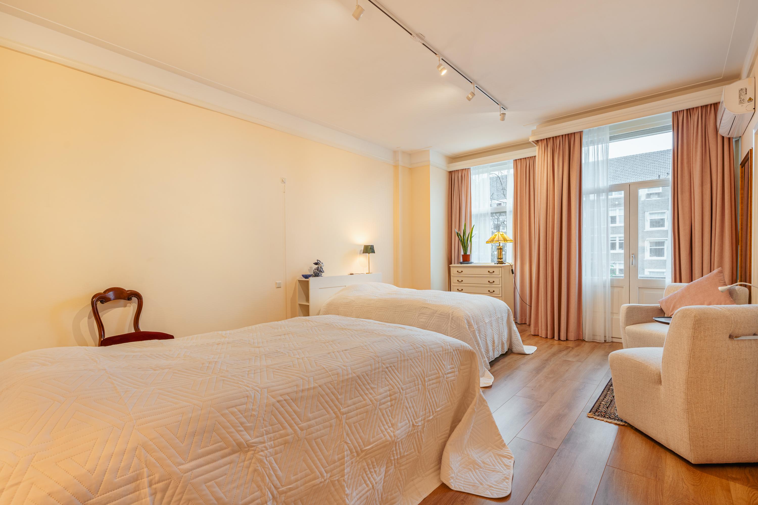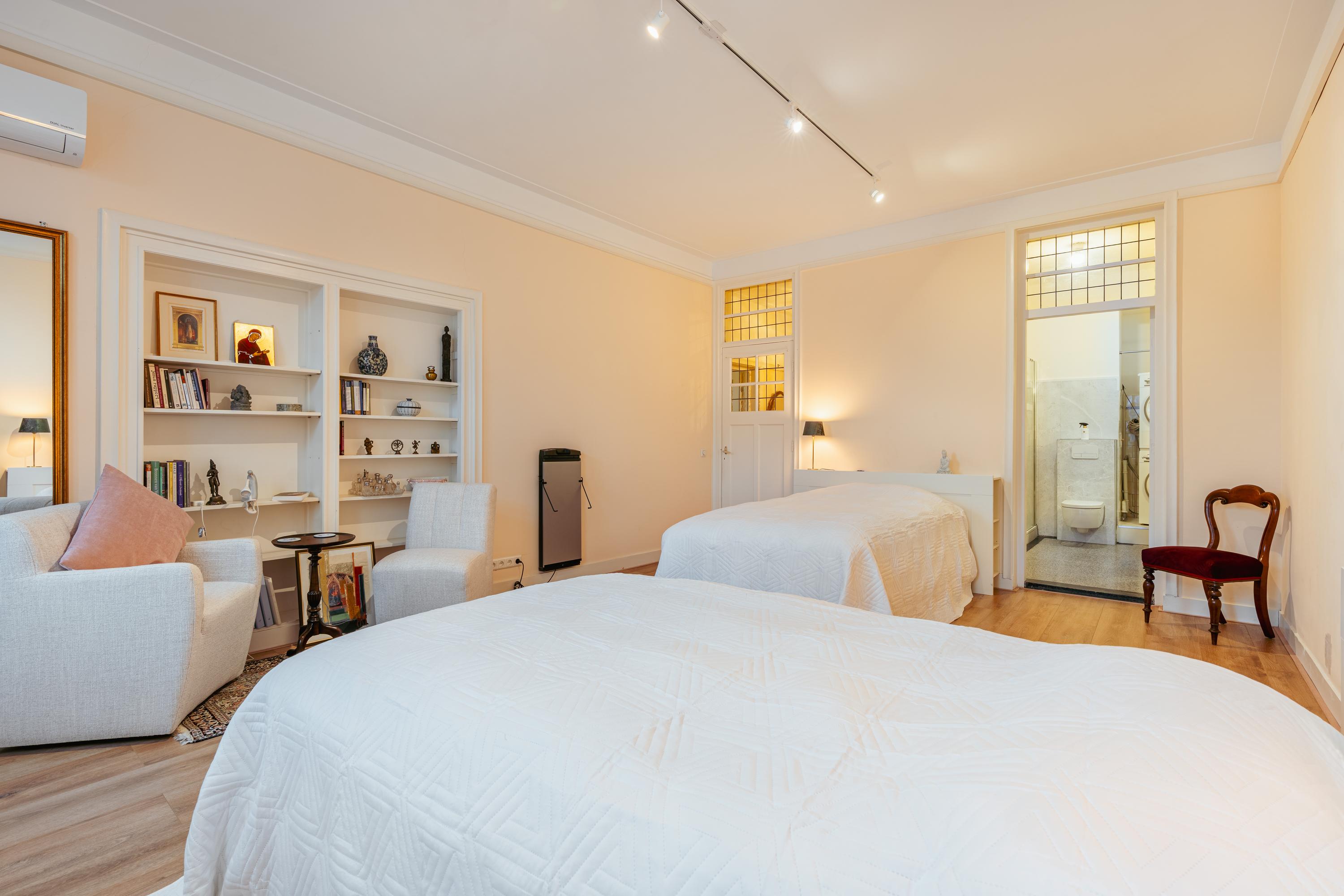 O Apartamento Amsterdam Zuid traduz o equilíbrio perfeito entre a energia vibrante da cidade e a tranquilidade de viver junto à água. Este apartamento de esquina com 120 m² situa-se nos serenos bairros Stadion e Beethoven, proporcionando vistas sobre o canal e a Minervalaan, com abundante luz natural a realçar os espaços generosos. Apresenta uma sala de estar e jantar luminosa com acesso à varanda, dois quartos, uma cozinha bem equipada com bancada em madeira e uma casa de banho cuidadosamente acabada, com duche ao nível do chão e lavatório duplo. Entre os equipamentos modernos destacam-se o elevador, vidros duplos e aquecimento central, enquanto um espaço de arrumação privativo exterior de cerca de 10 m² no quarto piso oferece espaço adicional.