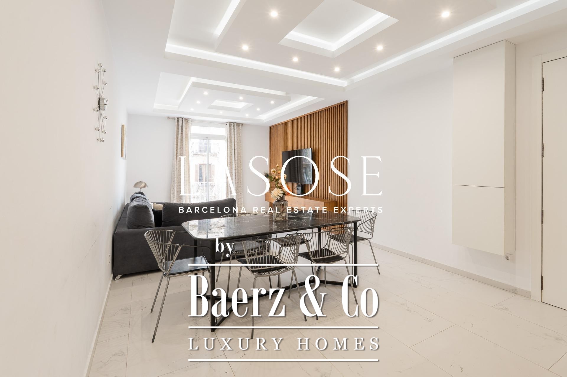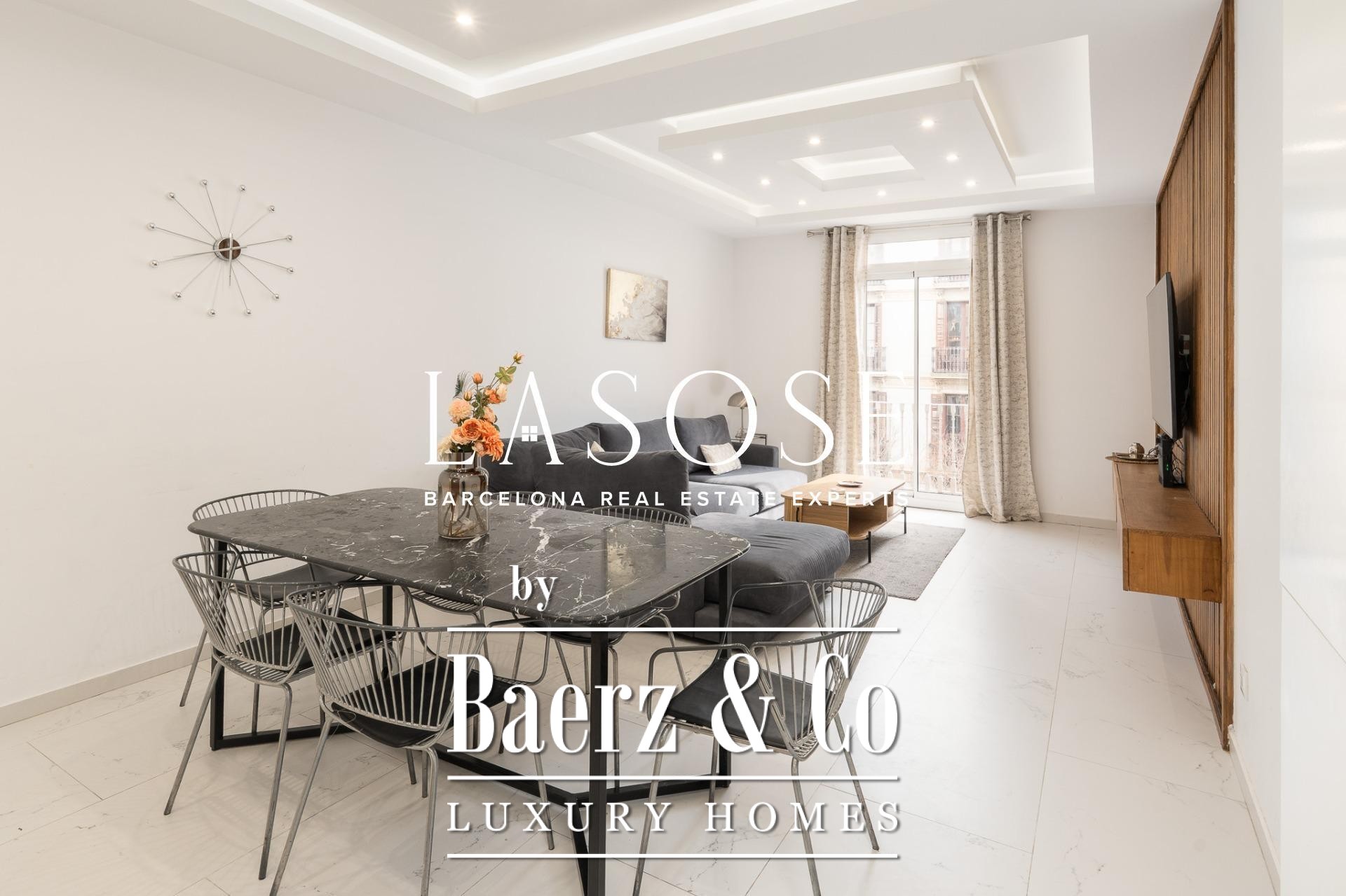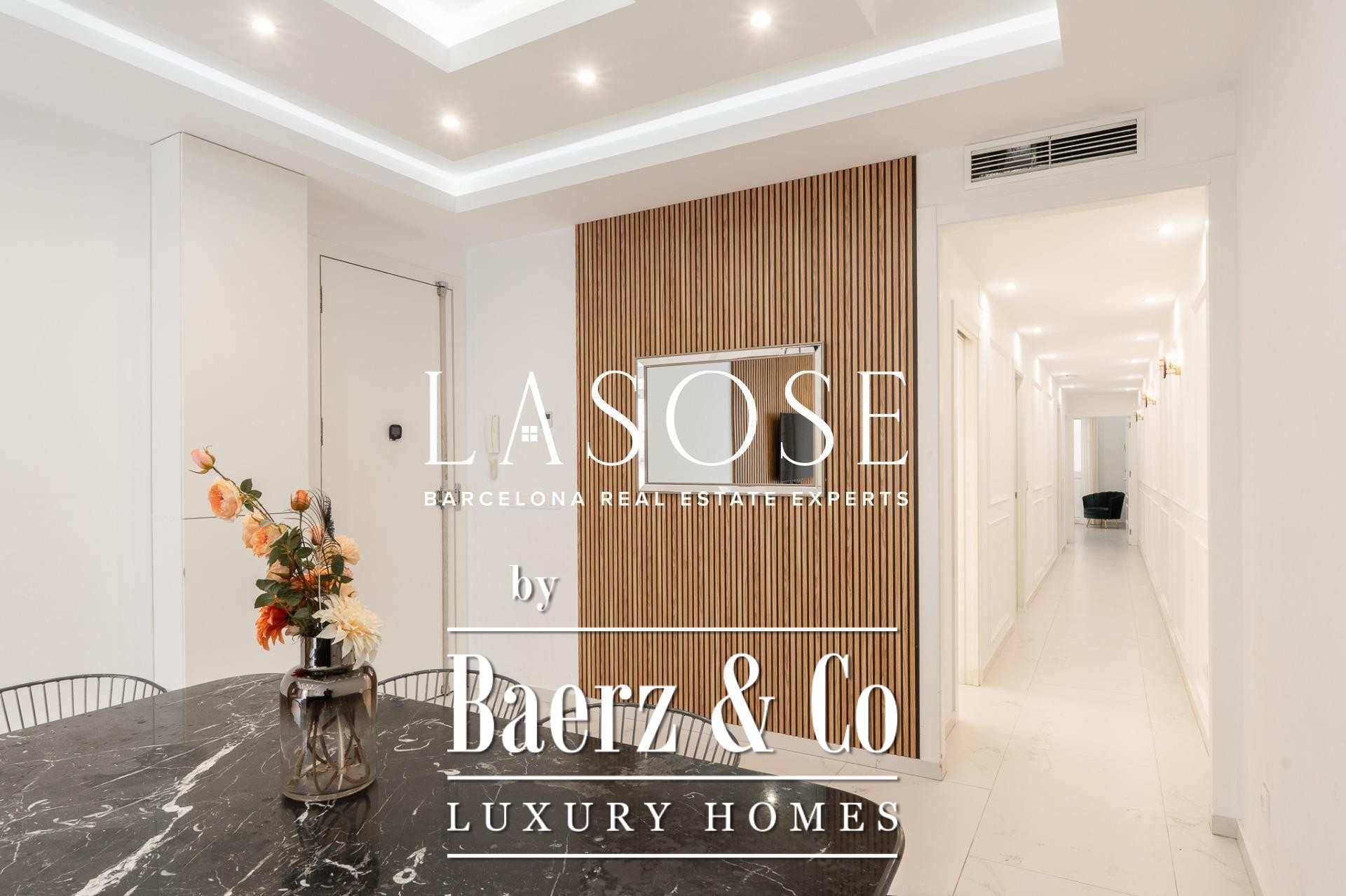 O apartamento Barcelona Eixample Esquerra destaca-se pelo endereço numa rua exclusiva no coração do Consell de Cent. Esta residência de 109 m² foi renovada em 2022, unindo design contemporâneo a execução artesanal de excelência e materiais de alta qualidade. A orientação a sul permite que a luz natural preencha todos os ambientes, valorizando as texturas refinadas e os espaços abertos.