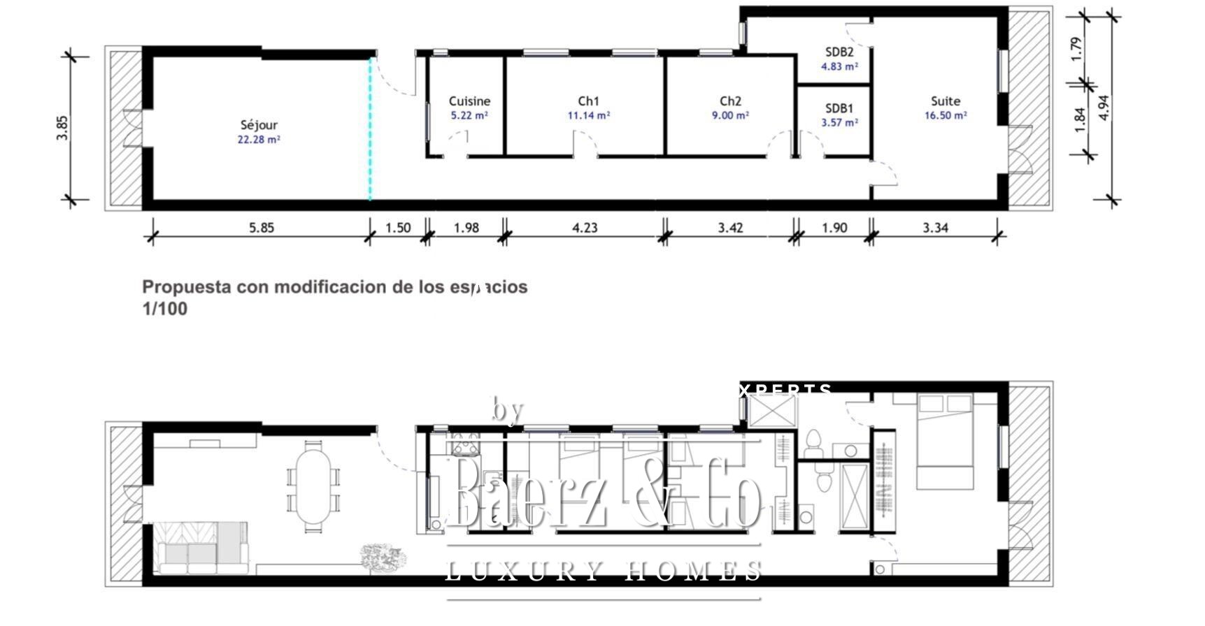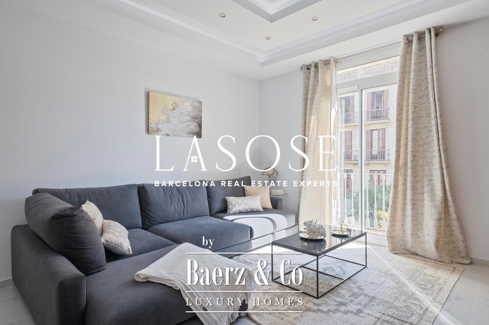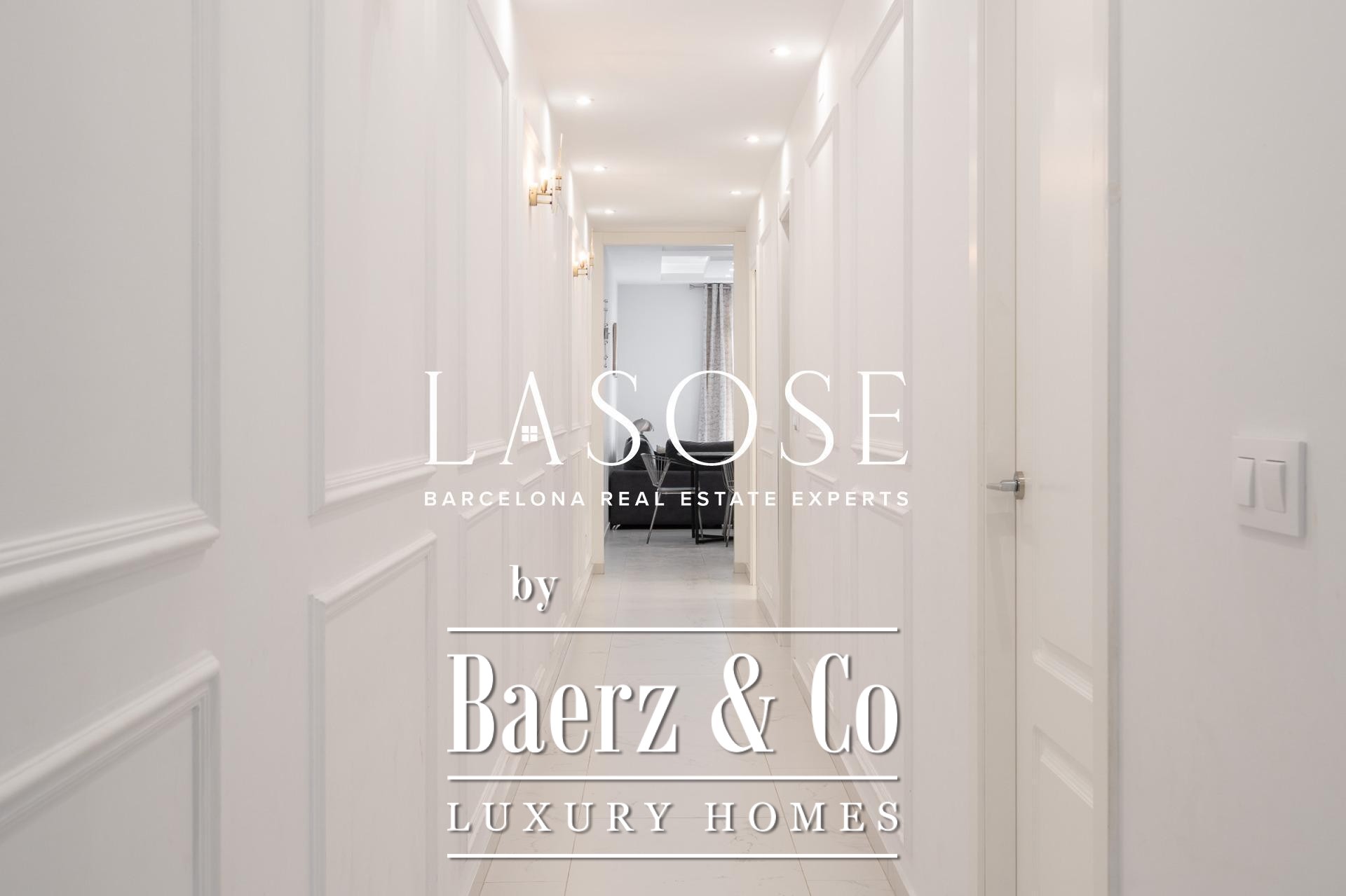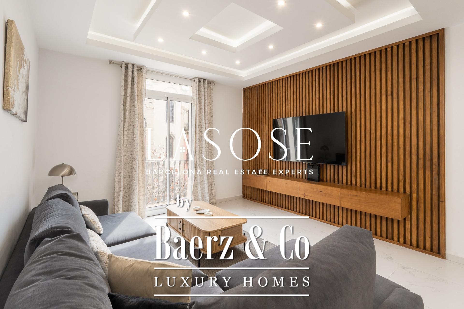 O apartamento Barcelona Eixample Esquerra destaca-se pelo endereço numa rua exclusiva no coração do Consell de Cent. Esta residência de 109 m² foi renovada em 2022, unindo design contemporâneo a execução artesanal de excelência e materiais de alta qualidade. A orientação a sul permite que a luz natural preencha todos os ambientes, valorizando as texturas refinadas e os espaços abertos.