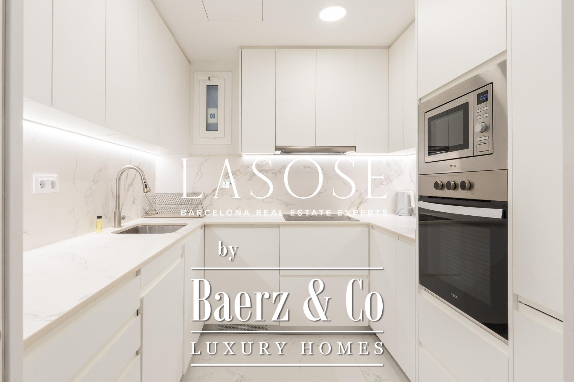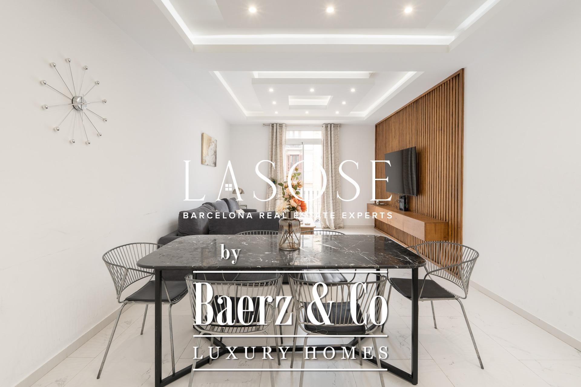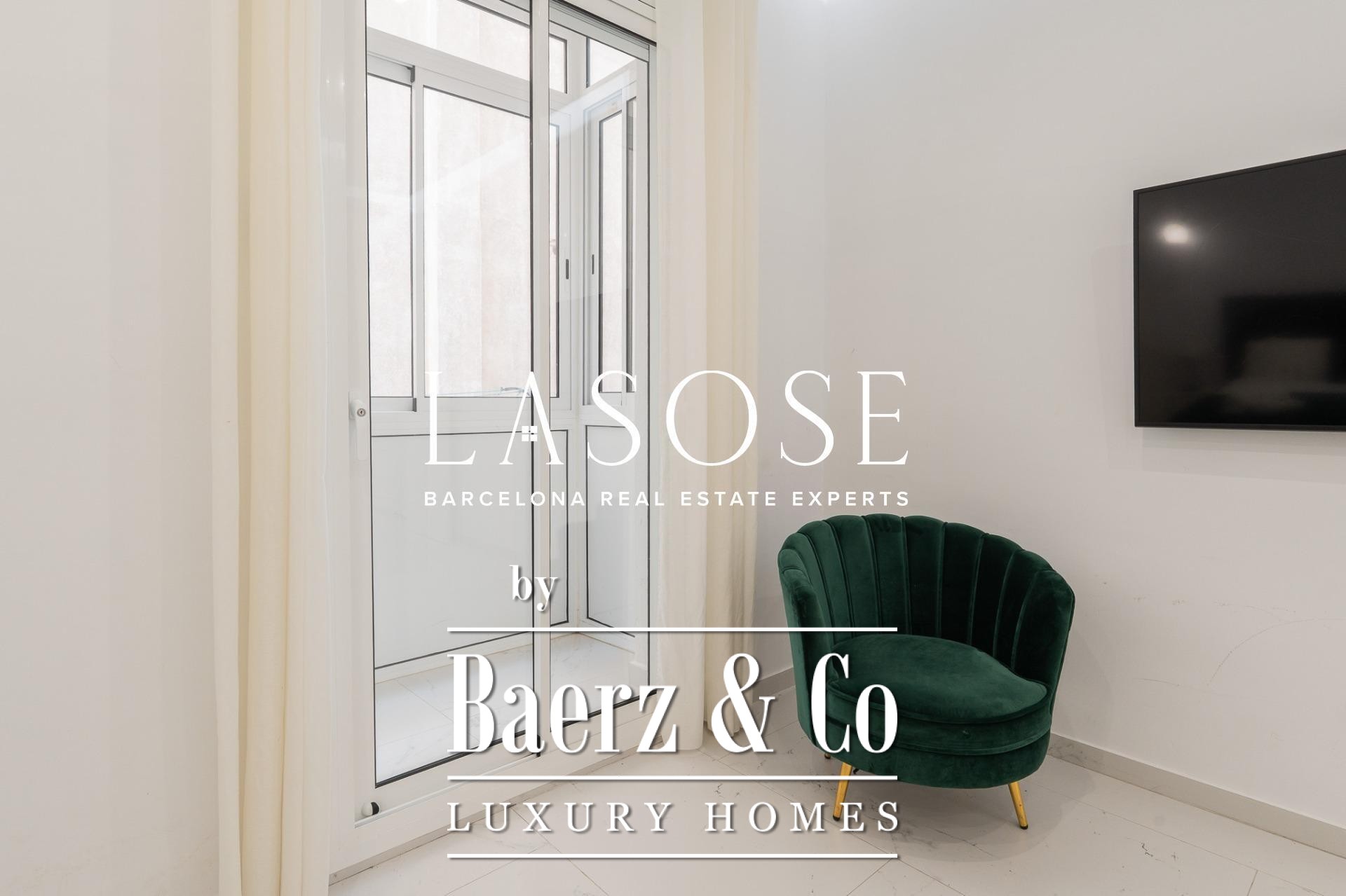 Ar condicionado por condutas para aquecimento e arrefecimento, caixilharia em alumínio, roupeiros embutidos e atenção à eficiência energética evidenciam o carácter contemporâneo da propriedade. O apartamento é oferecido totalmente mobilado. No exterior, Rambla Catalunya e Passeig de Gràcia estão a poucos metros, com restaurantes conceituados, boutiques e acesso facilitado a transportes, colocando o ritmo vibrante de Barcelona à sua porta—uma casa pronta a habitar no Eixample Esquerra para quem valoriza equilíbrio e comodidade urbana.