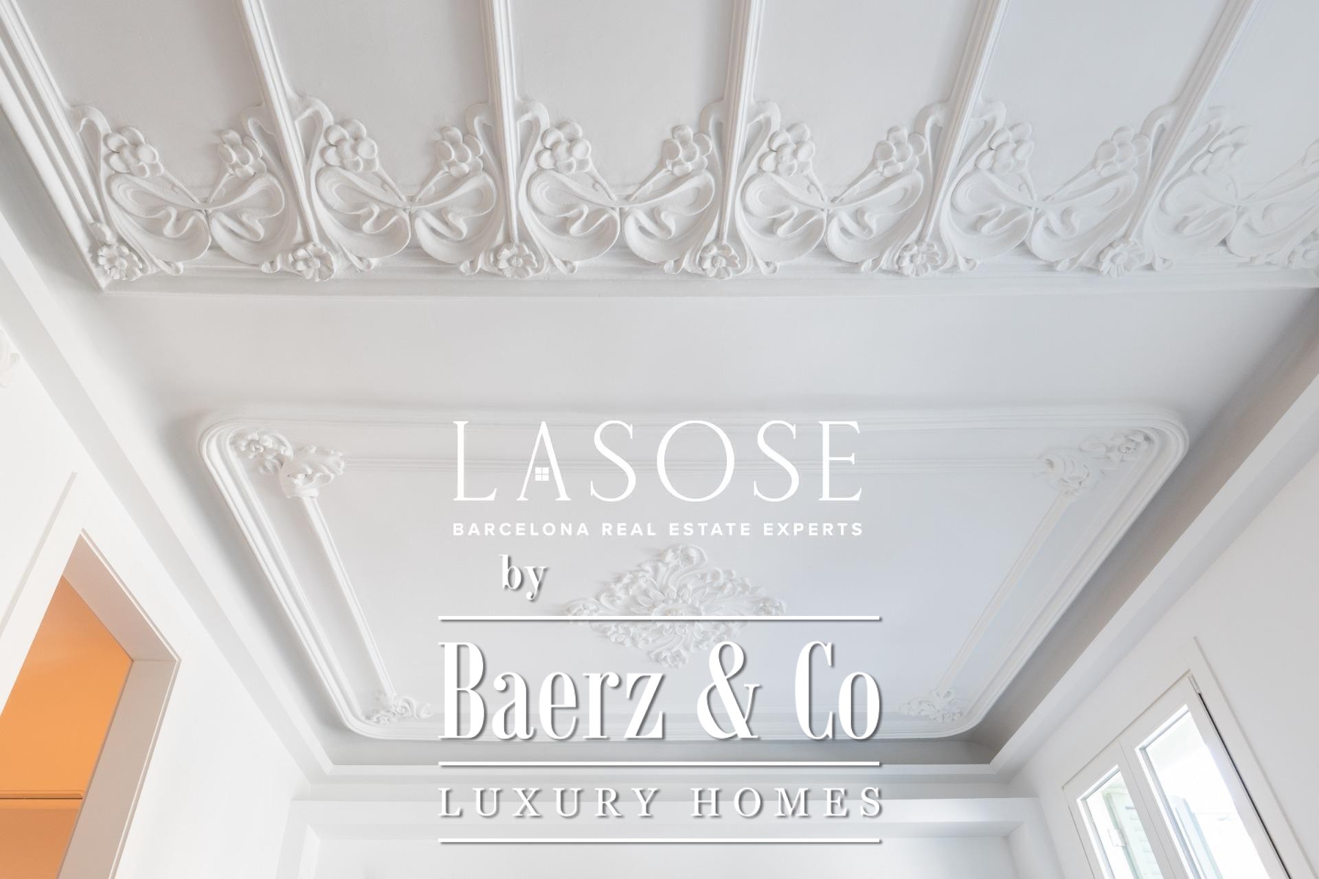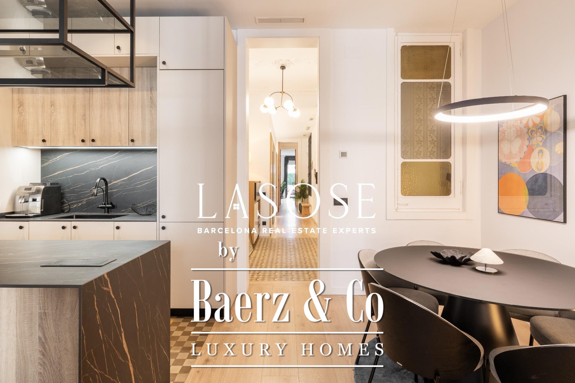O apartamento Barcelona Eixample encontra-se numa posição tranquila no piso Principal de um edifício modernista protegido, perto do Passeig de Sant Joan. Concluída há apenas dois anos, a renovação mais recente funde o luxo contemporâneo com o charme original do edifício, destacando pavimentos hidráulicos em mosaico Nolla, tetos altos com molduras decorativas e detalhes arquitetónicos sofisticados por toda a parte.