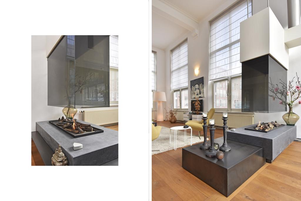 Het appartement is gelegen op de eerste verdieping en heeft twee woonlagen in een monumentaal complex dat is voorzien van een lift. Het appartement combineert de sfeer van een loft met de ruimte van een herenhuis.