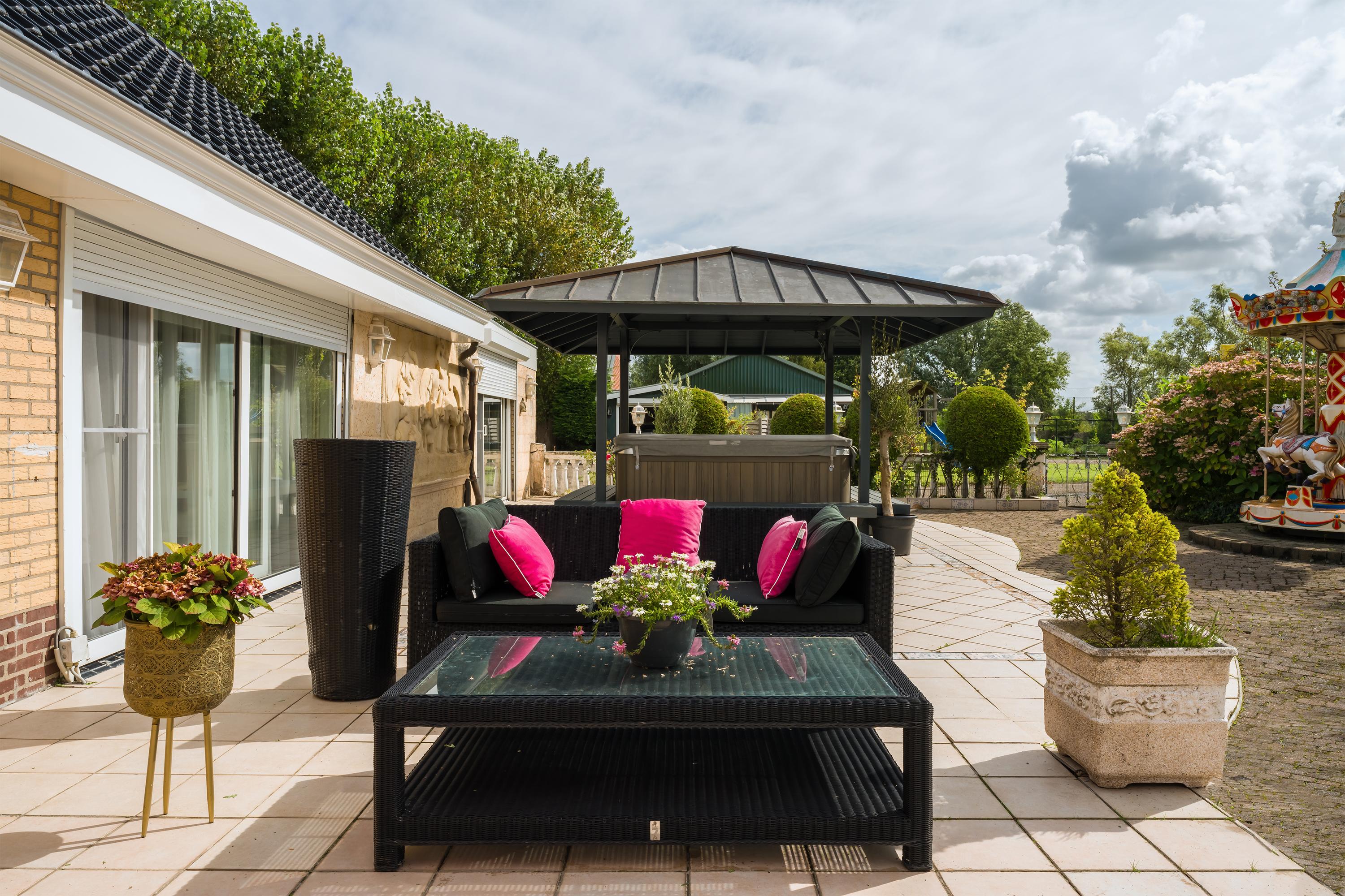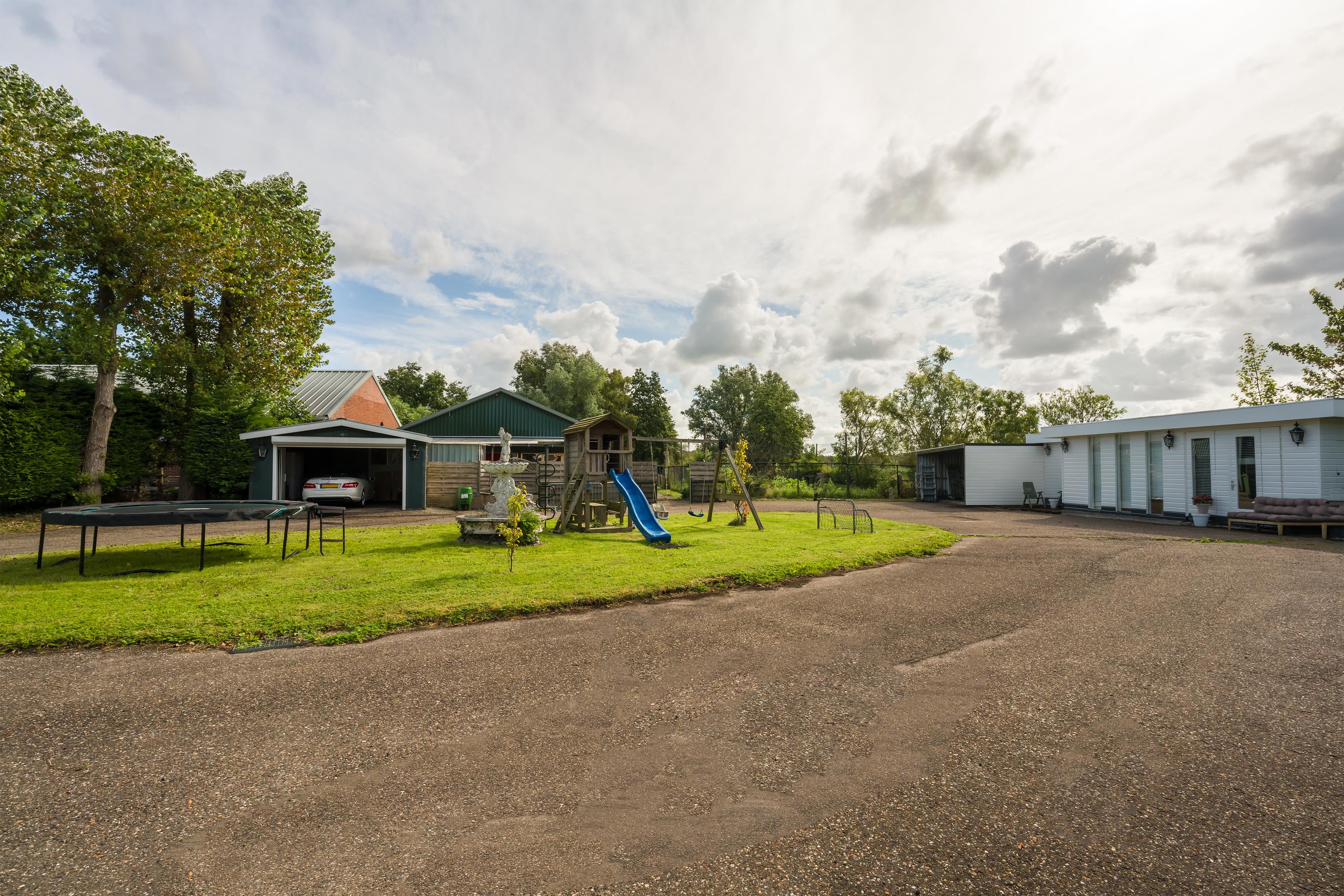 Moradia isolada semi-bungalow em Den Ilp representa o viver rural em privacidade, com elevada utilidade e presença requintada. A propriedade oferece 262 m² de área habitacional em 4.765 m² de terreno privativo, confinando diretamente com a reserva Natura 2000 Ilperveld e um canal de água aberto. Este domínio no pólder é marcado por um portão de ferro branco e uma via asfaltada ladeada por árvores, revelando um bungalow de inspiração americana, uma ampla casa de hóspedes e um espaço comercial climatizado de 368 m². O pátio circular conduz à garagem e aos recintos para animais, evocando uma atmosfera de grandiosidade discreta e privacidade.
