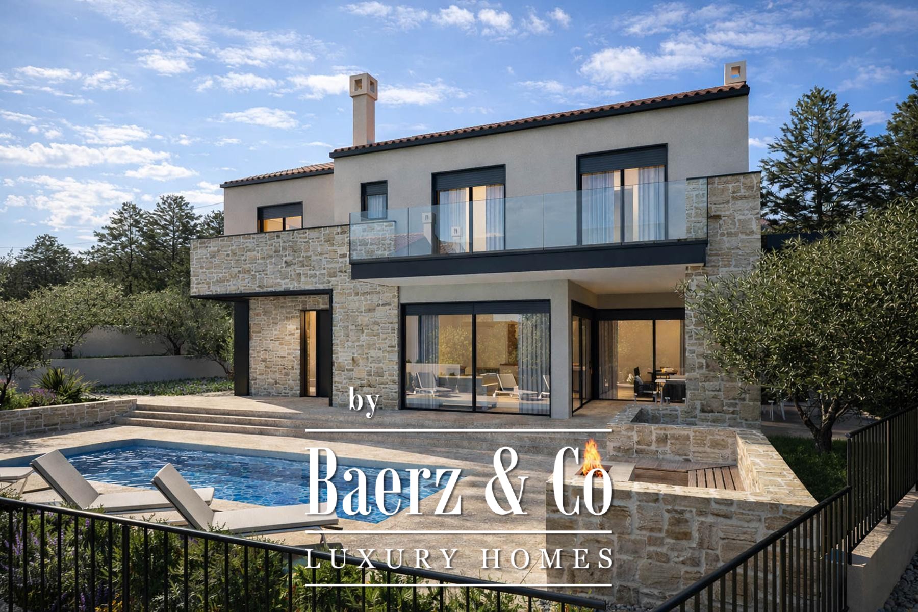 Os acabamentos de alta qualidade são evidentes em toda a casa, com caixilharias em alumínio Wicona, vidros temperados triplos, pavimento cerâmico Mariner de grande formato e louças sanitárias Hansgrohe. O pavimento radiante, o sistema de climatização multi-split e o mobiliário de design completo garantem prontidão imediata para habitação ou arrendamento. Esta moradia une harmoniosamente design, durabilidade e o cenário adriático.