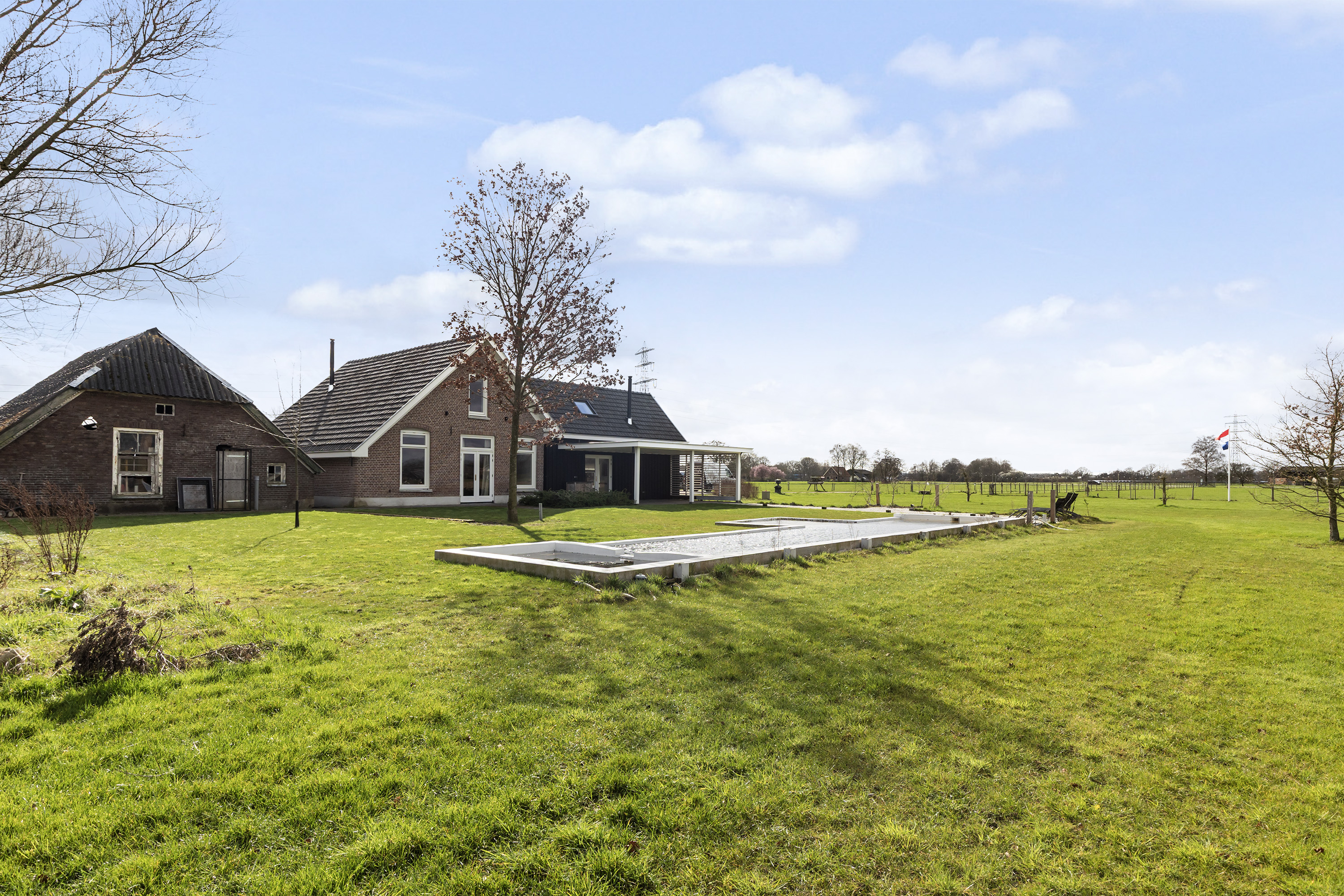 A propriedade rural Klarenbeek encontra-se silenciosamente posicionada à margem de uma serena paisagem rural, oferecendo 2 500 m² de terreno privado dentro de uma exclusiva herdade de 4 hectares. Esta casa de campo completamente reconstruída, concluída em 2021, atinge um raro equilíbrio entre vida ao ar livre, conforto e sustentabilidade. Vistas amplas e abertas estendem-se pelo verde maduro, ampliando a sensação de espaço, enquanto o cuidado profissional da herdade garante manutenção mínima.