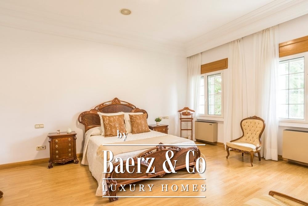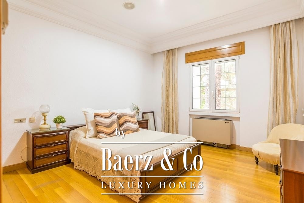 No exterior, árvores adultas e jardins sucessivos envolvem a grande piscina e um amplo terraço de lazer, equipado com churrasqueira e forno a lenha. Os entusiastas de desporto apreciarão os campos de ténis e frontão profissionais, enquanto um apartamento independente para hóspedes e garagem espaçosa conferem maior distinção. Sistemas de segurança, climatização e arrumação reforçam a preparação da villa tanto para o quotidiano familiar como para investimento de elevado valor. Esta é uma villa de luxo à venda em Madrid, onde privacidade, prestígio e conectividade se encontram.