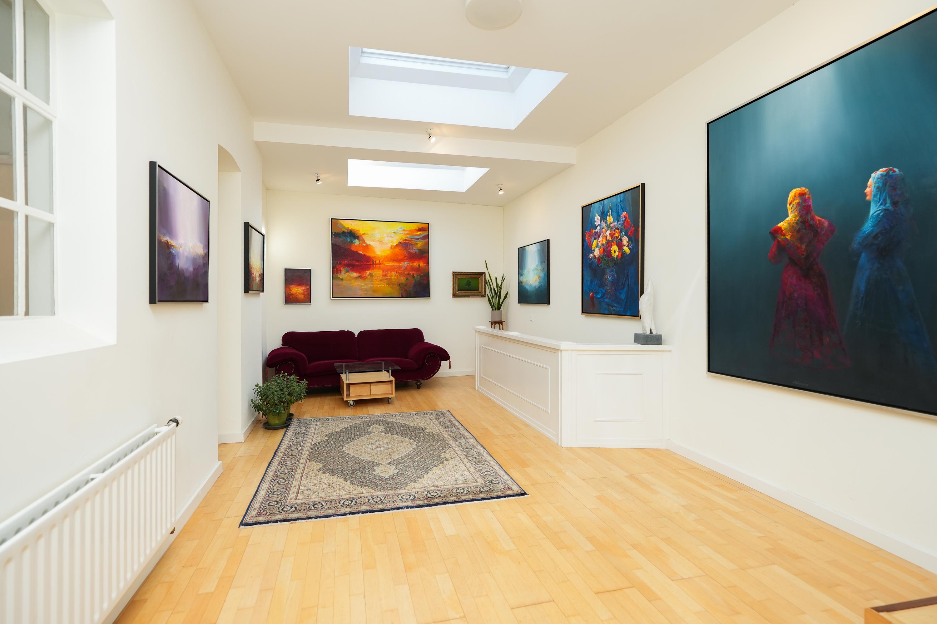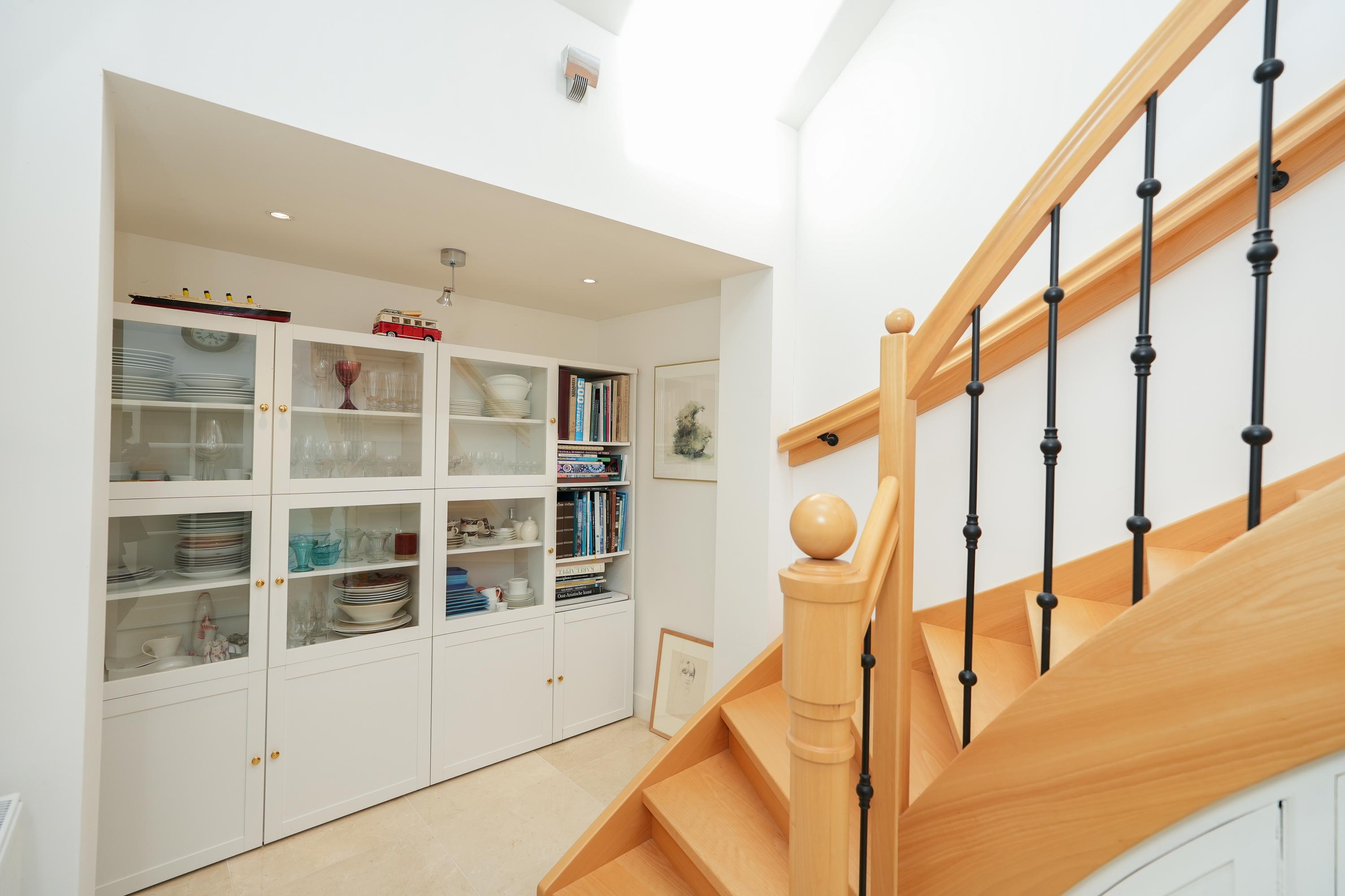 Ao entrar pelo impressionante hall, desvendam-se elegantes ligações entre a cozinha com zona de refeições, a sala de estar e uma biblioteca privada. A galeria, acessível tanto pela cozinha como por uma entrada independente, conduz ao atelier repleto de luz natural, tornando-se um espaço de trabalho tranquilo com panorâmica rural. No piso superior, um largo patamar conduz ao quarto principal, uma casa de banho confortável, um segundo quarto mais pequeno e um prático arrumo no sótão. No total, são 287 m² de área habitacional em lote de 2.445 m².