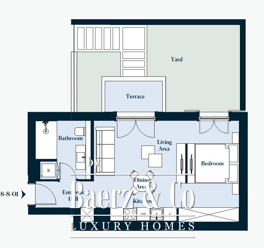 Este apartamento tem 44 m² e uma varanda de 23 m², incluindo sala com cama, cozinha, zona de refeições e casa de banho. A conclusão está prevista para dezembro de 2027. Os residentes desfrutam de acesso direto aos restaurantes gourmet do resort, a uma seleção de boutiques e supermercados, a elegantes beach clubs e a instalações de bem-estar que respeitam padrões internacionais.