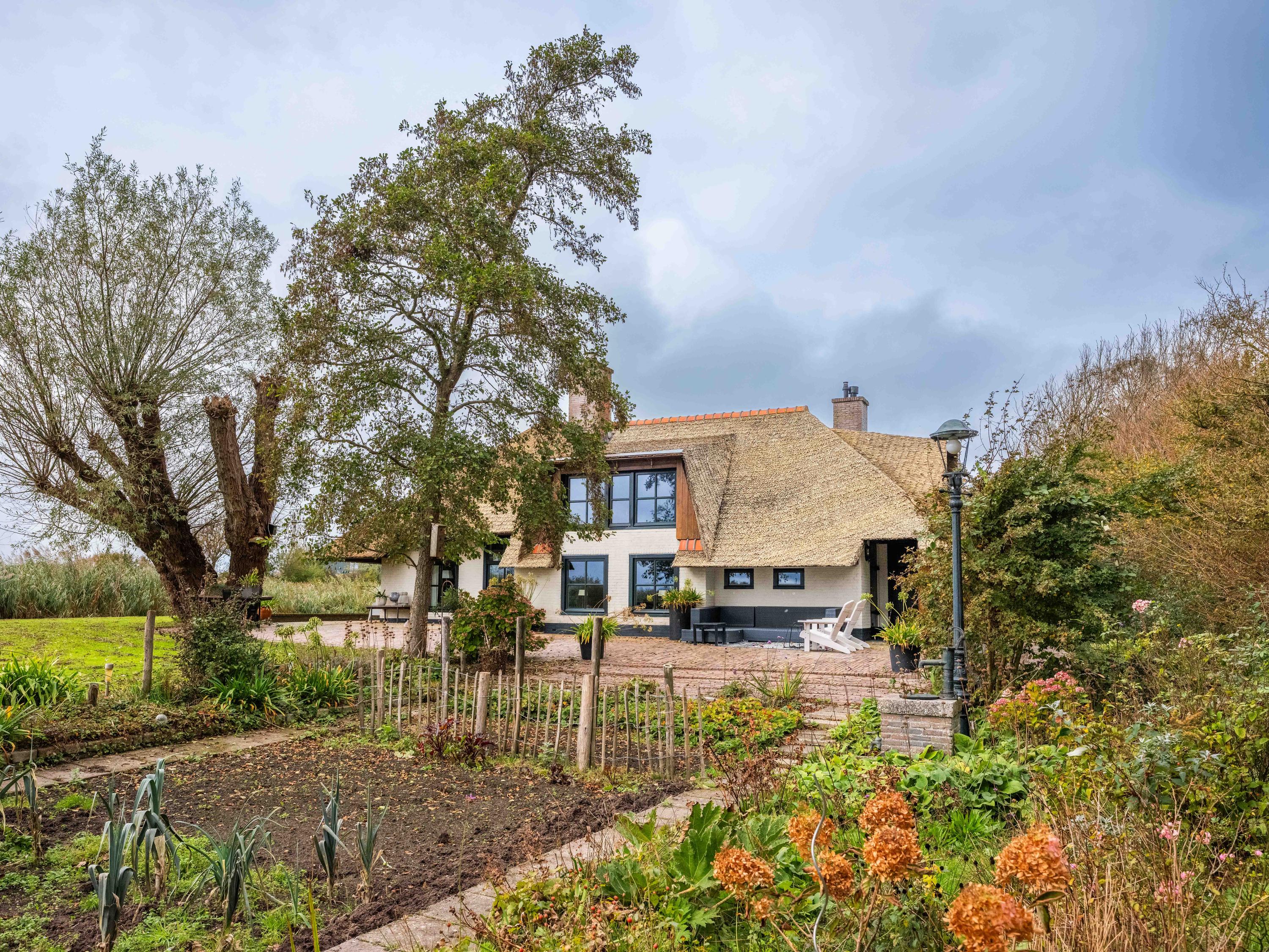 O jardim paisagístico engloba uma casa de hóspedes independente com salamandra, cozinha aberta, quarto e duche privativo, oferecendo versatilidade para receber ou retirar-se em privacidade. Vários terraços, árvores de fruto e uma doca privada convidam à contemplação serena, completando a experiência singular desta villa Warmenhuizen—um endereço dedicado a quem procura serenidade sem concessões.