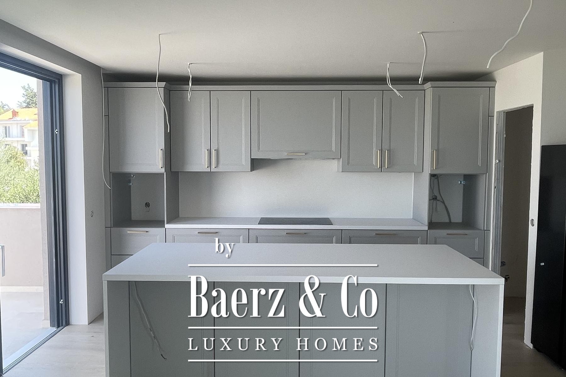 Esta moradia em Zadar recebe os convidados através de um hall que conduz a três quartos no piso térreo, cada um com casa de banho privativa. A distribuição contempla loggia, terraço coberto para manhãs tranquilas, lavandaria e um espaço multiusos apto para bem-estar, home office ou ginásio. No primeiro andar, o espaço social banhado de luz integra-se com cozinha moderna e sala de jantar. A suíte principal possui dois closets walk-in e casa de banho privativa, além de instalações para hóspedes e um grande terraço com vista desafogada para o horizonte.