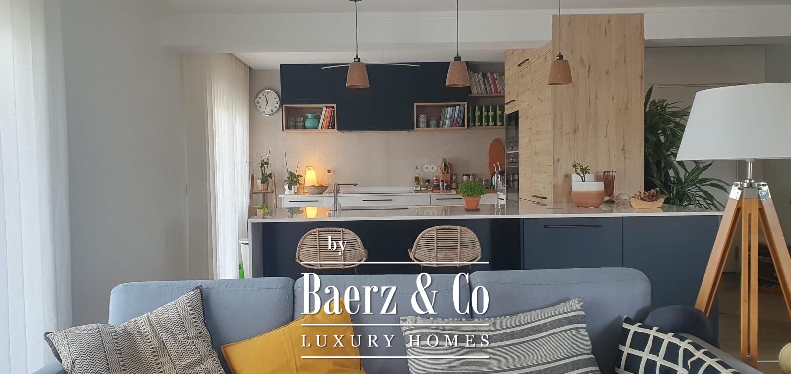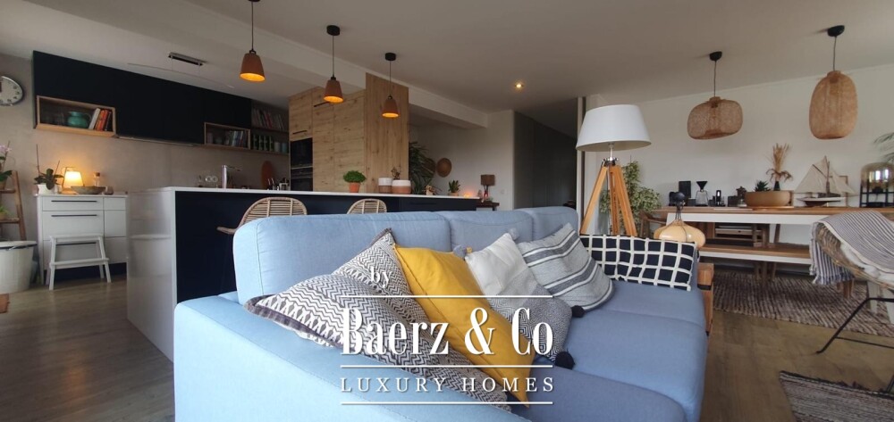Гостиная и зона столовой органично соединены с немецкой кухней Küchen, оборудованной столешницами из силестона и островом с 25-летней гарантией. Техника Siemens iQ700 A+++, интегрированные стеклопакеты с превосходной тепло- и звукоизоляцией, а также электрическая система Siza Vieira гарантируют высокий уровень качества. Открытая терраса площадью 30 м² расширяет пространство для жизни, предлагая место для растений и отдыхающими вечерами с видом на море.