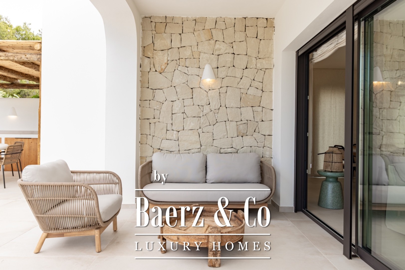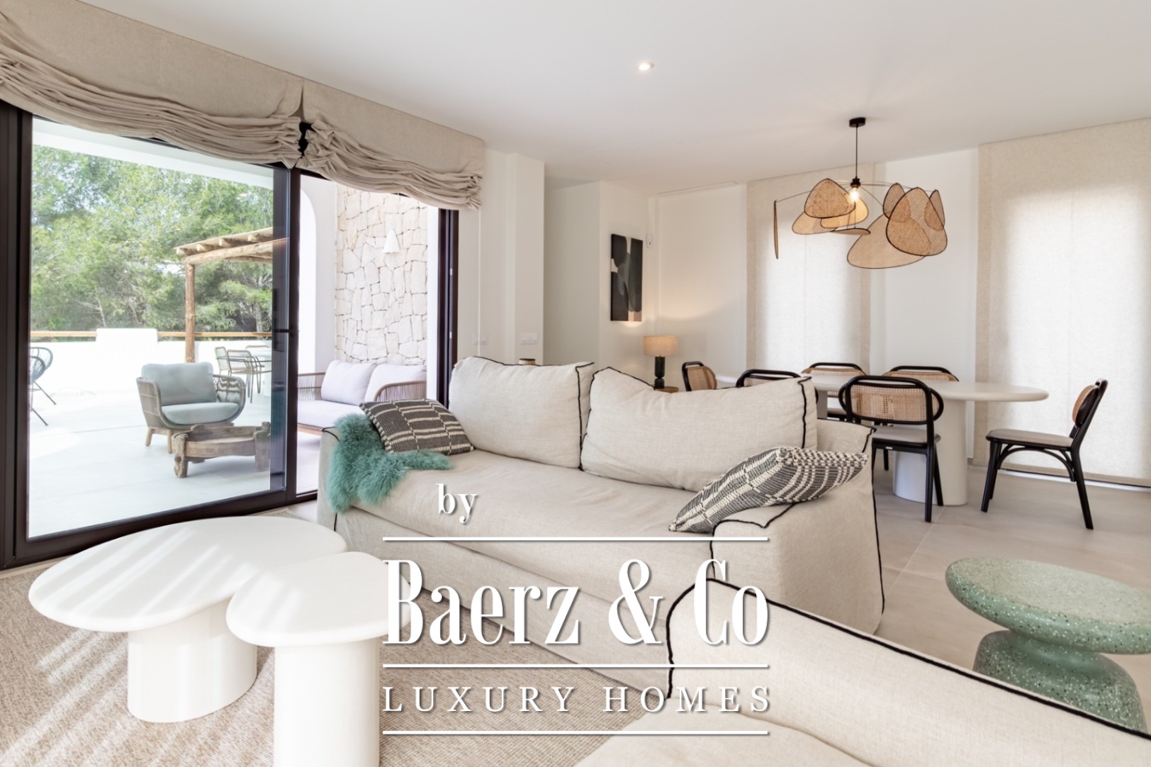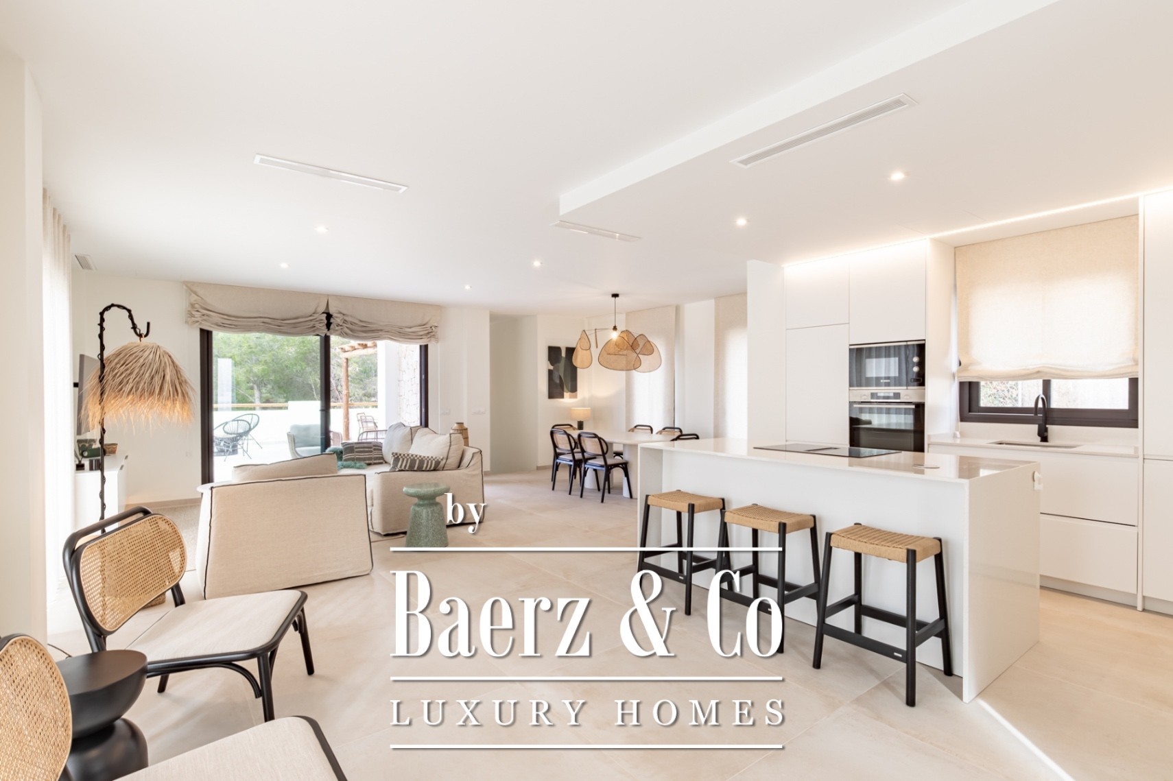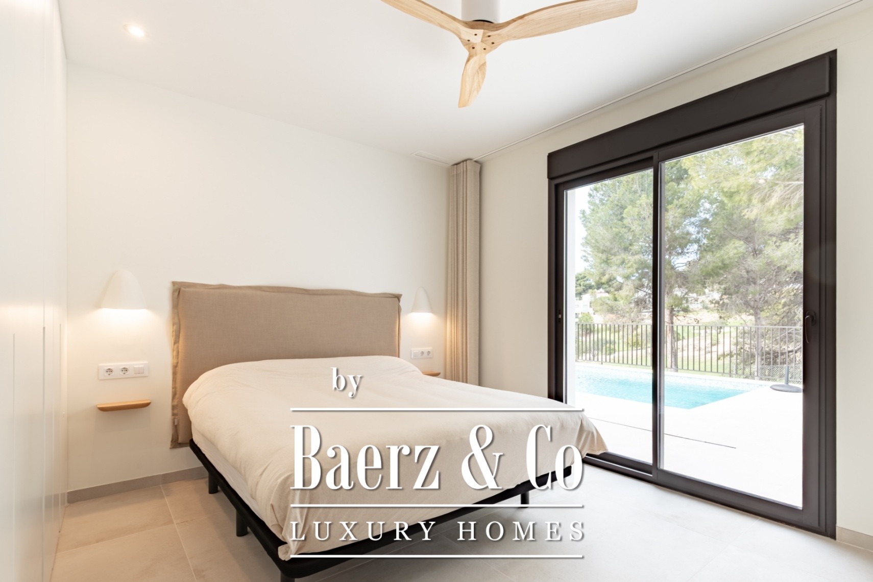 Located in the highly sought-after San Jaime neighborhood (Benissa Costa), quietly situated and overlooking the Ifach Golf Club, you'll find this stunning newly built (2025) detached villa in Ibiza style. The property has been finished with attention to detail, with natural stone and warm wooden elements providing a timeless Mediterranean look. An ideal combination of tranquility, comfort, and proximity to all amenities.