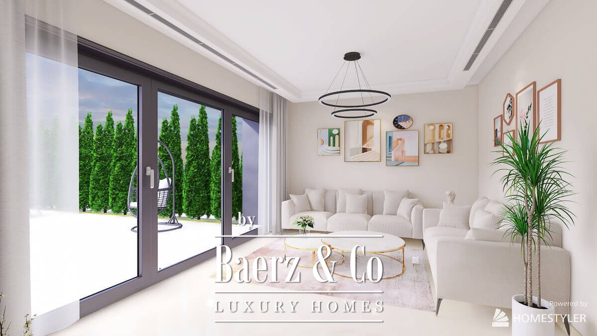 Каждый из четырехспальных домов продуман до мелочей и предлагает выбор между классической или современной отделкой интерьеров. Высокие потолки (3 метра), панорамные окна (2,5 метра) и открытые планировки наполняют просторные гостиные естественным светом. Все спальни располагают индивидуальными ванными комнатами и встроенными шкафами, главная спальня – с гардеробной. Кухни дизайнерского исполнения полностью оборудованы техникой, а гостиные имеют выход на террасы с видом на море. На уровне -1 предусмотрено пространство свободного назначения, подходящее как для семейной комнаты с мини-кухней, так и для дополнительных спален, все с прямым доступом к частному двору и бассейну площадью 35 м², скрытому за лиственной оградой для полной приватности.