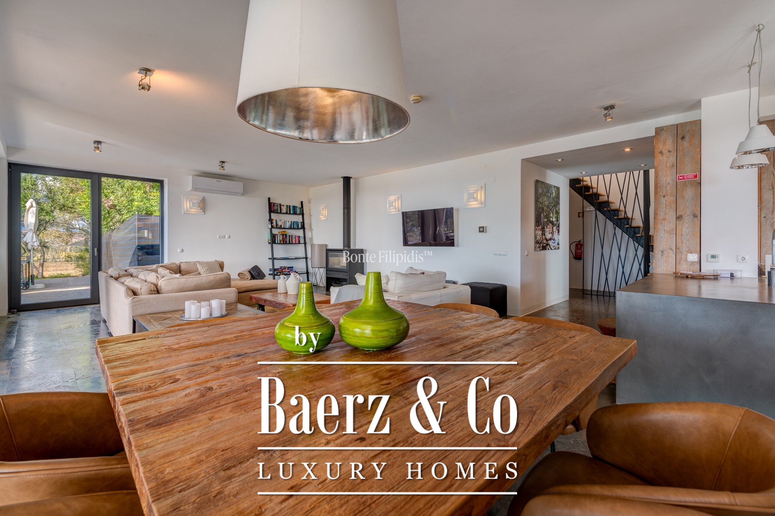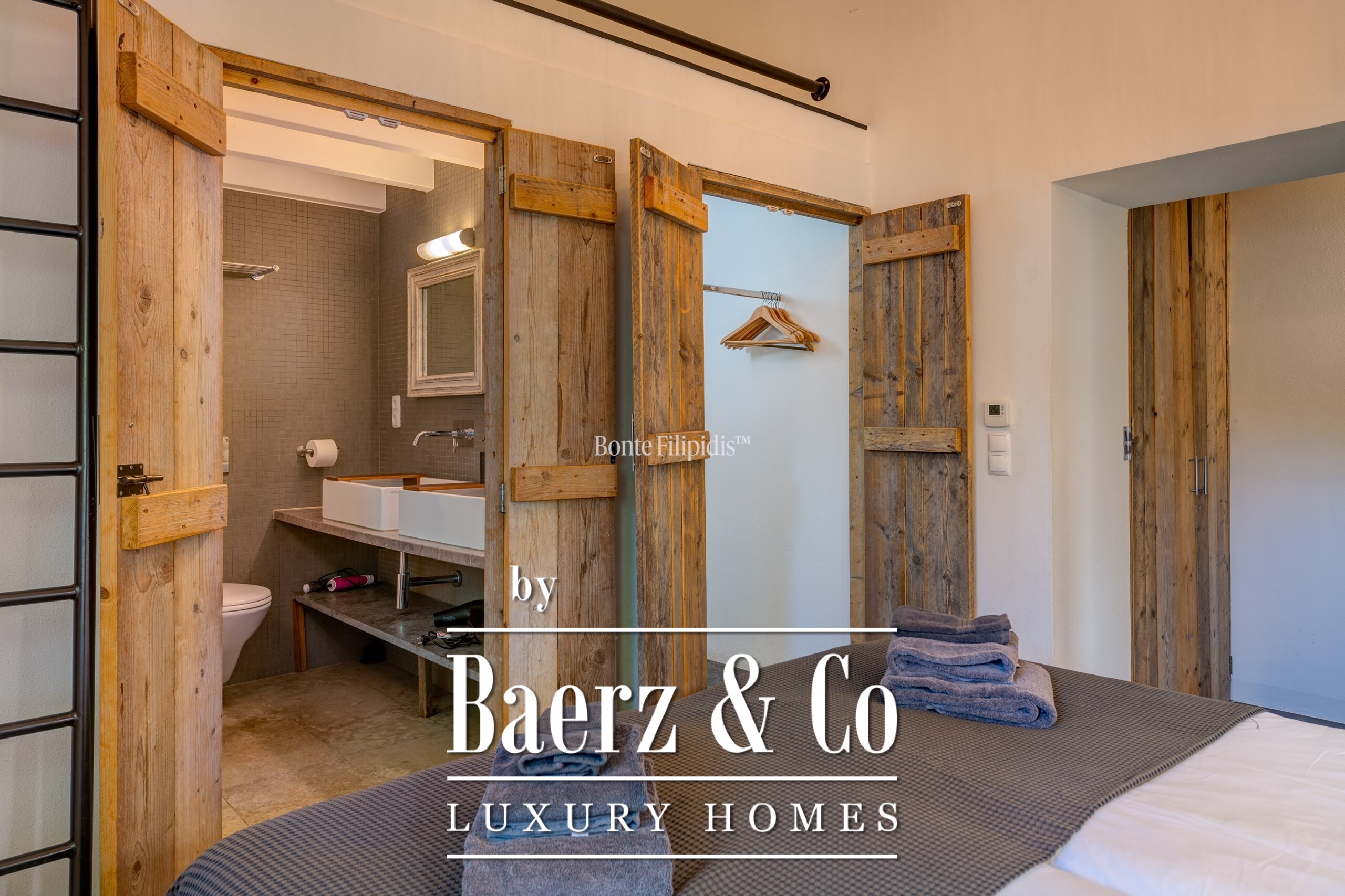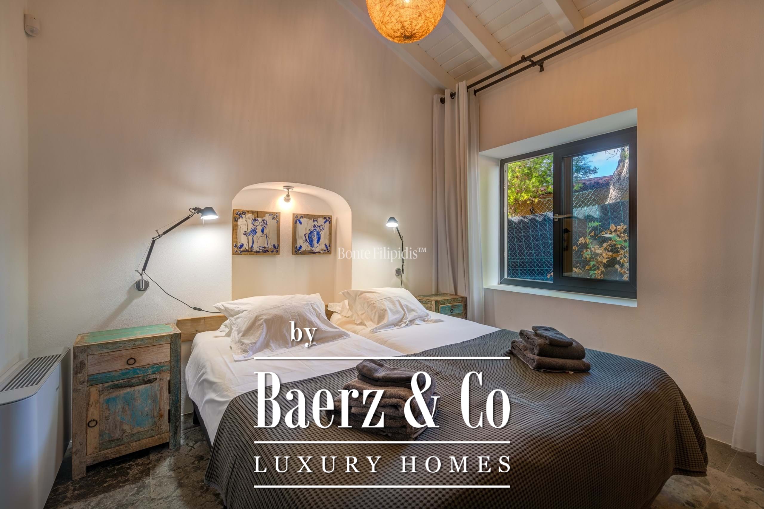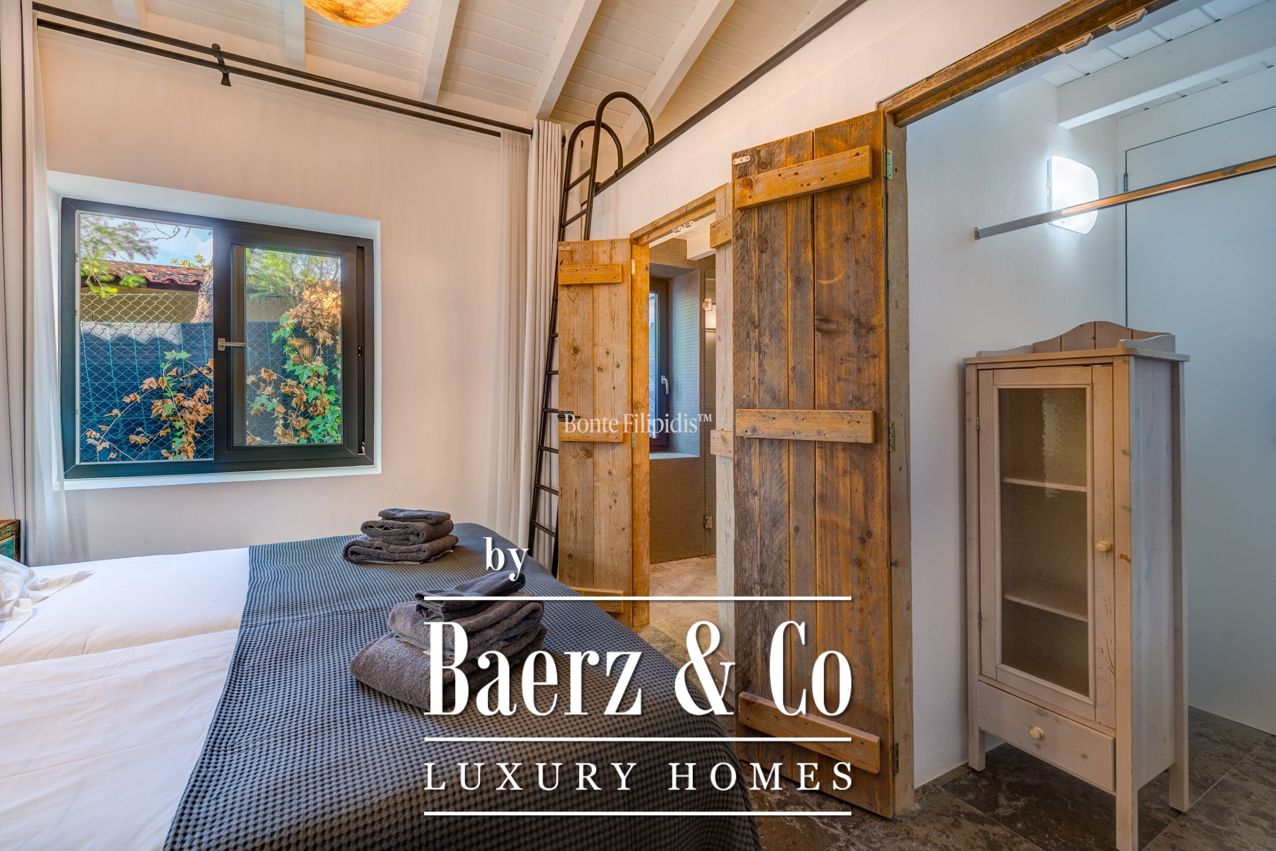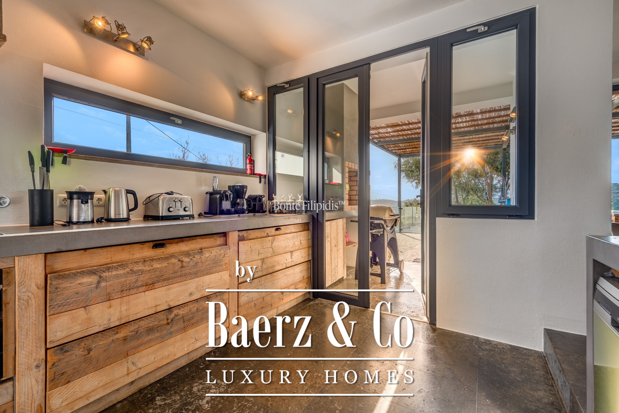 Участок площадью 2 440 м² обрамляют зрелые оливковые рощи и виноградники; ландшафтный сад, частный бассейн и джакузи на шесть человек создают атмосферу уединённости и спокойствия. Концепция энергоэффективности доминирует: 48 панелей солнечных батарей, система тёплого пола и камин Salamander гарантируют комфорт в течение всего года. Полностью оборудованные кухни внутри и на улице подходят как для тихих утренних моментов, так и для дружеских встреч.