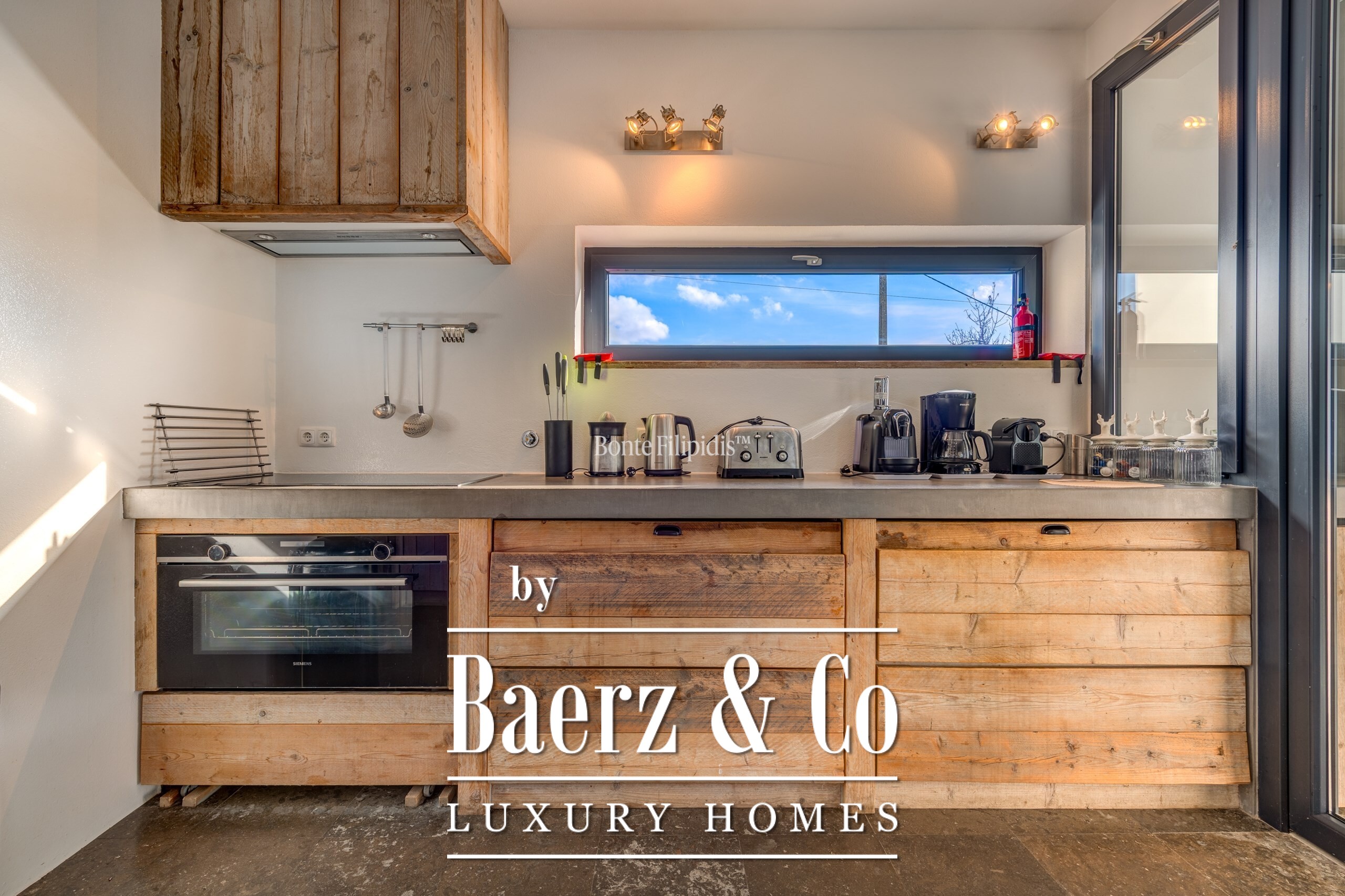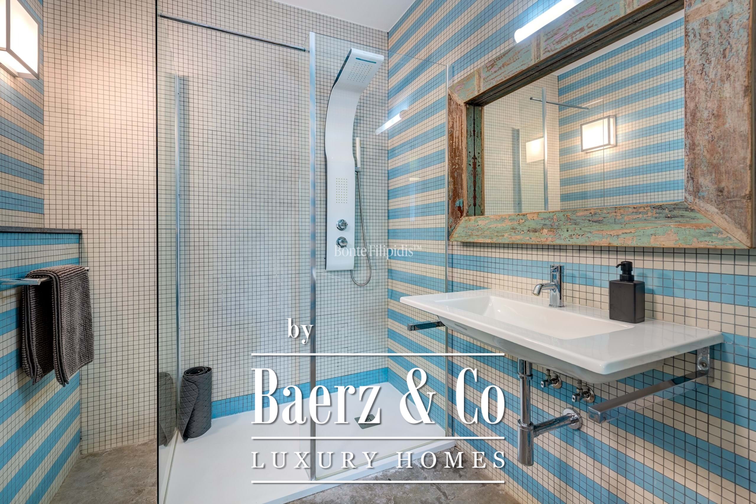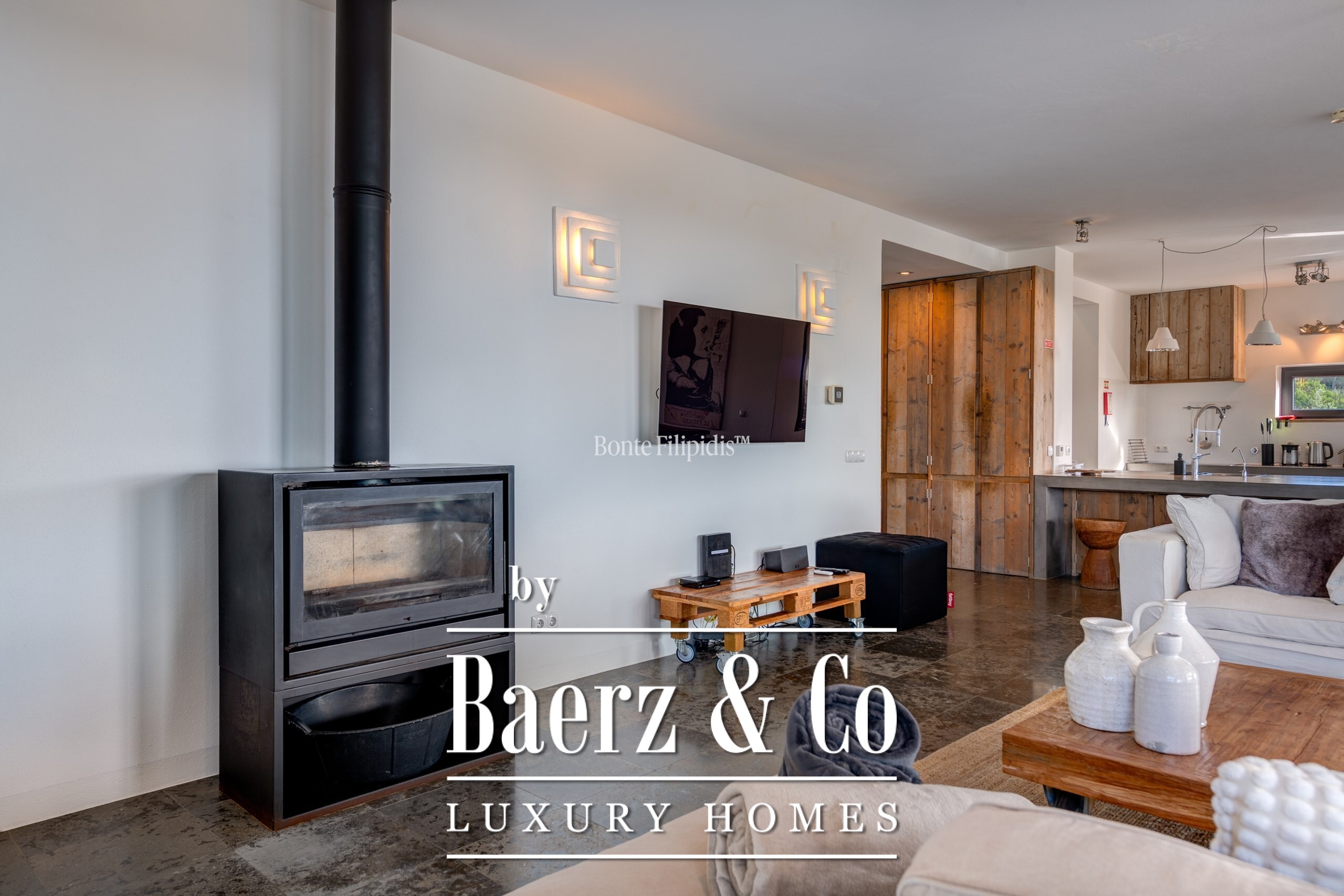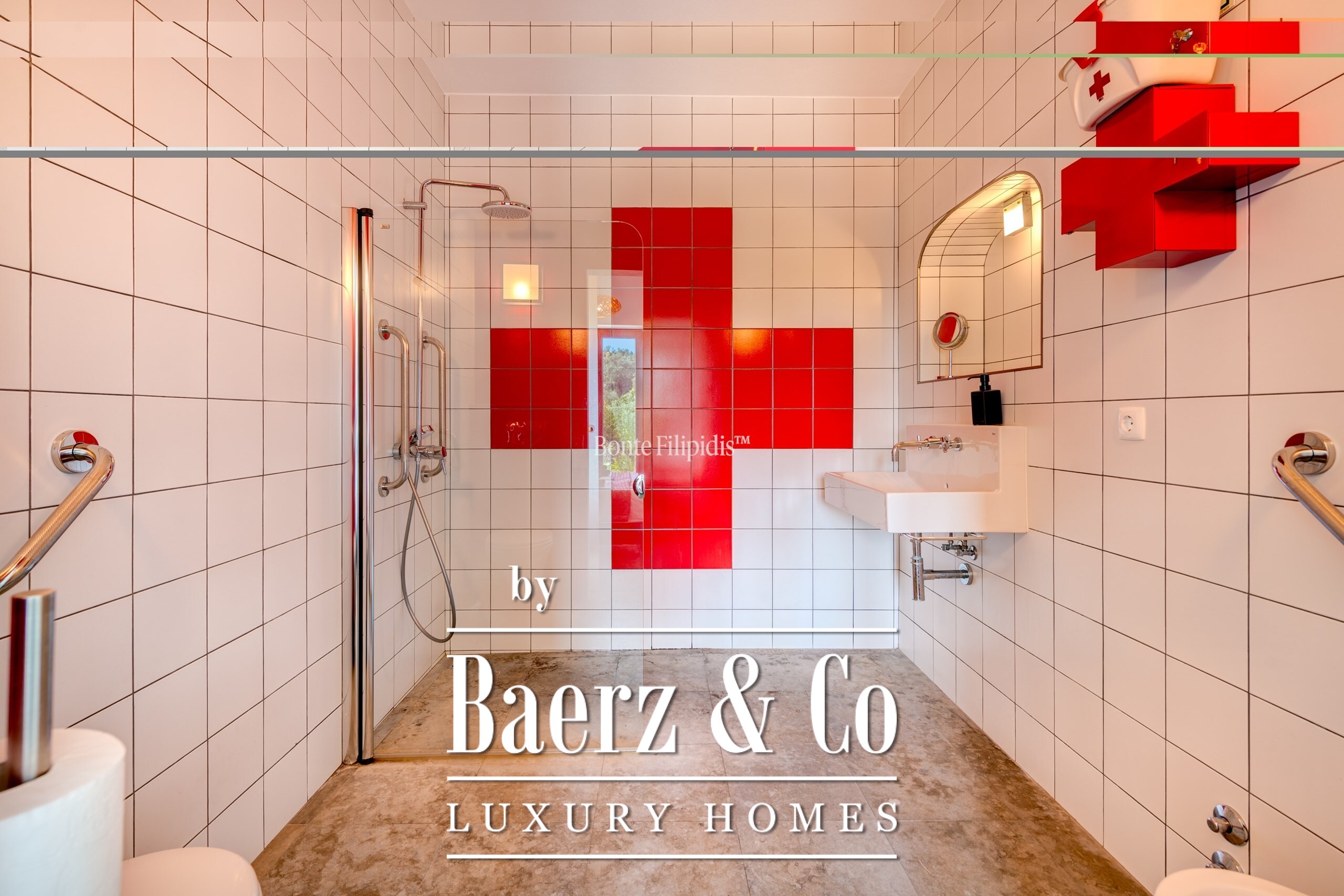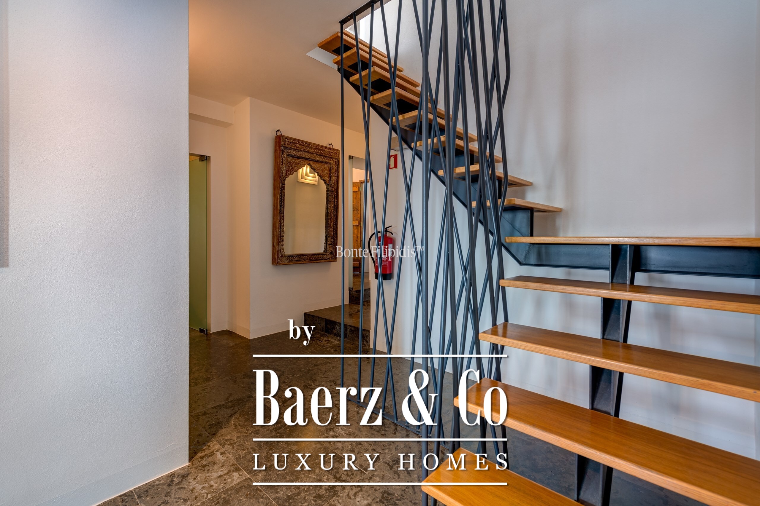Участок площадью 2 440 м² обрамляют зрелые оливковые рощи и виноградники; ландшафтный сад, частный бассейн и джакузи на шесть человек создают атмосферу уединённости и спокойствия. Концепция энергоэффективности доминирует: 48 панелей солнечных батарей, система тёплого пола и камин Salamander гарантируют комфорт в течение всего года. Полностью оборудованные кухни внутри и на улице подходят как для тихих утренних моментов, так и для дружеских встреч.