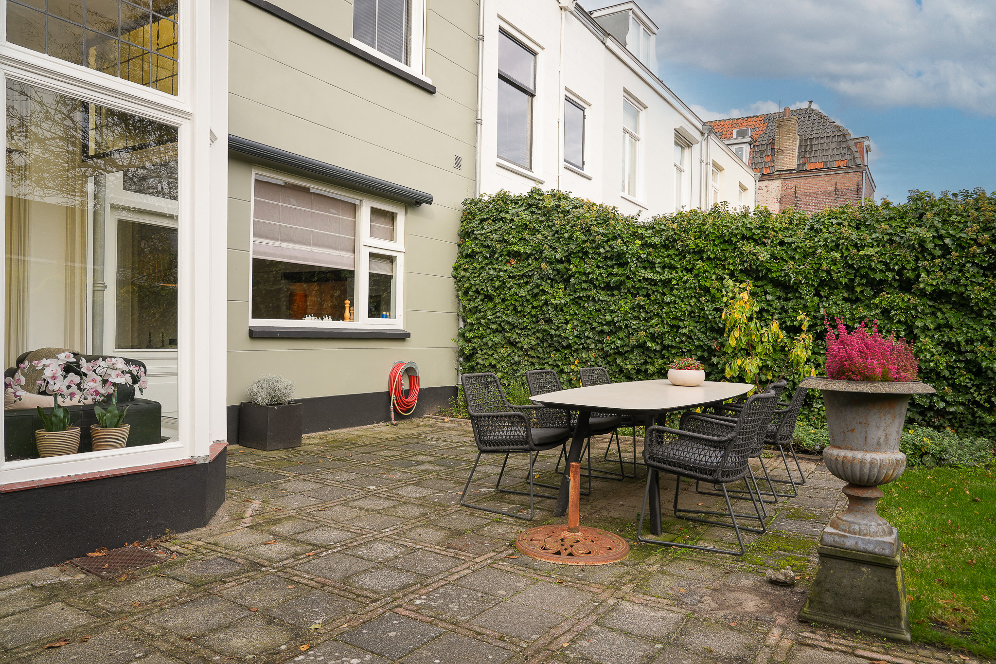 In a prime location in "de Bovenstad" — the most sought-after part of Gorinchem’s historic city centre — stands this stately former headmaster’s residence, featuring a broad, sun-filled garden and a spacious outbuilding with rear access (59 m²) that currently serves as storage or workshop space.