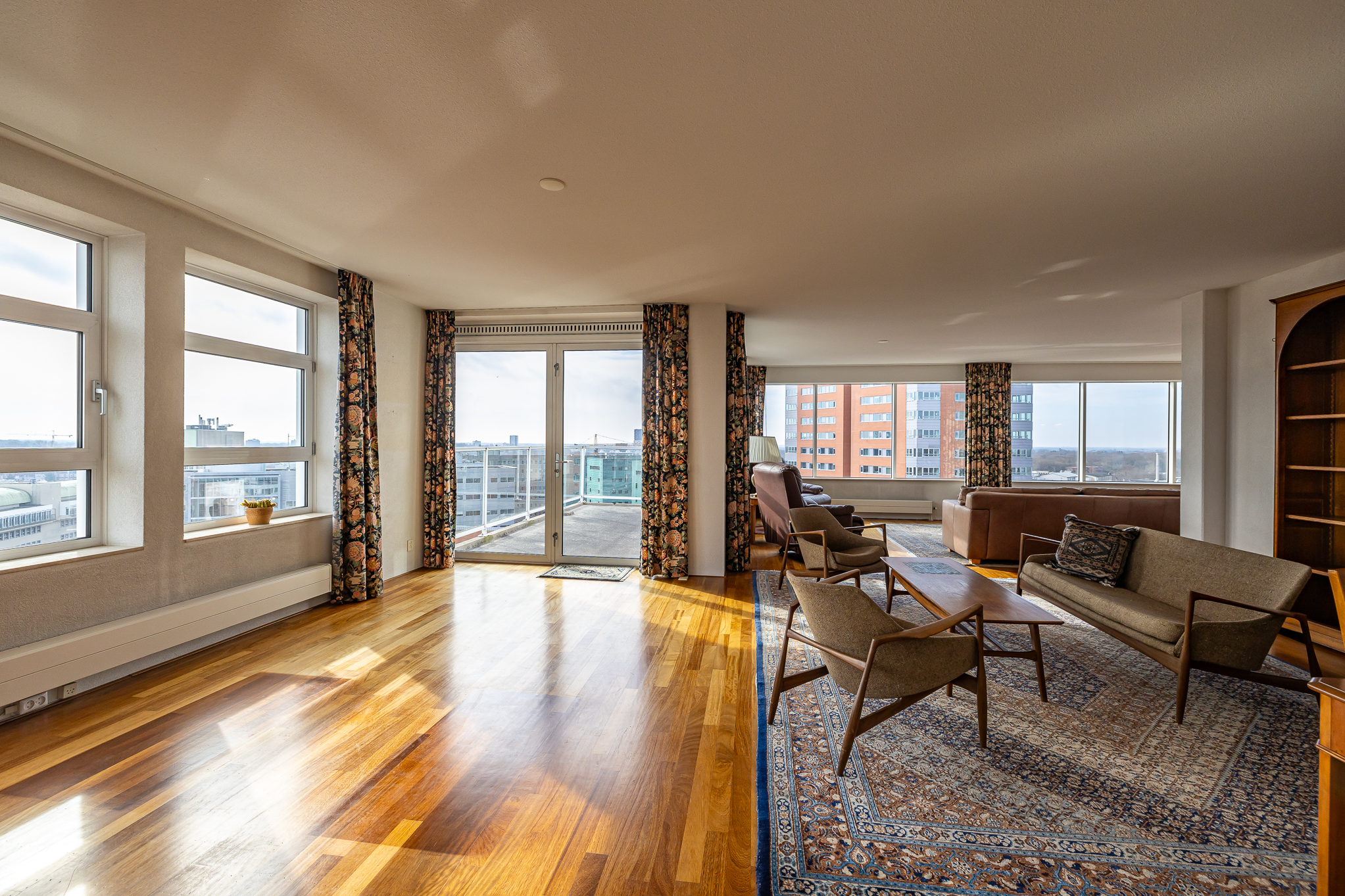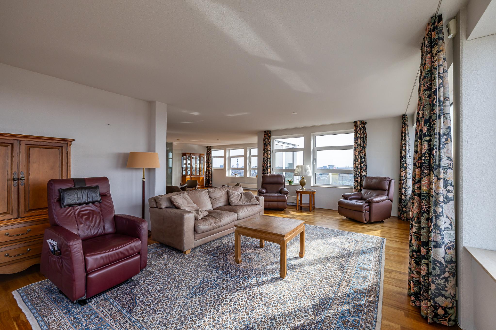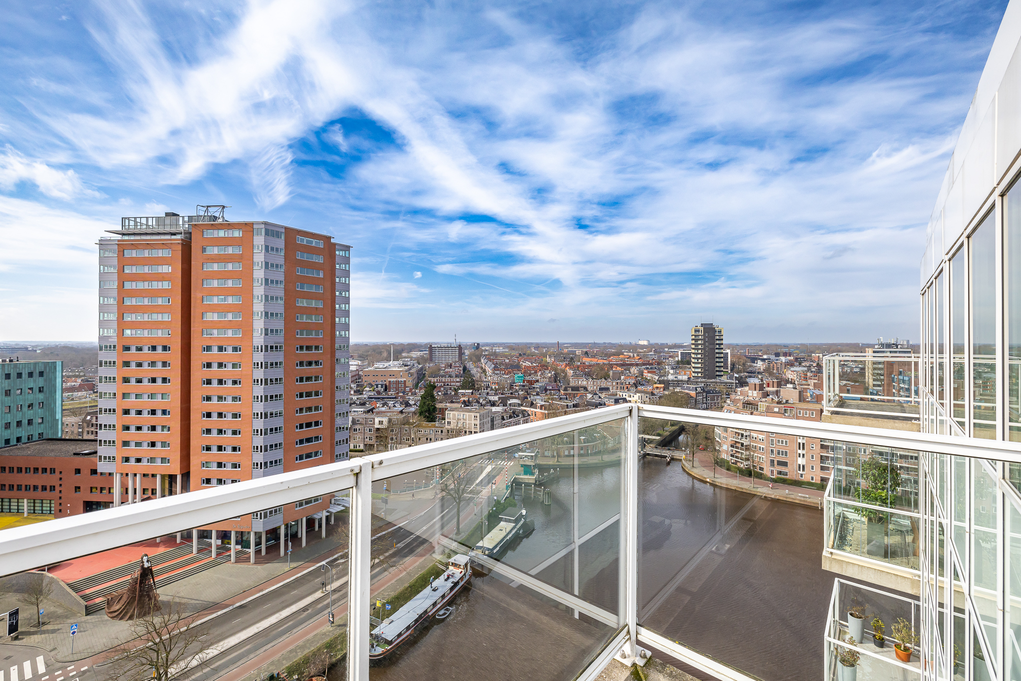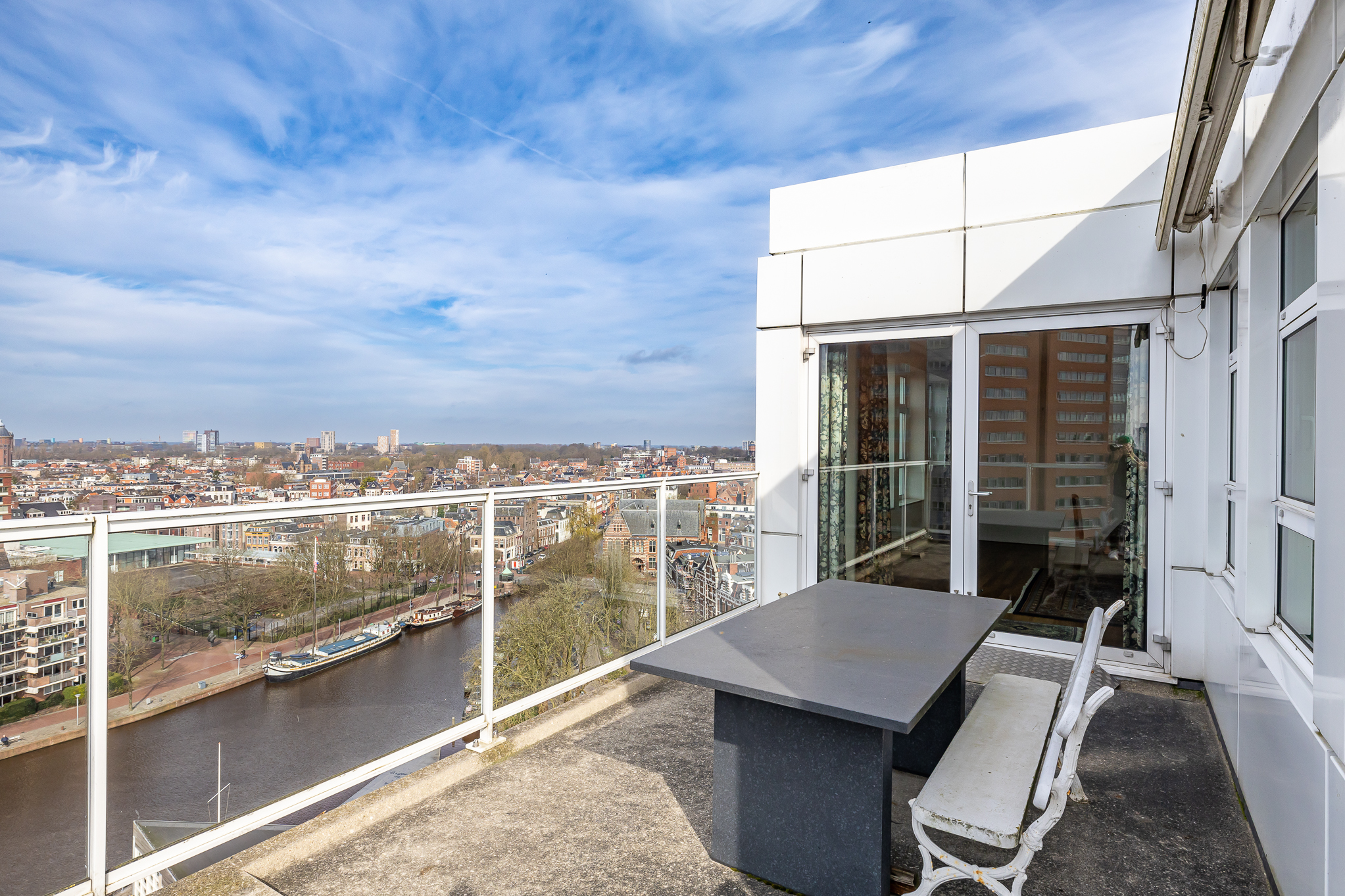 Пентхаус Groningen — это редкое предложение для утончённой городской жизни на пороге исторического центра города. Этот эксклюзивный пентхаус располагает 263 м² жилой площади с панорамными окнами от пола до потолка, выходящими на канал Verbindingskanaal, порт Zuiderhaven и обсаженную деревьями улицу Praediniussingel. Уникальная архитектура, реализованная путем объединения двух пентхаусов, создала просторную планировку с четырьмя спальнями и двумя ванными комнатами, с такими удобствами, как джакузи, сауна и паровая кабина.