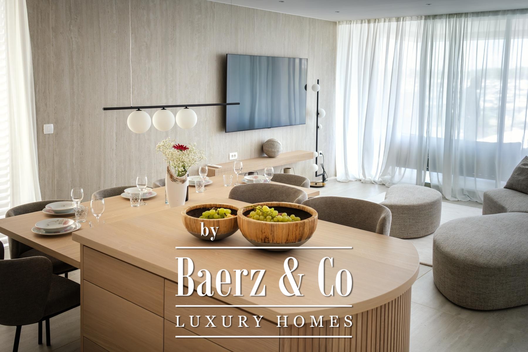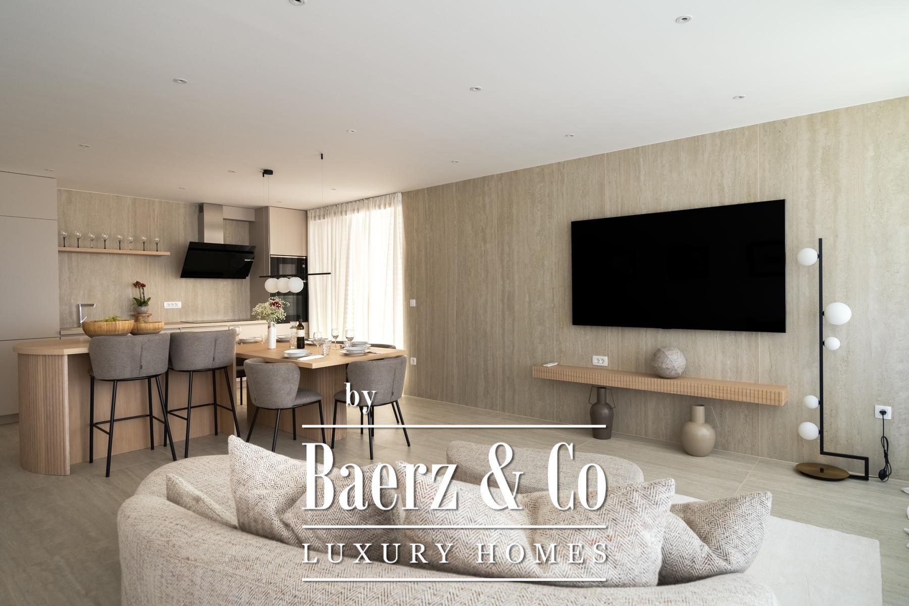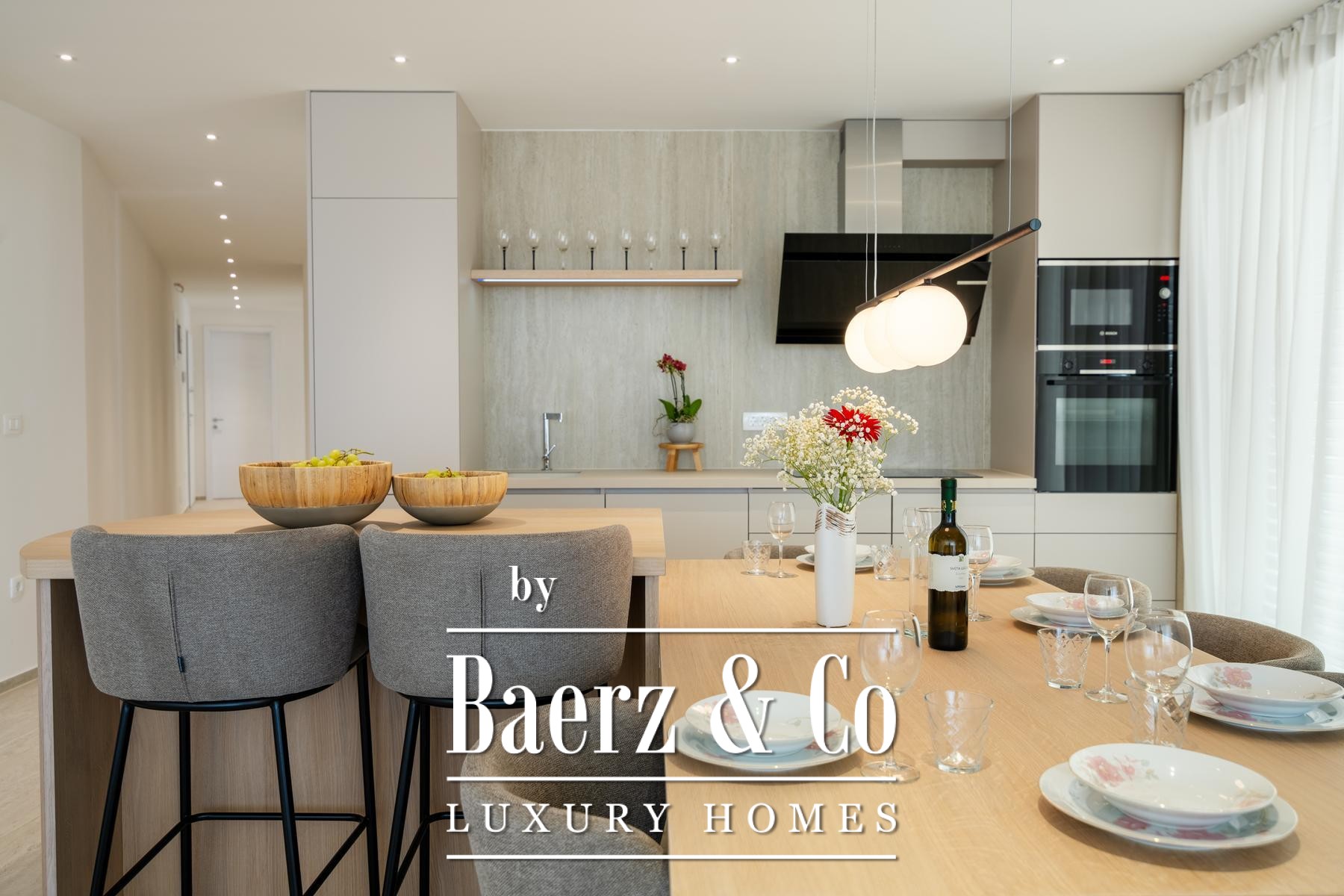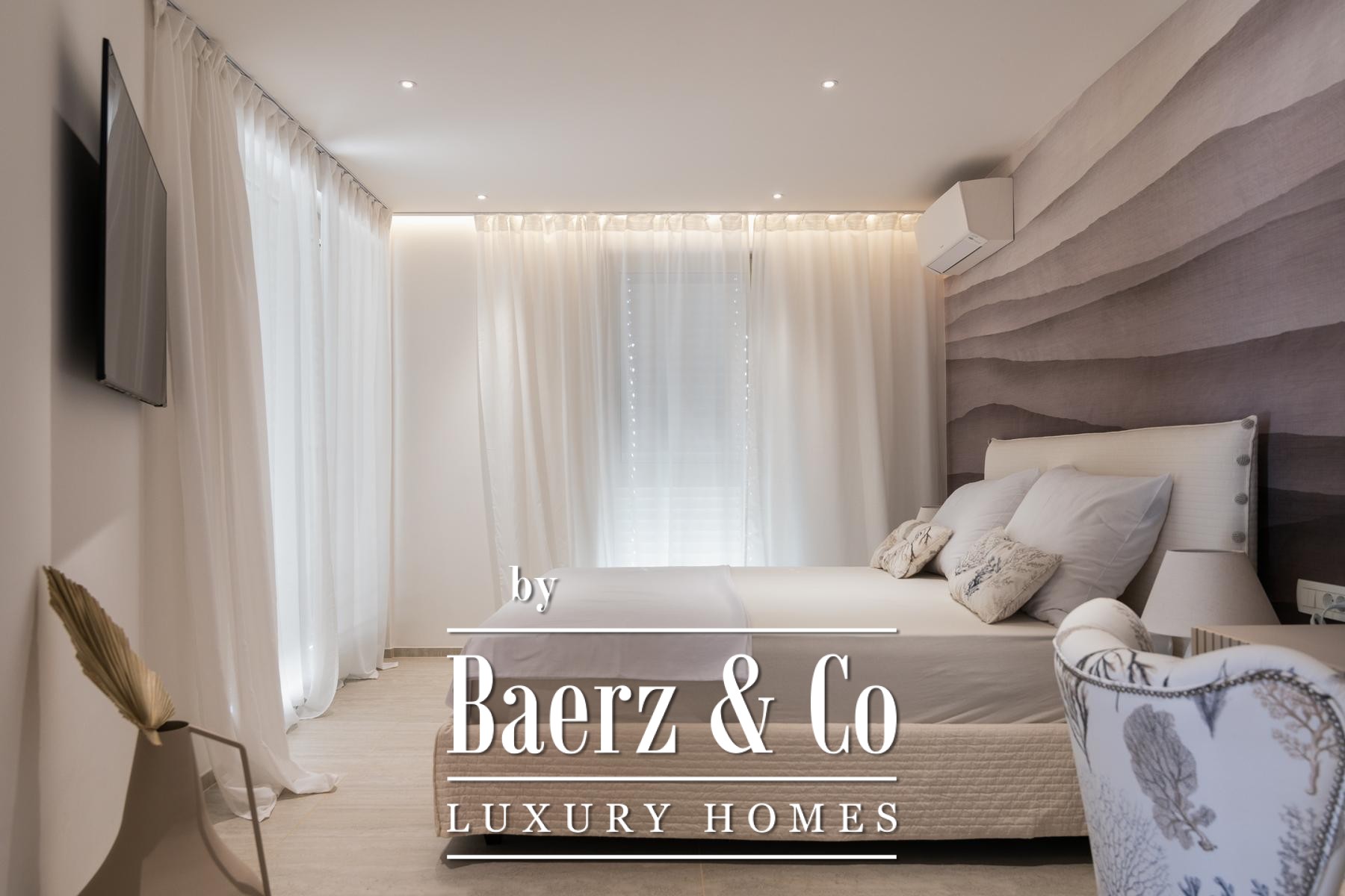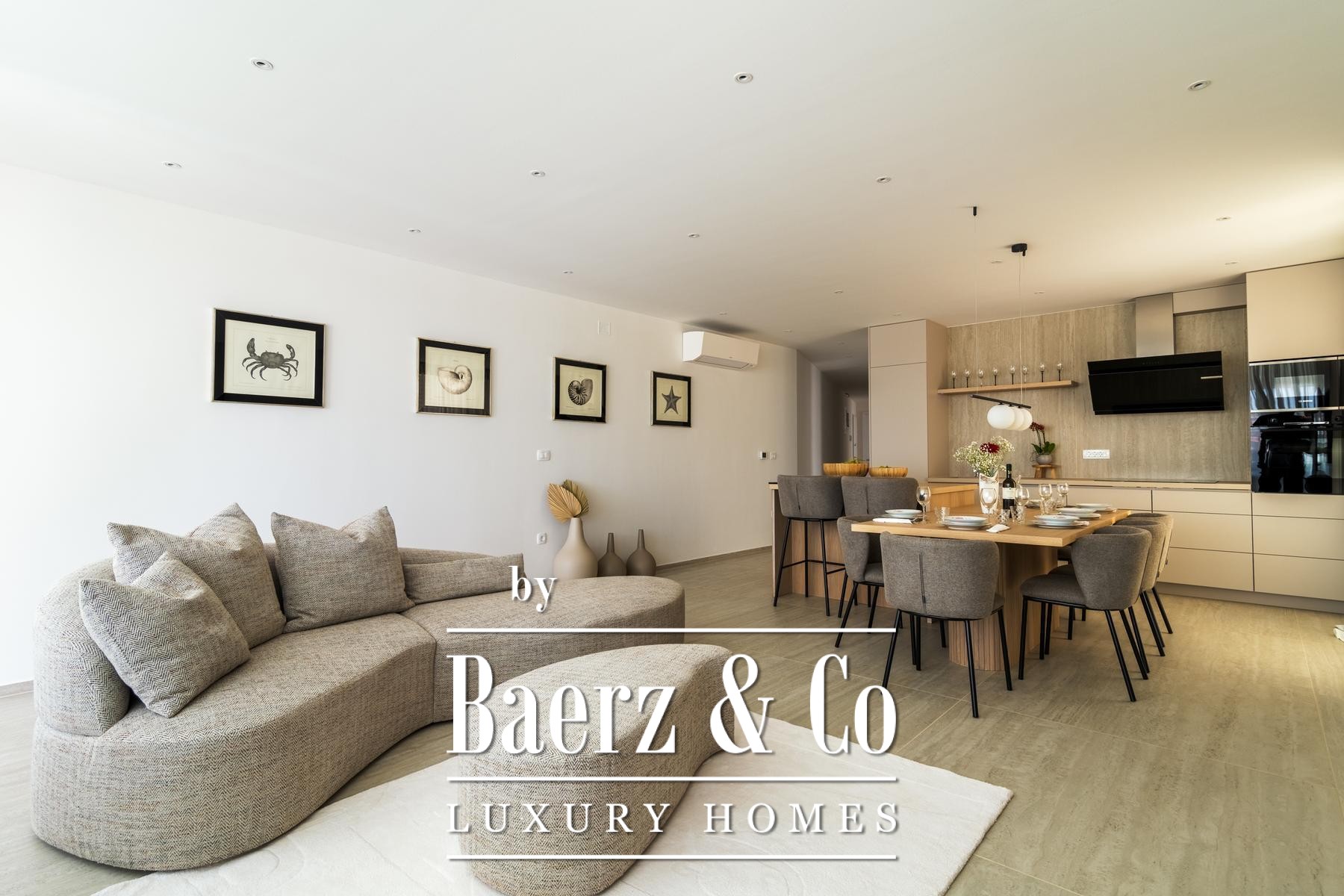 Свет заливает открытую гостиную зону, где кухня, столовая и лаундж плавно переходят в крытую террасу с панорамным видом на море. Главная спальня обладает собственной ванной комнатой и балконом, еще две спальни делят тщательно оформленную ванную комнату. Каждый элемент – от техники Bosch до напольного отопления и кондиционирования воздуха – создан для комфорта и высочайшего качества. В число удобств входят два парковочных места, частное кладовое помещение, а также доступ к подогреваемому соляному бассейну, сауне и тренажерному залу.