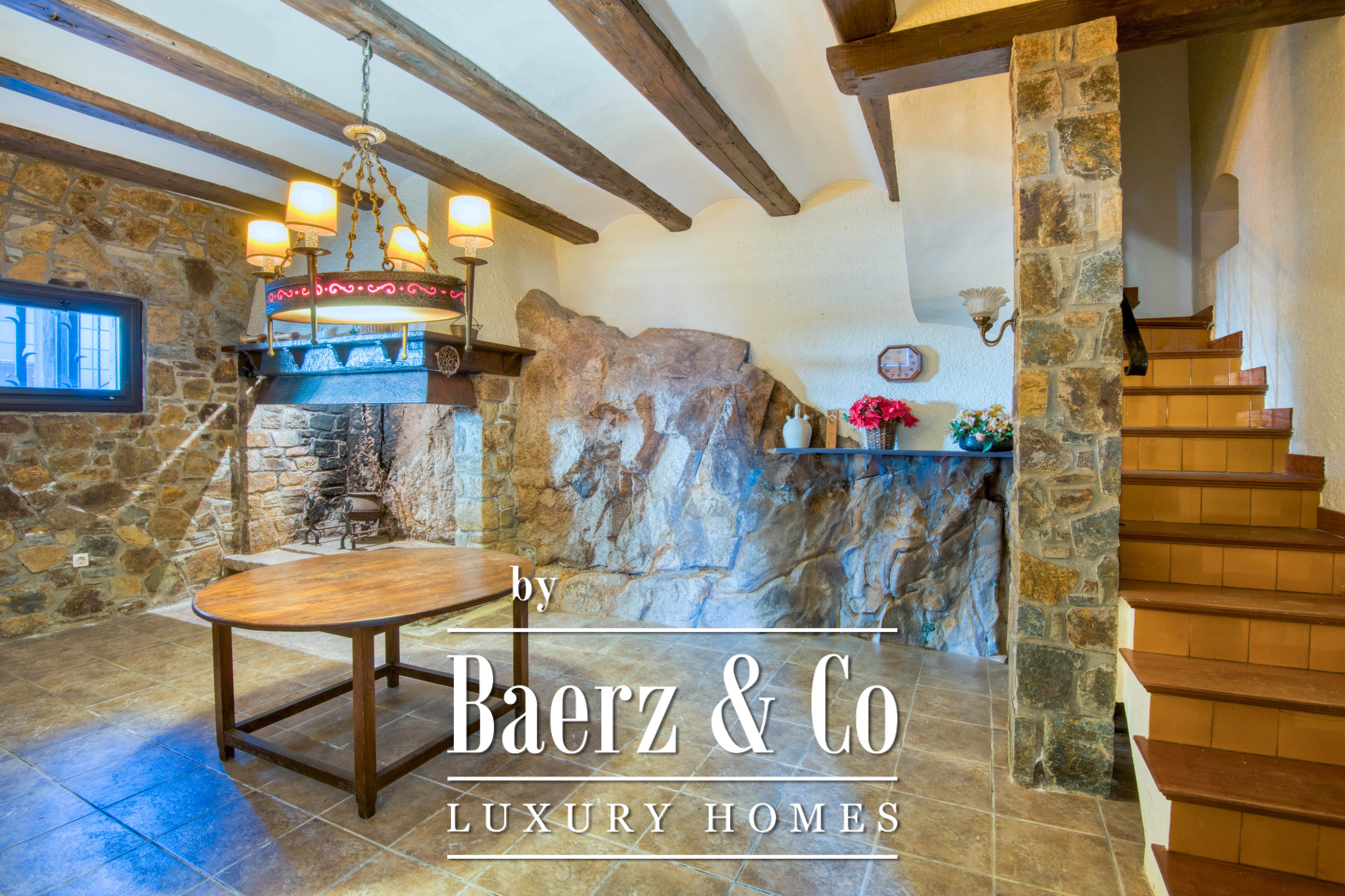 В центре дома—просторная гостиная с камином, плавно переходящая в обеденную зону; естественная атмосфера для общения или отдыха. Отдельная полностью оборудованная кухня идеально подходит для кулинарных занятий и выходит окнами на живописный сад. Крытые веранды и террасы, ориентированные на закат, создают зоны для размышлений и ужинов на свежем воздухе. Приватный сад с типично средиземноморским ландшафтом наполняет владение атмосферой покоя.
