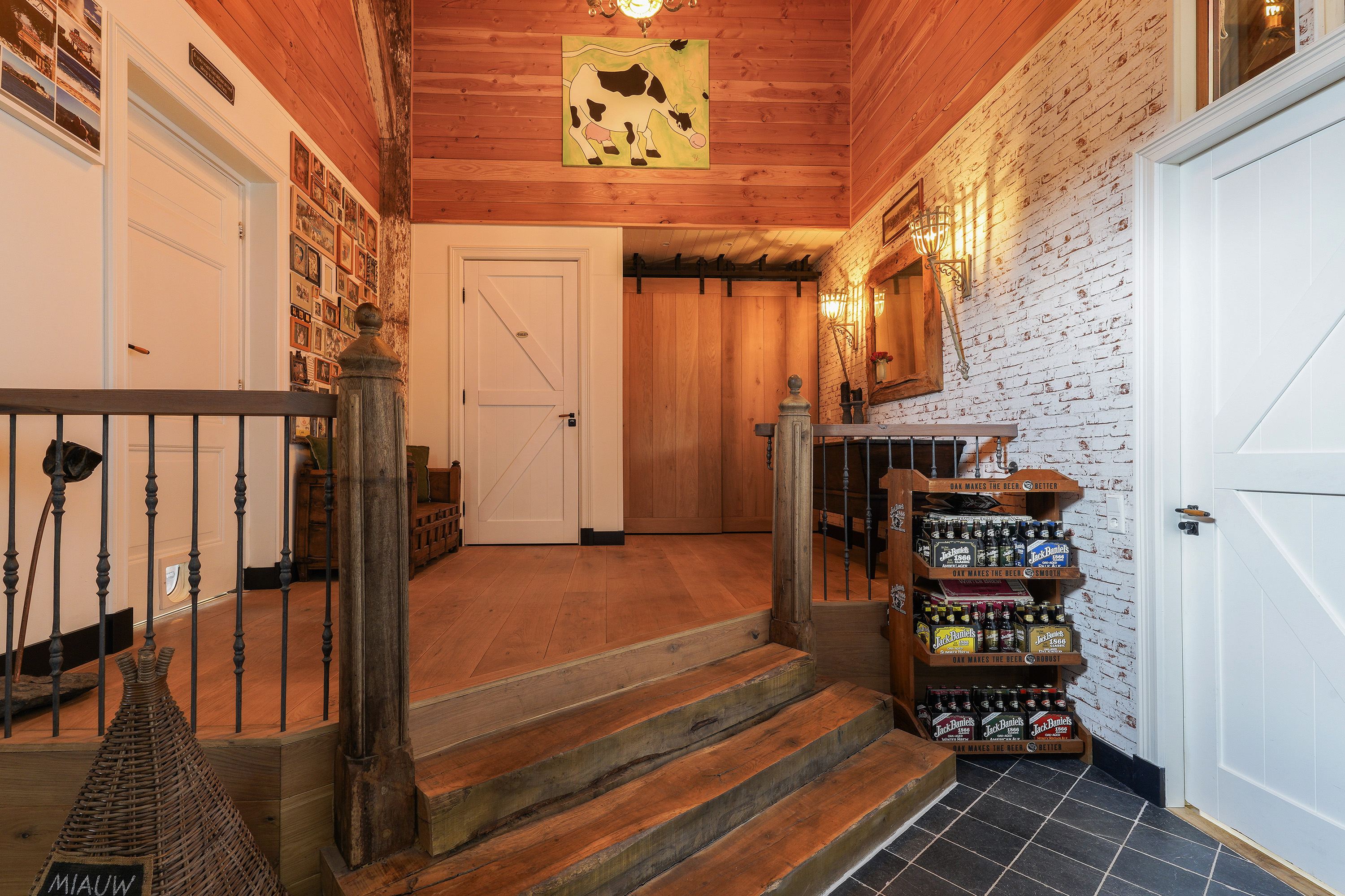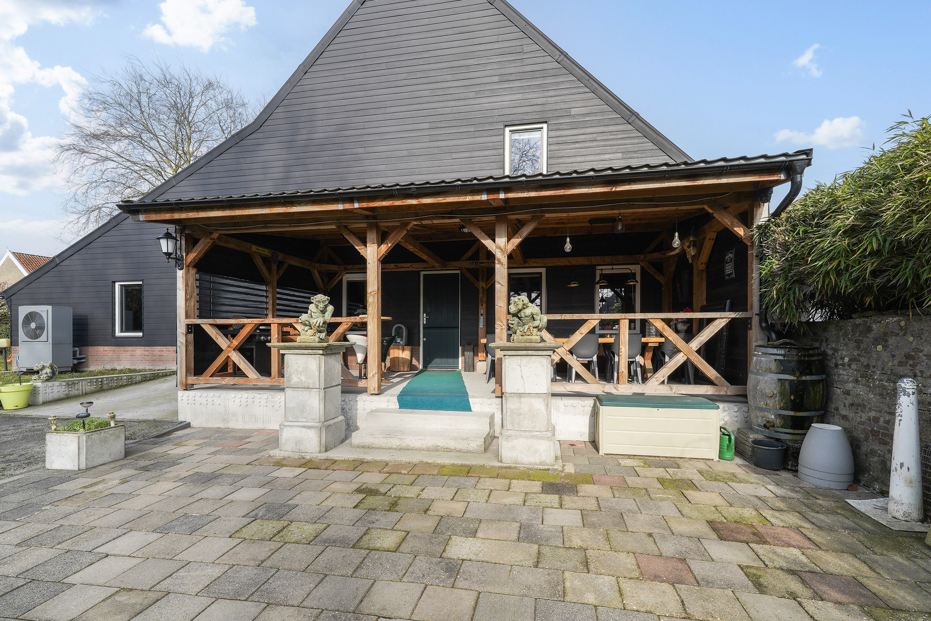 Звукоизолирующие тройные стеклопакеты, отделка под дерево, большое количество систем хранения и современная электрика свидетельствуют о внимании к деталям и простоте эксплуатации. На территории достаточно места для парковки, объект подходит для проживания нескольких поколений, обустройства домашнего офиса или использования под гостиницу формата B&B. Обширная территория двора — отличная основа для ландшафтных решений, широкая веранда уже установлена.