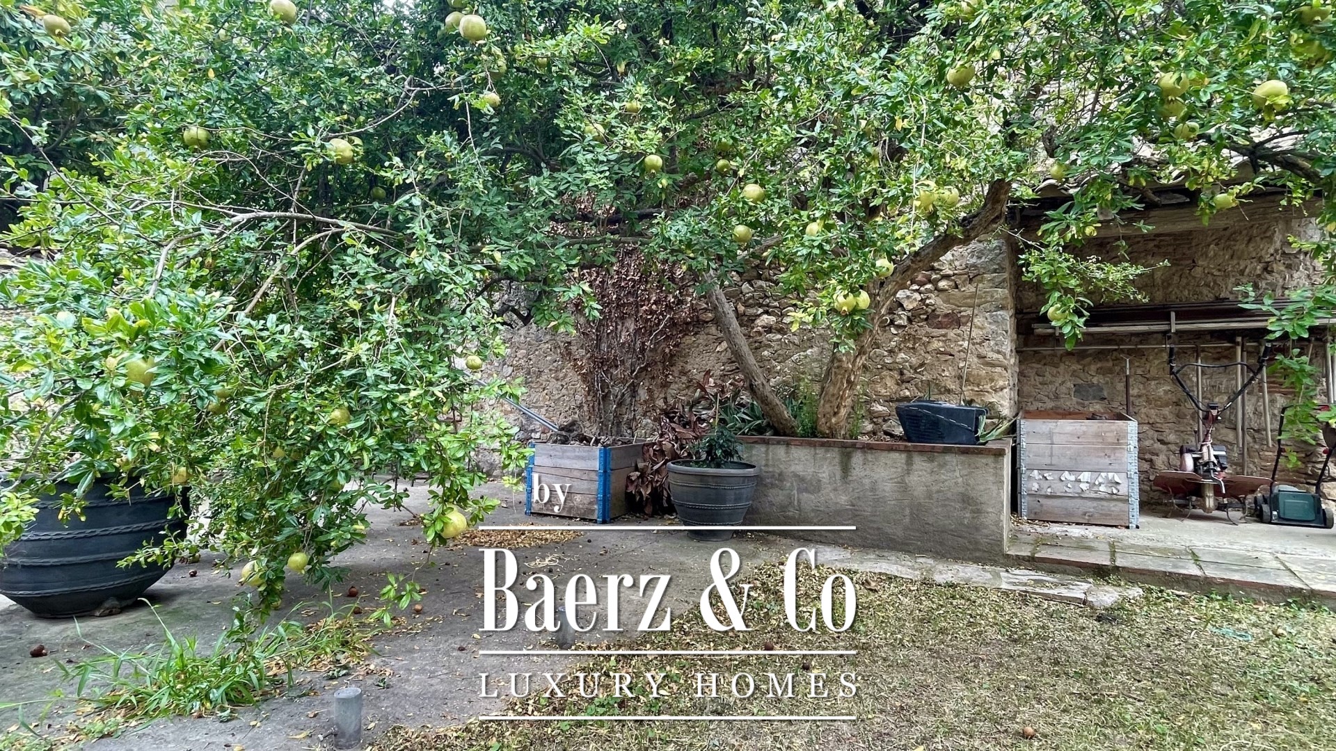 Скрытый сад за древними стенами предлагает 650 м² уединённой зелени, где фруктовые деревья и огород вплетают природу в каждодневную жизнь. Террасы и спокойные внутренние помещения, дополненные камином и крытым бассейном, создают ощущение уюта и гостеприимства в любое время года. Также имеются гараж, кабинет и игровая комната—каждая деталь служит одновременно функциональности и эстетике пространства.