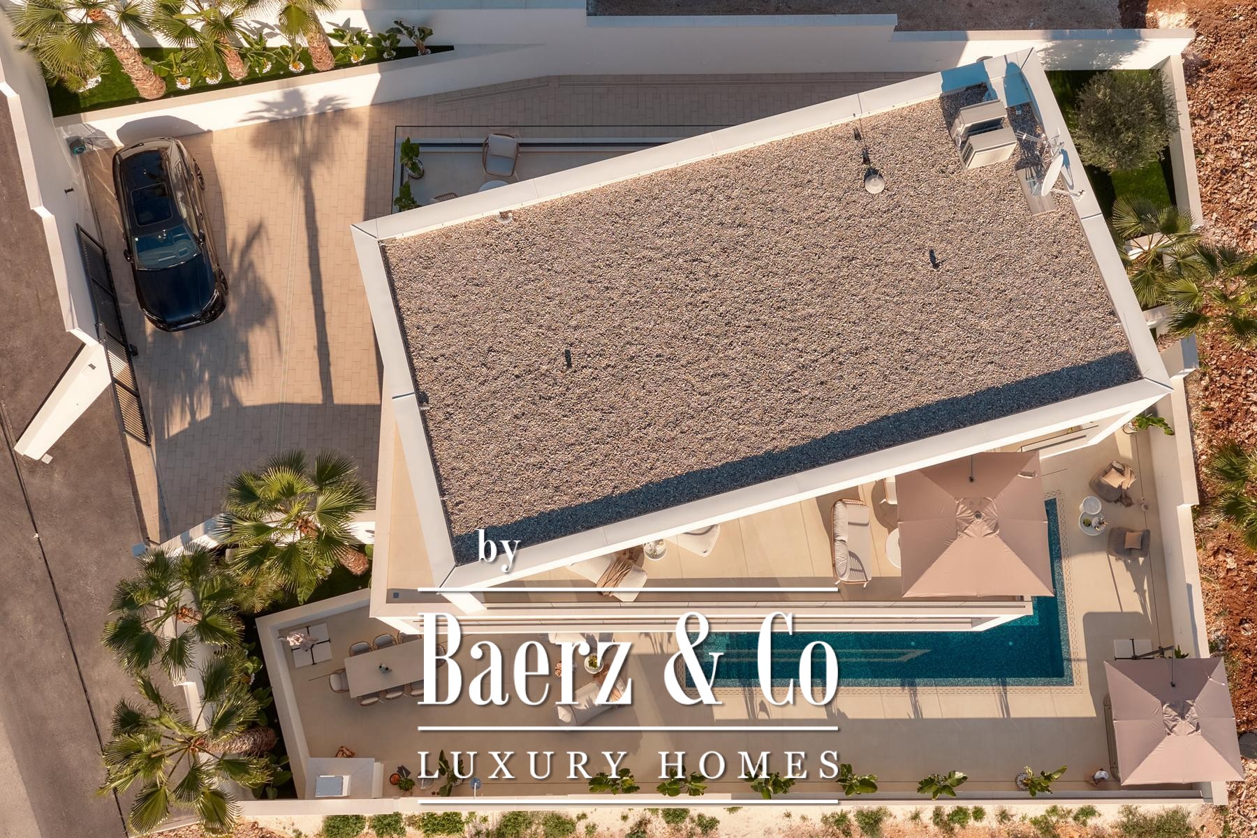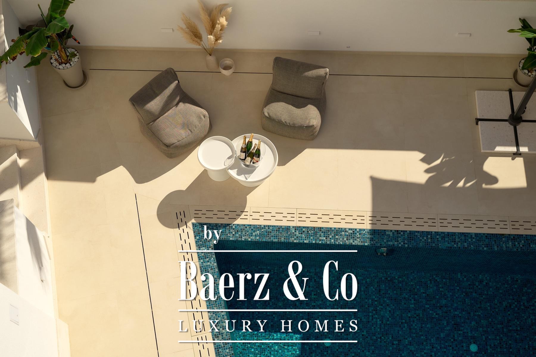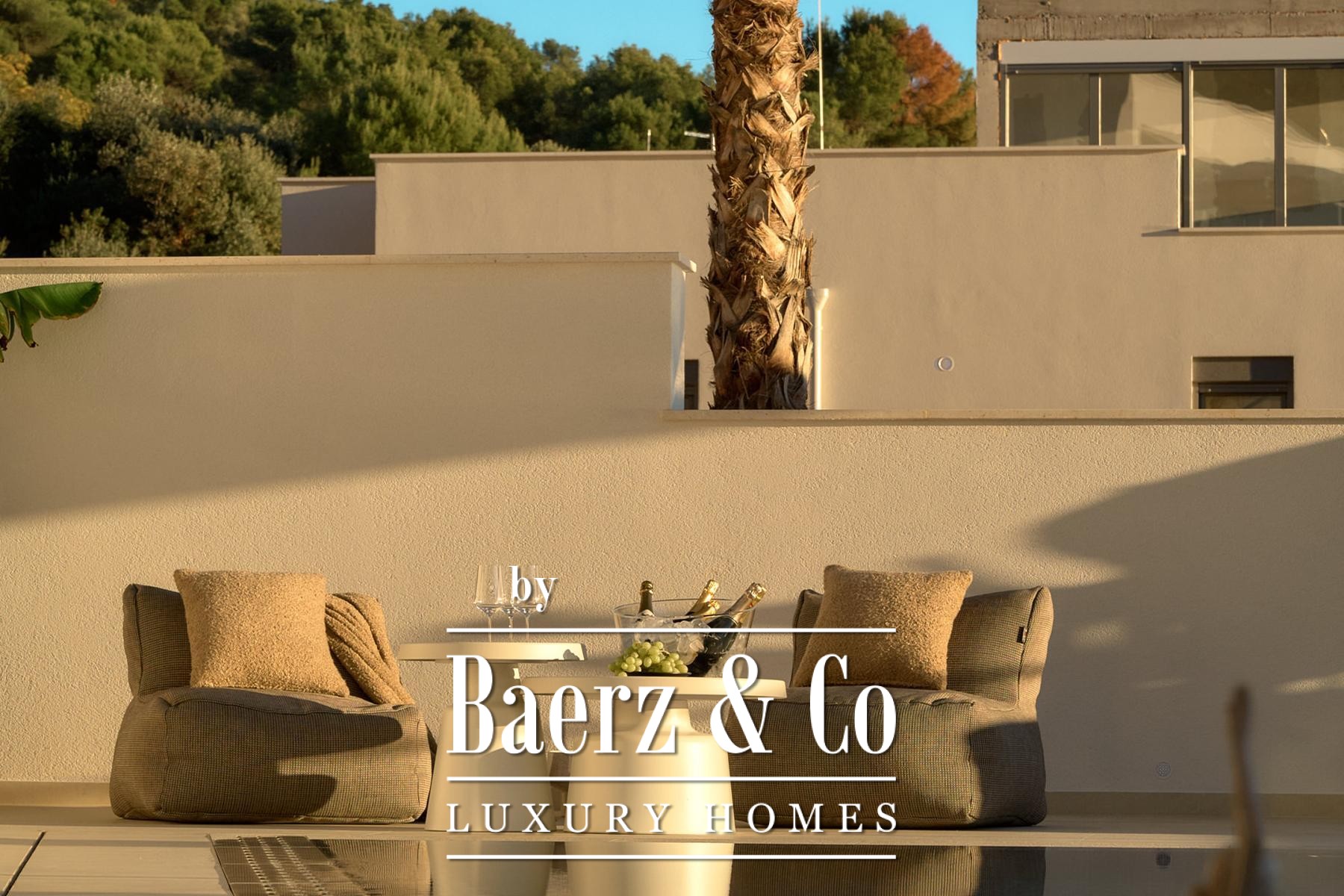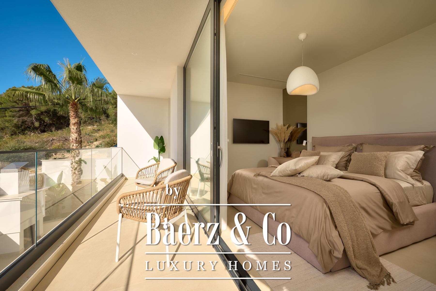 Строительные стандарты безупречны: потолочное кондиционирование, тёплый пол на тепловых насосах, вентиляция с рекуператором, термоизоляция, алюминиевые оконные системы, стеклянные ограждения террас, солнечные панели, автоматический полив сада и видеонаблюдение обеспечивают техническое совершенство. Два открытых парковочных места и средиземноморское озеленение обогащают атмосферу.
