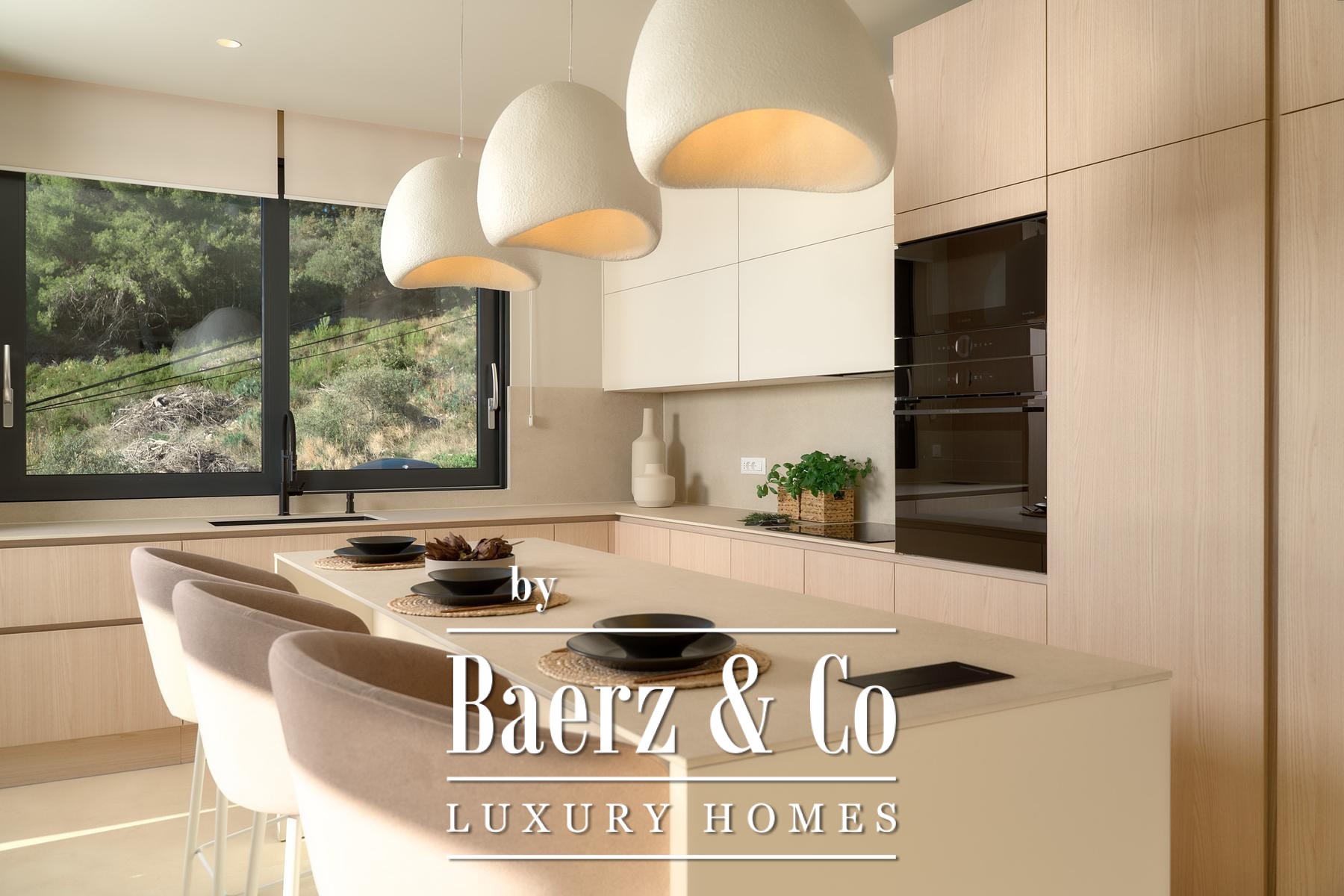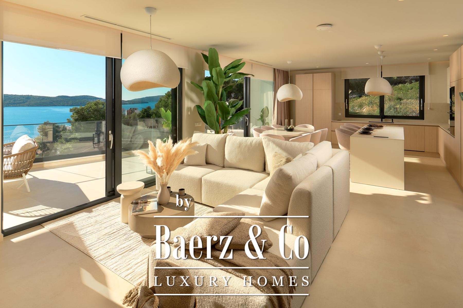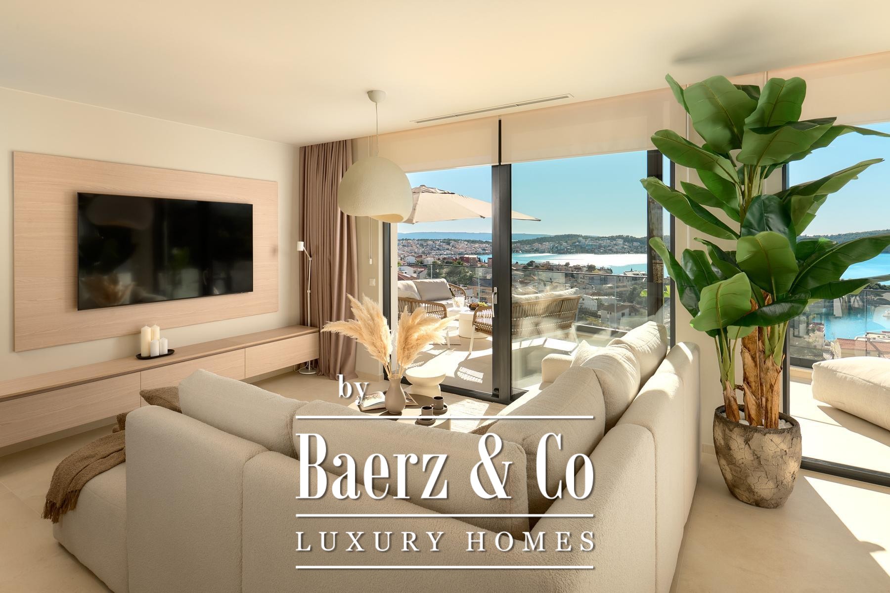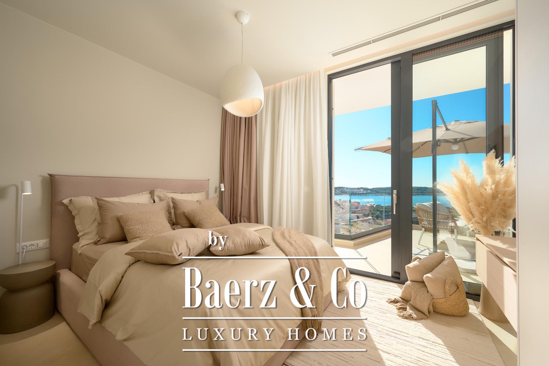 Строительные стандарты безупречны: потолочное кондиционирование, тёплый пол на тепловых насосах, вентиляция с рекуператором, термоизоляция, алюминиевые оконные системы, стеклянные ограждения террас, солнечные панели, автоматический полив сада и видеонаблюдение обеспечивают техническое совершенство. Два открытых парковочных места и средиземноморское озеленение обогащают атмосферу.