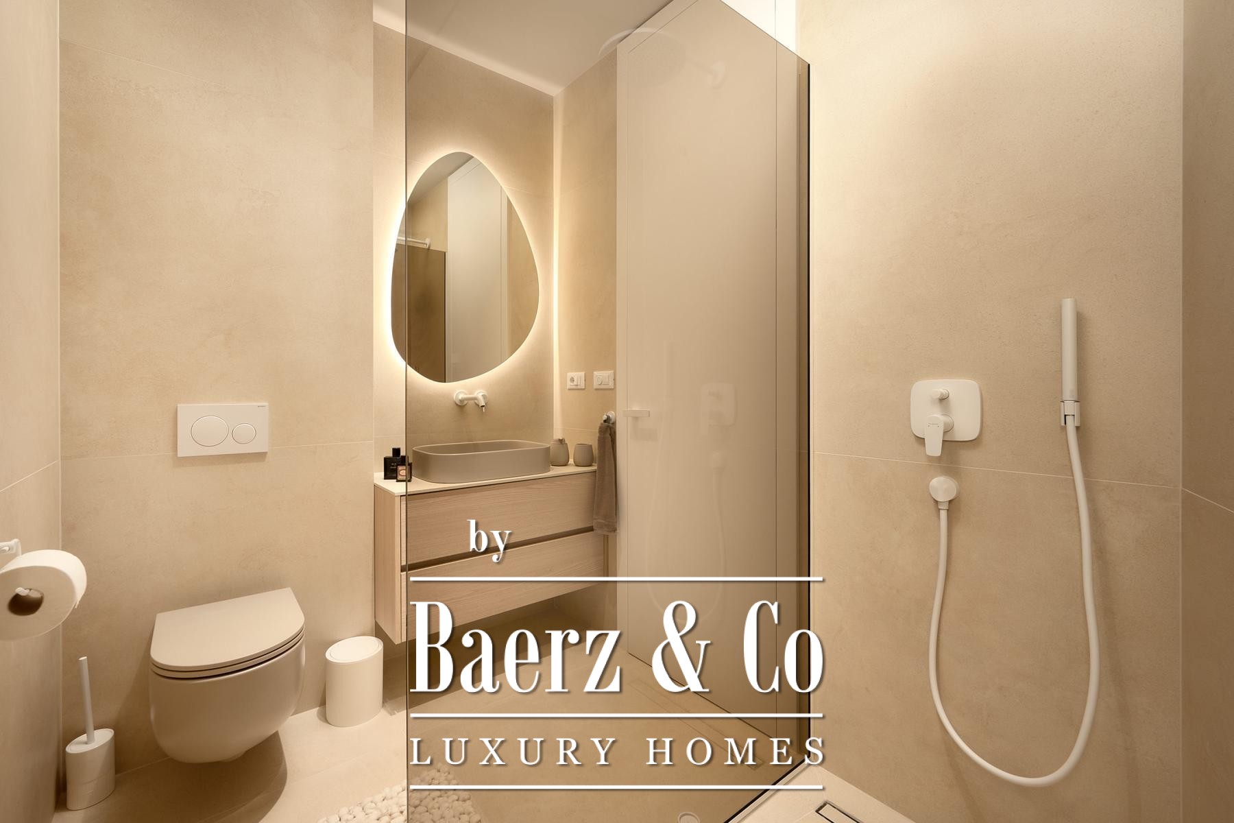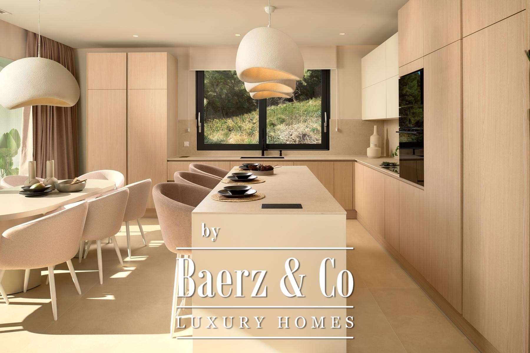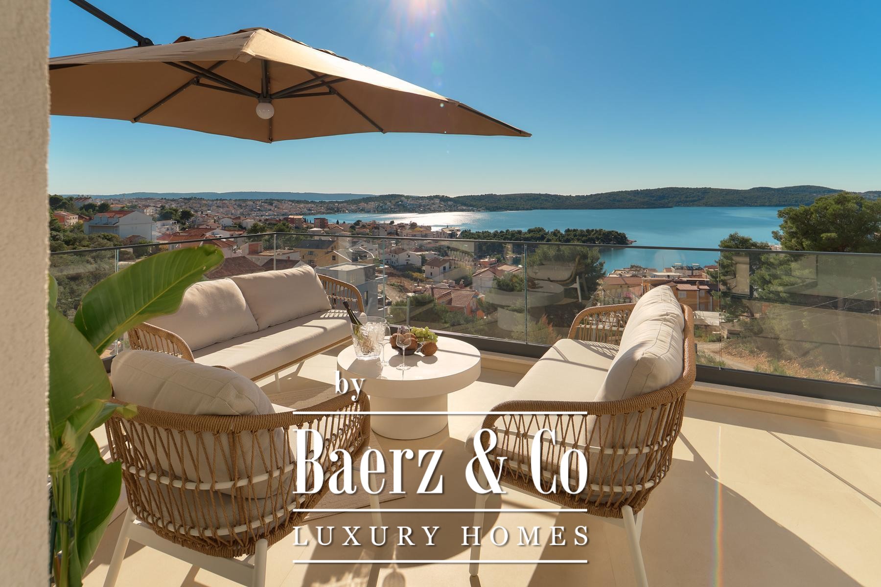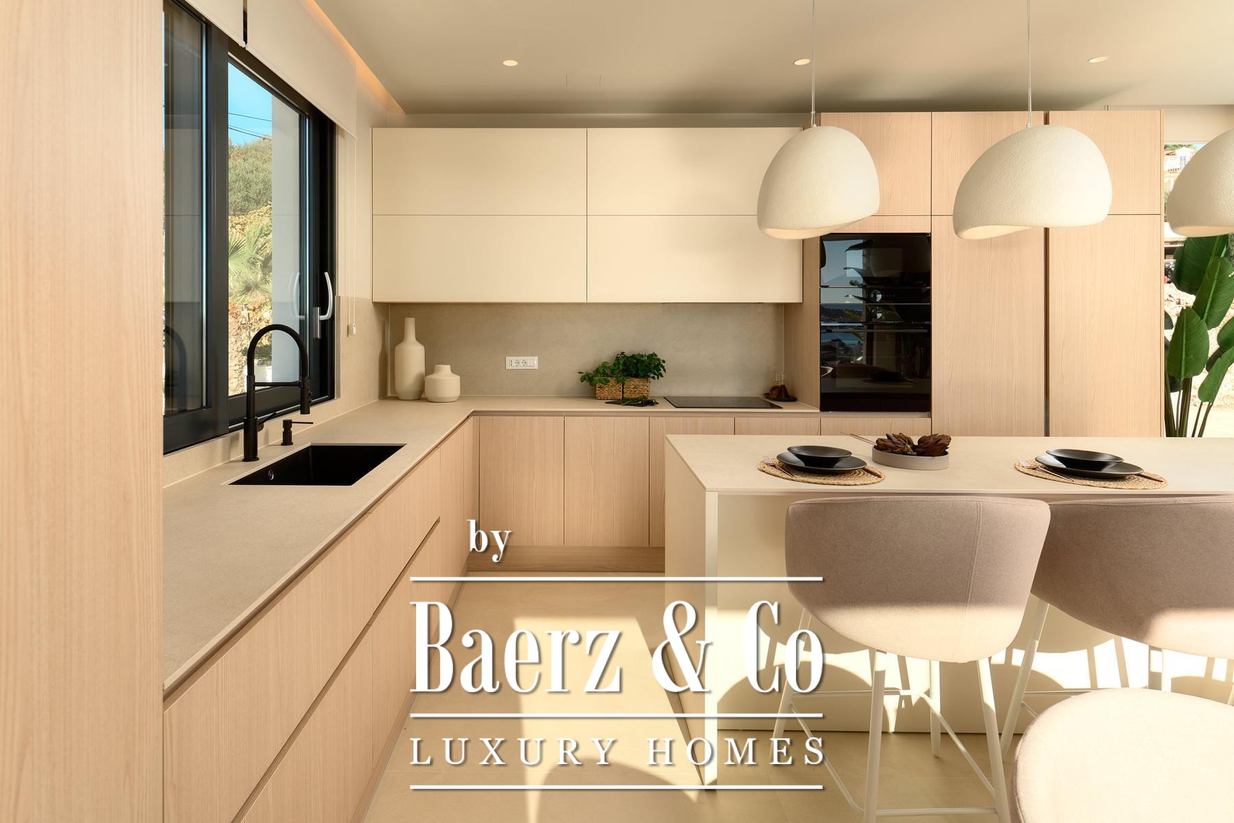 Строительные стандарты безупречны: потолочное кондиционирование, тёплый пол на тепловых насосах, вентиляция с рекуператором, термоизоляция, алюминиевые оконные системы, стеклянные ограждения террас, солнечные панели, автоматический полив сада и видеонаблюдение обеспечивают техническое совершенство. Два открытых парковочных места и средиземноморское озеленение обогащают атмосферу.