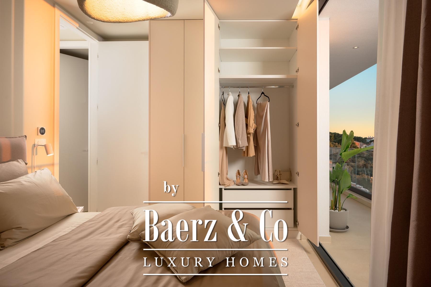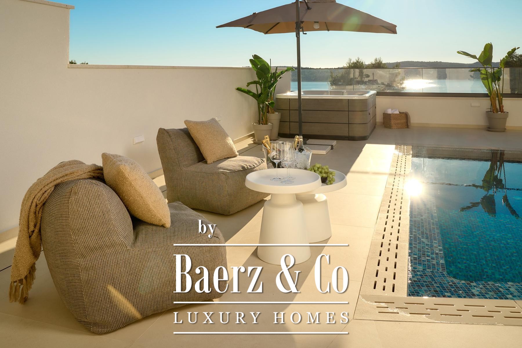 Три спальни с ванными комнатами на первом этаже имеют прямой выход в лоджию площадью 18,8 м². Приватный гараж 31 м² оснащён зарядкой для электромобилей. На втором этаже располагается просторная гостиная 52 м², четвёртая спальня, дополнительная ванная комната и обширные террасы, каждая с видом на сверкающий горизонт.