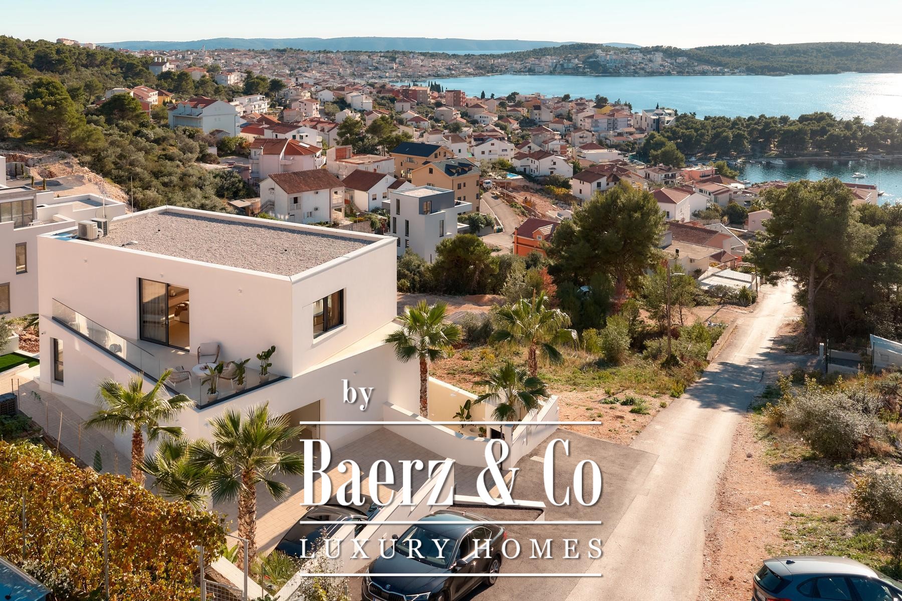 Расположенная всего в 330 метрах от пляжа, в 500 метрах от магазинов и в непосредственной близости от Трогира, аэропорта Сплита и города Сплит, эта современная вилла в Трогире воплощает сдержанную роскошь как для респектабельной семейной жизни, так и для стратегических инвестиций.