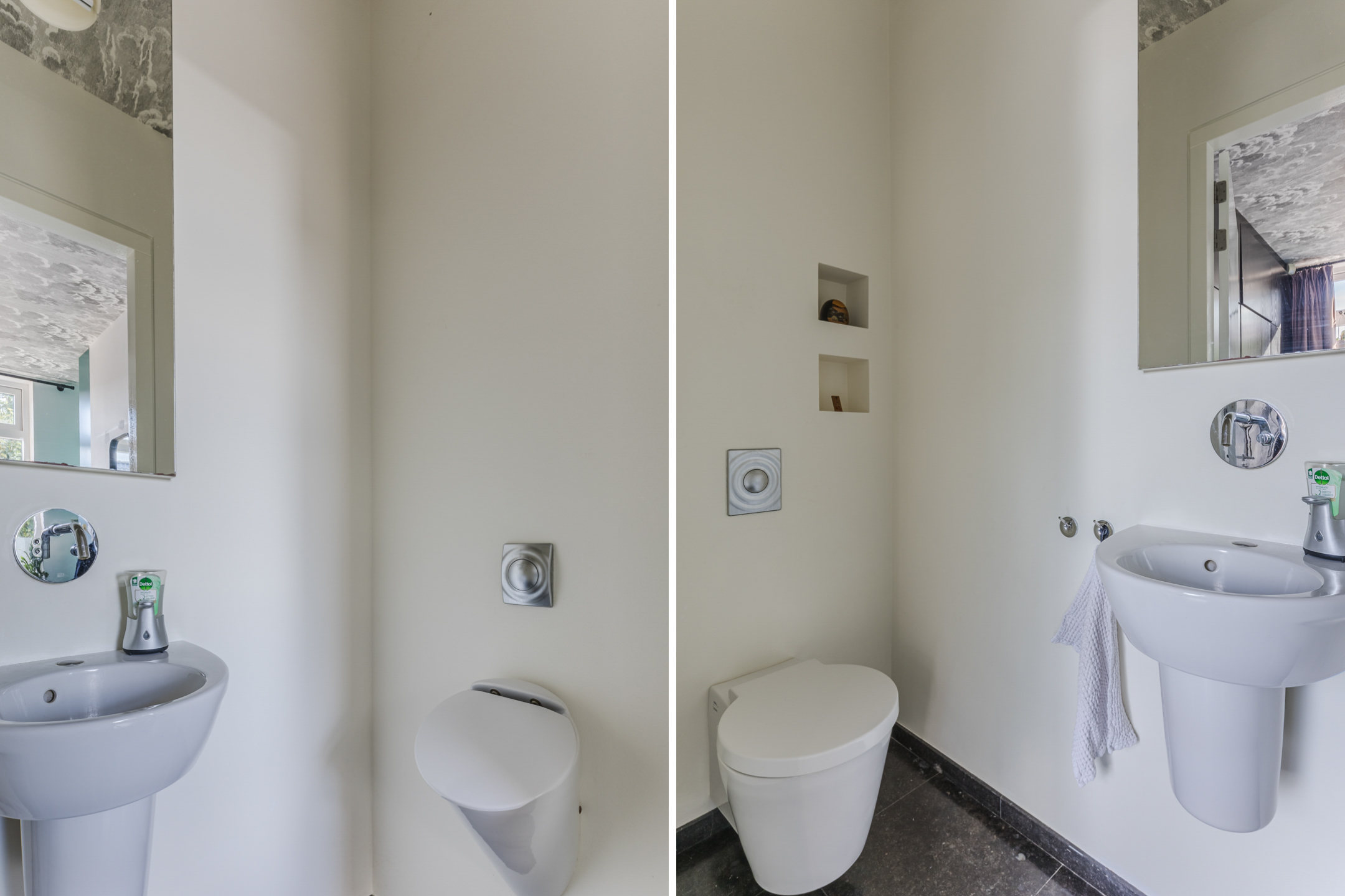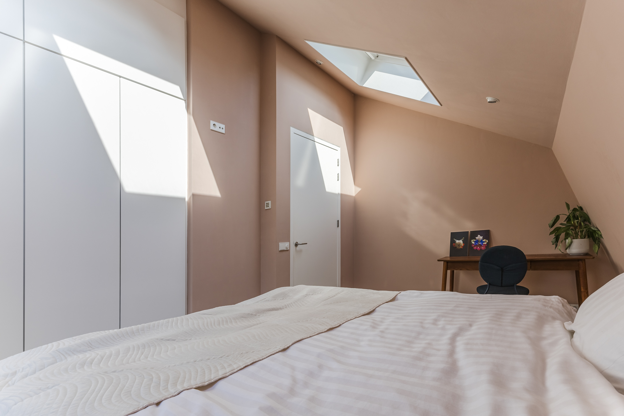 Просторная гостиная с газовым камином плавно переходит в светлую обеденную кухню с утонченным уровнем отделки. Тёплый пол, высокие потолки и тщательно подобранные материалы создают атмосферу комфорта; раздвижные двери мягко зонируют пространство. Кухня оборудована встроенной техникой, имеет вид на сад и подходит как для повседневной жизни, так и для приёма гостей. Три спальни обслуживаются качественной ванной комнатой с тёплым полом и душем без бортиков; здесь ощущается сдержанность и внимание к деталям.