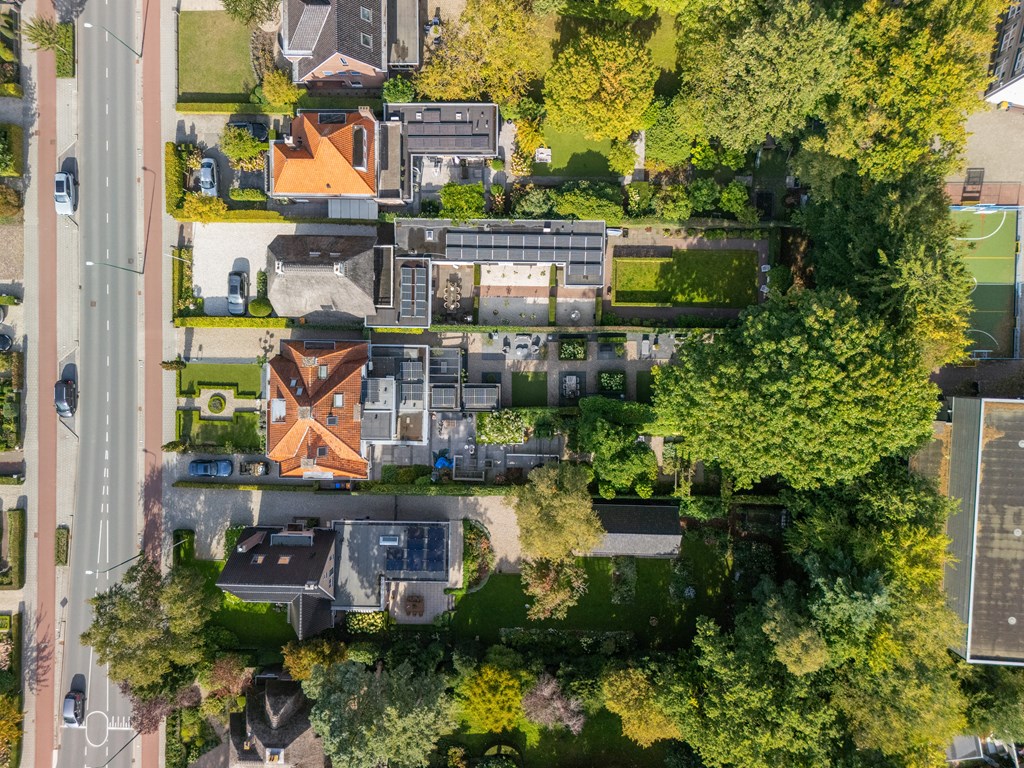 Снаружи сад, ориентированный на юго-восток, простирается почти на 45 метров в глубину, предлагая несколько террас, ухоженные зоны и веранду, оборудованную для жизни на свежем воздухе в любое время года. Оригинальные архитектурные детали, рельеф Ora et Labora, а также статус муниципального памятника с 2010 года подчеркивают уникальное положение дома. Локация обеспечивает быстрый доступ к культурной жизни Веенендала, а также к лесам и лугам Утрехтсе Хёйвелрюг.