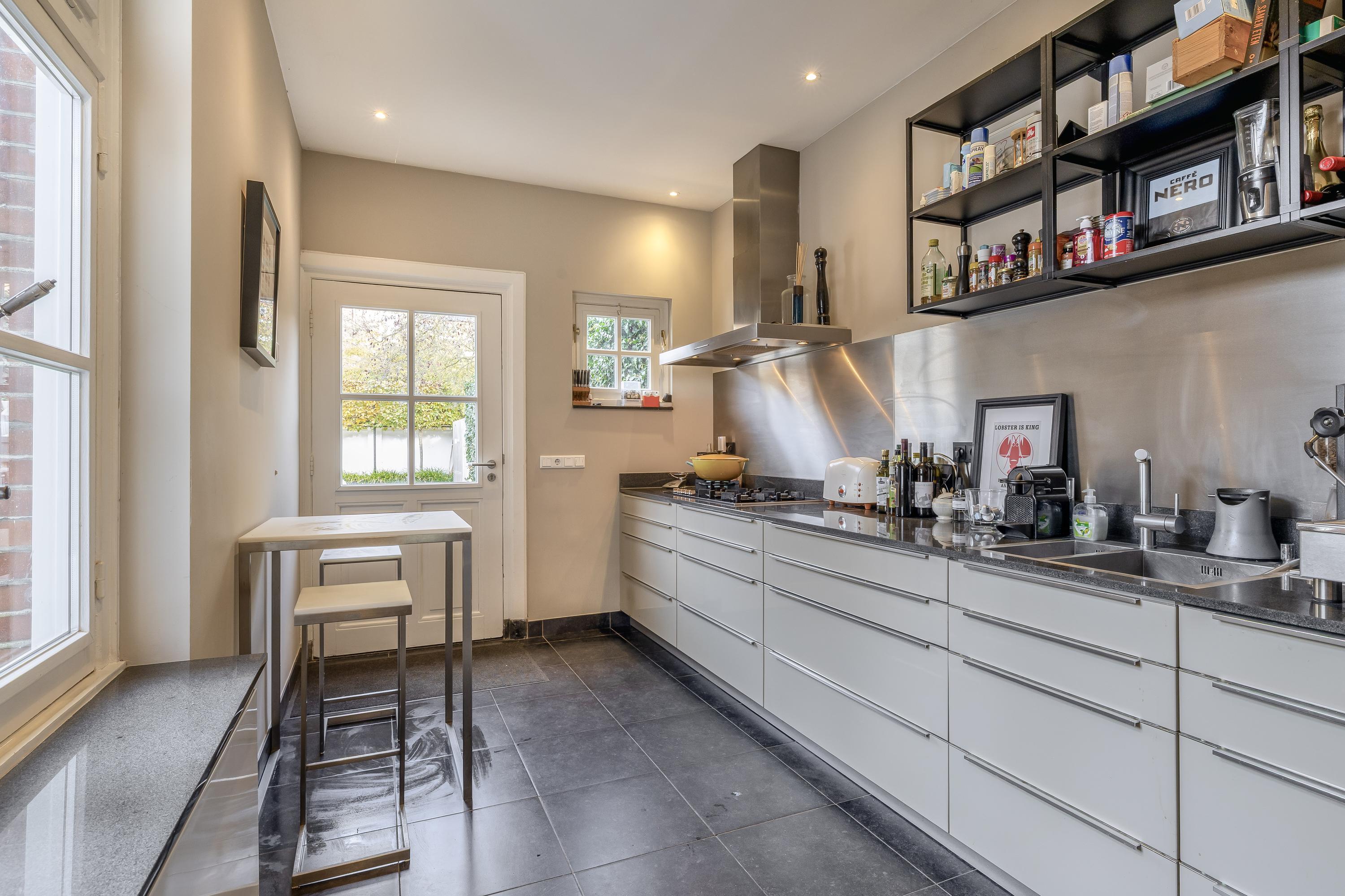 Главный жилой этаж отличается панорамными видами на Розариум, высокими потолками с оригинальной лепниной, камином на газу и современными технологиями, такими как кондиционирование и диммируемое освещение. Французские двери позади выходят в спроектированный архитектором сад: частное убежище с несколькими террасами, настилом из падука, мощёным патио и подогреваемым бассейном, полностью окружённое стенами для полной уединённости — всего в нескольких минутах от центра Венло.