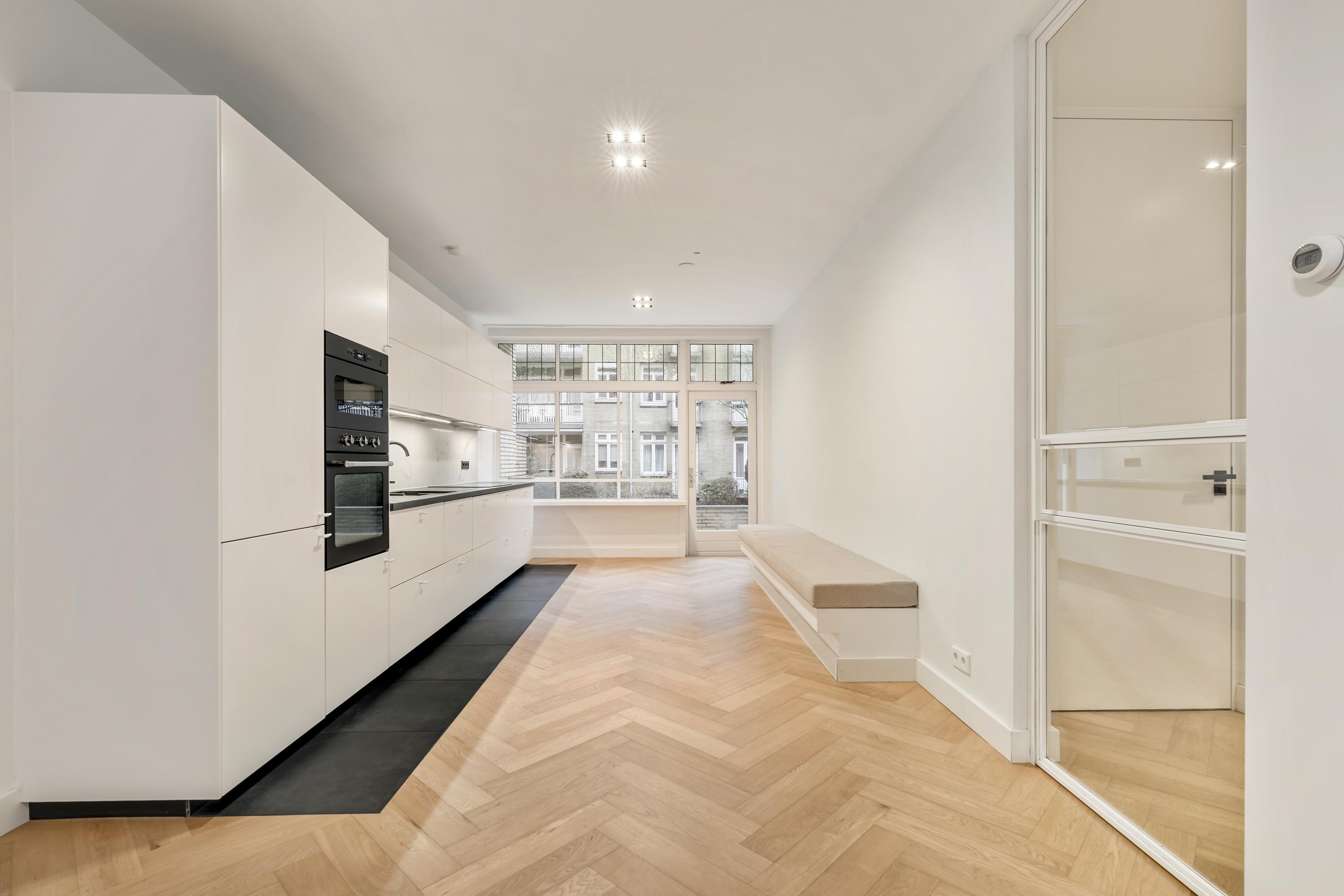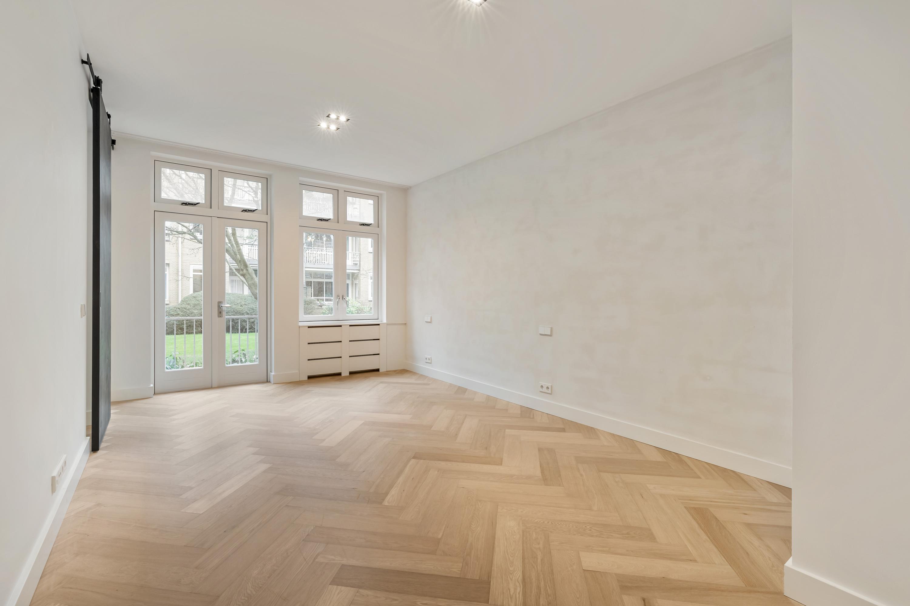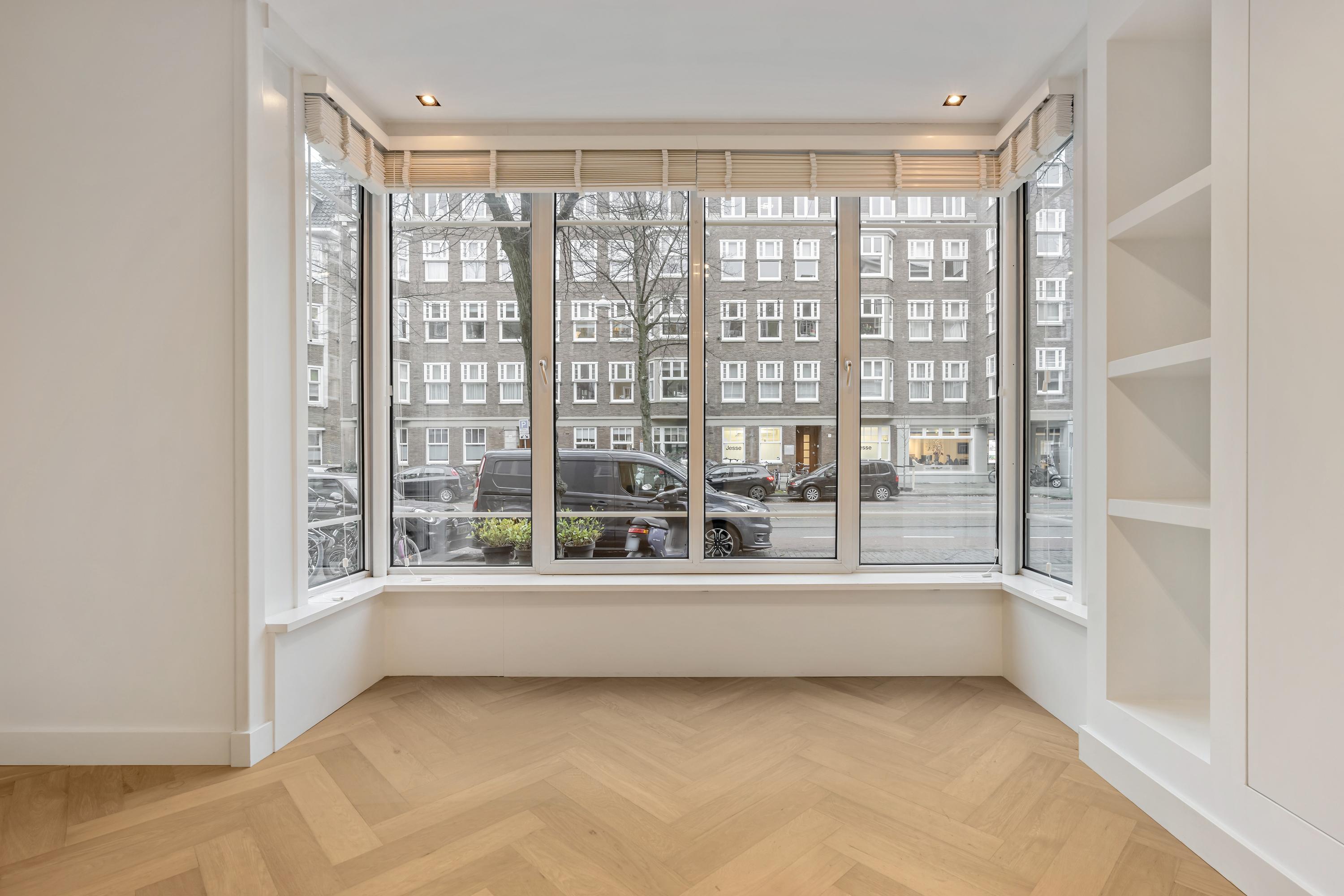 Lägenheten Amsterdam-Zuid ligger i ett mycket eftertraktat område i Amsterdam och erbjuder 113 m² stillsamt boende på markplan. Bostaden har ett rymligt vardagsrum, två väl tilltagna sovrum och ett ljust intryck tack vare stora fönsterpartier, däribland ett burspråk mot gatan. Det öppna köket är utrustat med moderna vitvaror och bjuder in till både umgänge och avkopplande måltider, med direkt tillgång till en privat terrass som vetter mot en omsorgsfullt skött gemensam trädgård.