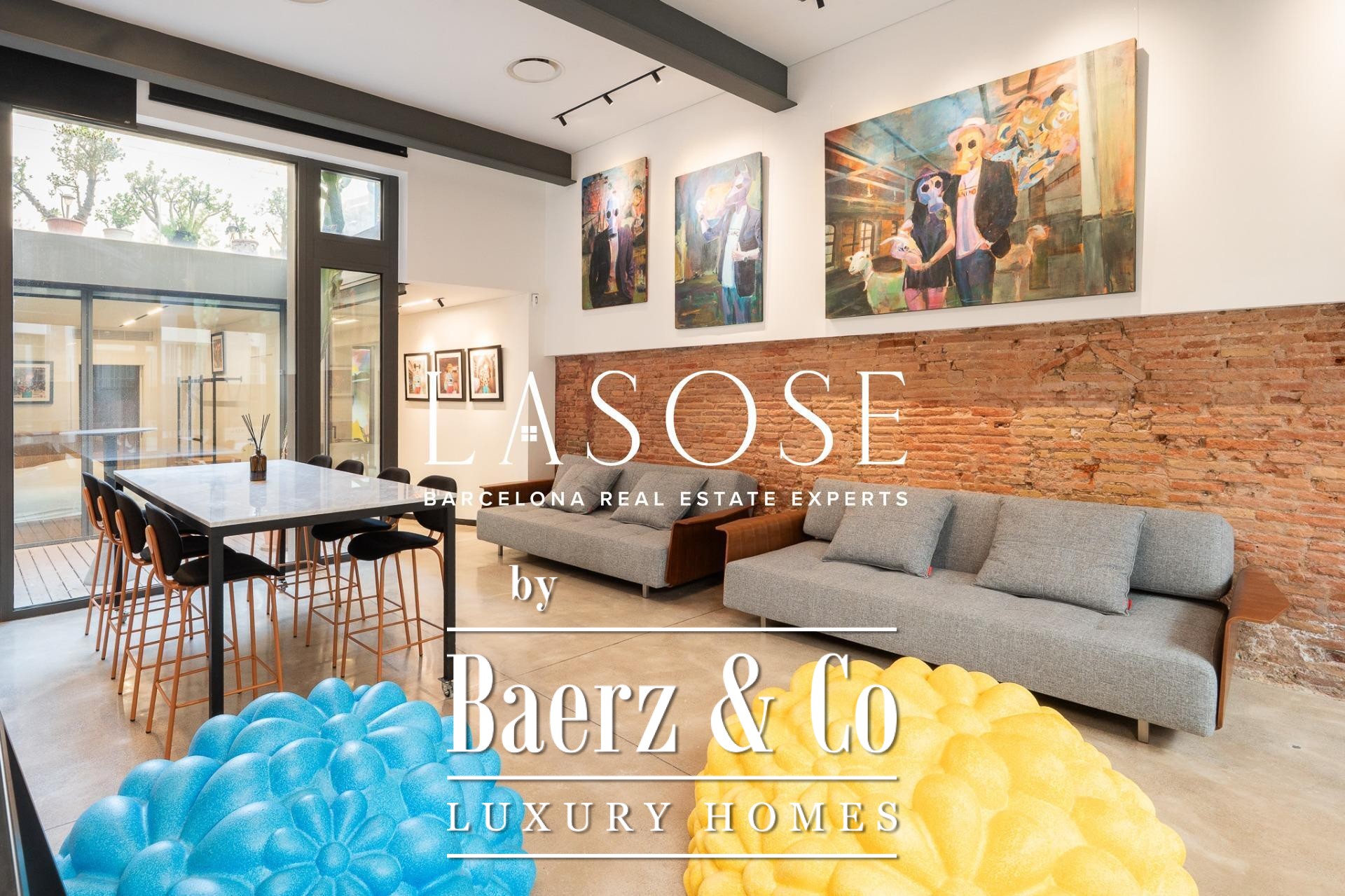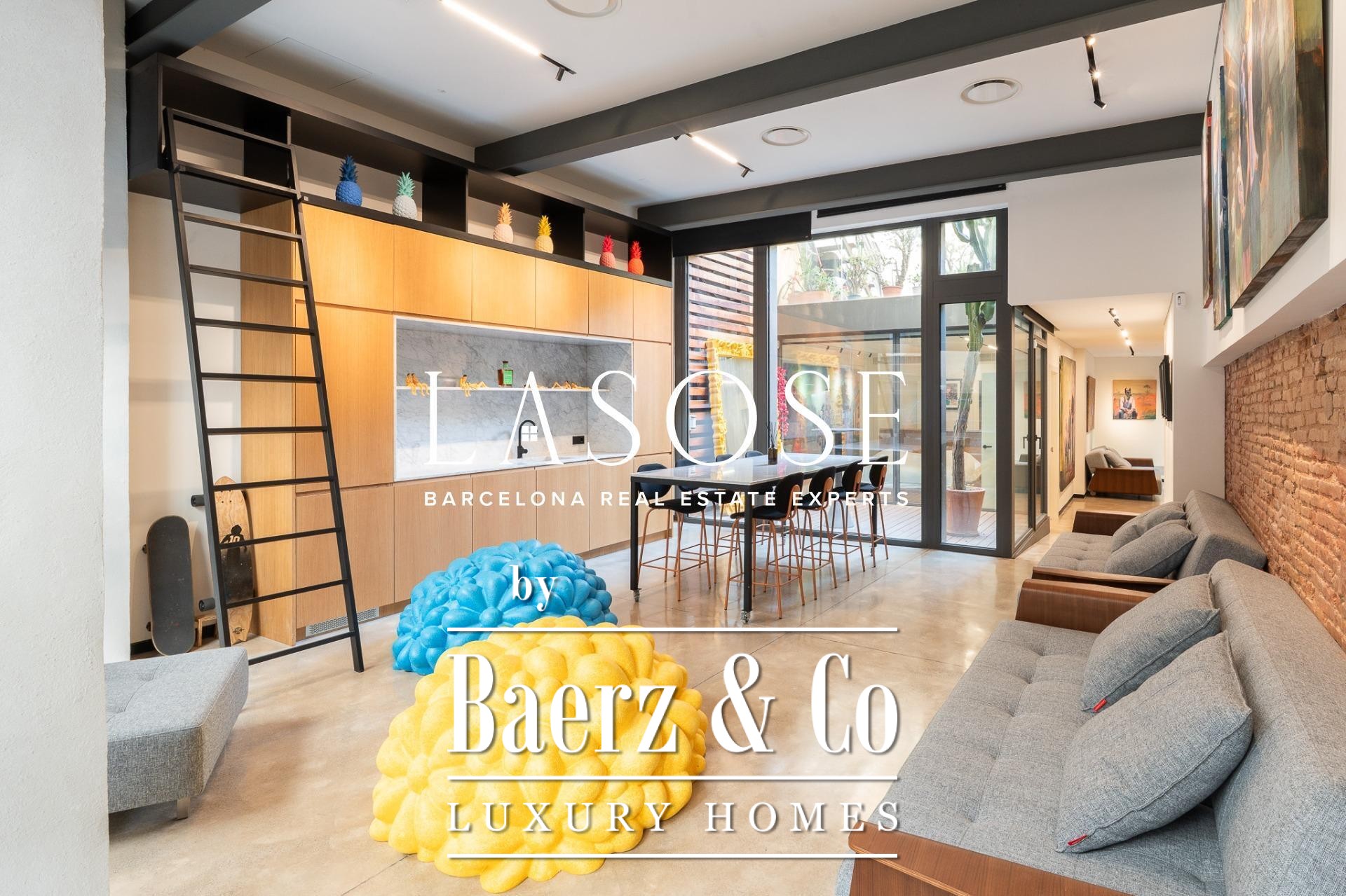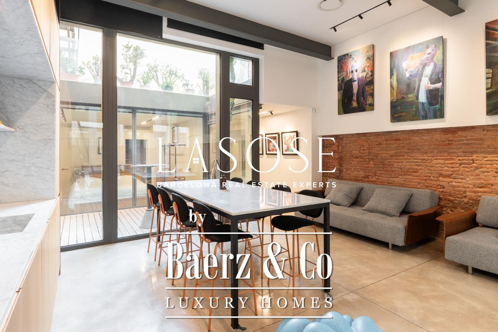 A space full of character, quiet and filled with natural light — ideal for those seeking to live in a creative and central environment that’s constantly evolving.. . From the very first step inside, you feel the spaciousness and calm this property offers. The interior patios, bathed in midday sun, bring an unexpected sense of openness and brightness for a property of this kind. The polished concrete flooring and anti-intrusion glazing create a refined yet secure atmosphere. The property is equipped with air conditioning, heating, and comes fully furnished with carefully selected design pieces and included appliances.. . This home was born from the thoughtful transformation of four independent units into one singular, contemporary space. The artistic vision behind the renovation has given life to a versatile home, where every corner breathes creativity and comfort. Legally registered as a commercial space, it does not currently have a certificate of occupancy, making it a rare opportunity for flexible and unconventional uses.. . Living in this neighborhood means embracing the true heartbeat of Barcelona.. The neighborhood is vibrant, diverse, and full of life — where tradition meets modernity. The streets are lined with creative restaurants, charming cafés, emerging galleries, and cultural projects. The area has undergone a significant transformation: the city council ensures daily street cleaning, safety has improved notably, and more and more residents are investing in this up-and-coming district. Here, you’re not just buying a property — you’re joining a neighborhood full of authenticity and future potential.